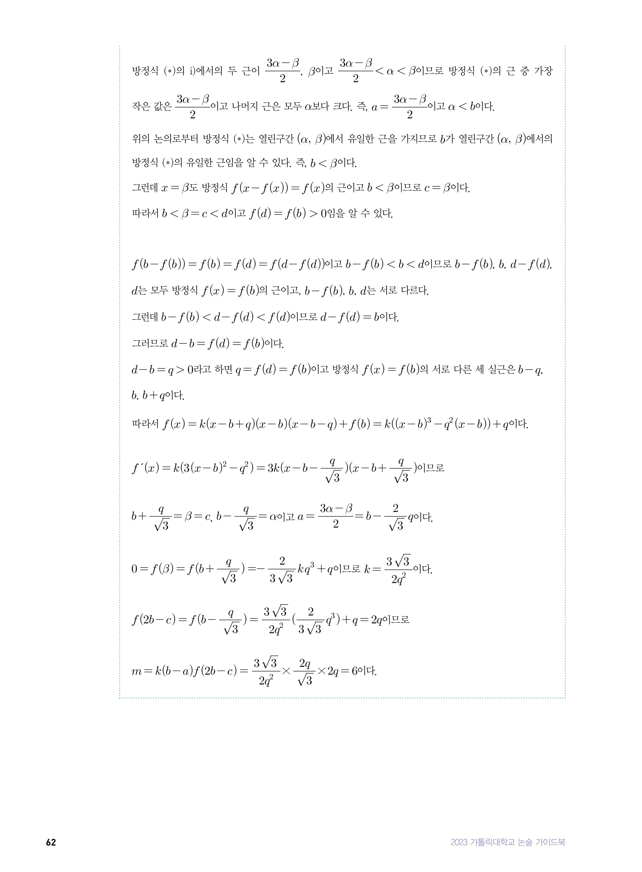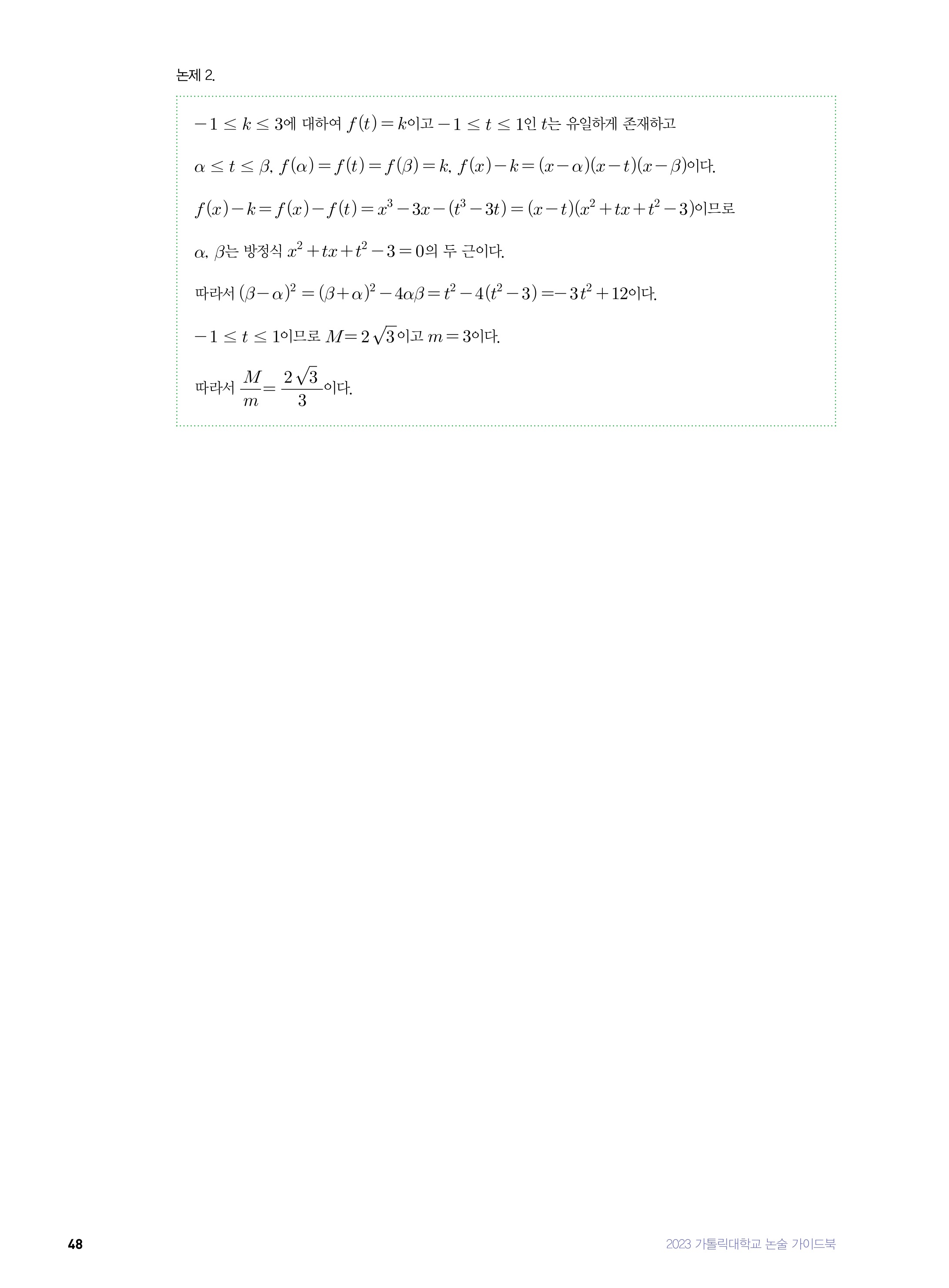 2022학년도 가톨릭대학교 의예과 논술전형 문제1 해설 2022학년도 가톨릭대학교 의예과 논술전형 문제3
