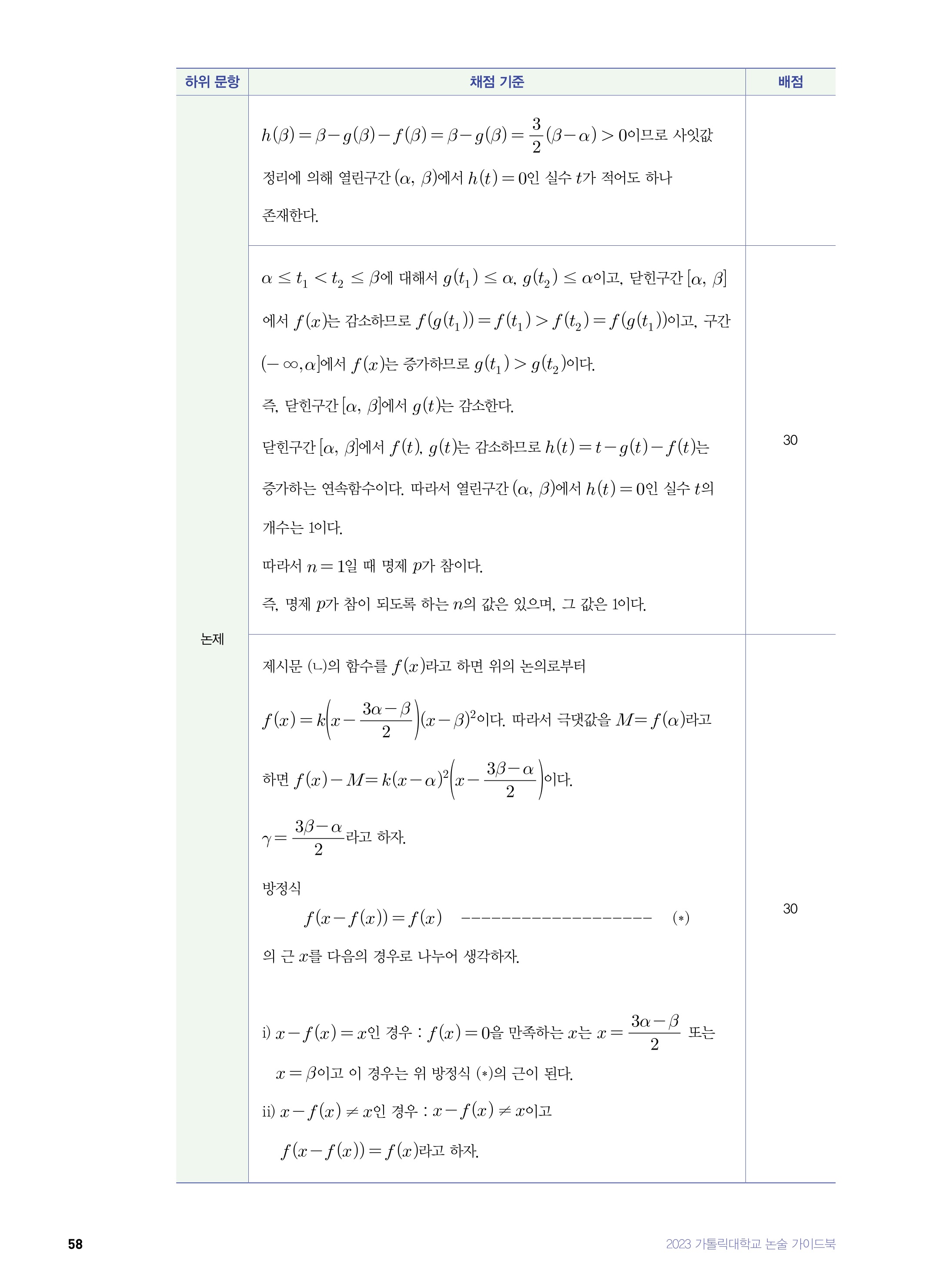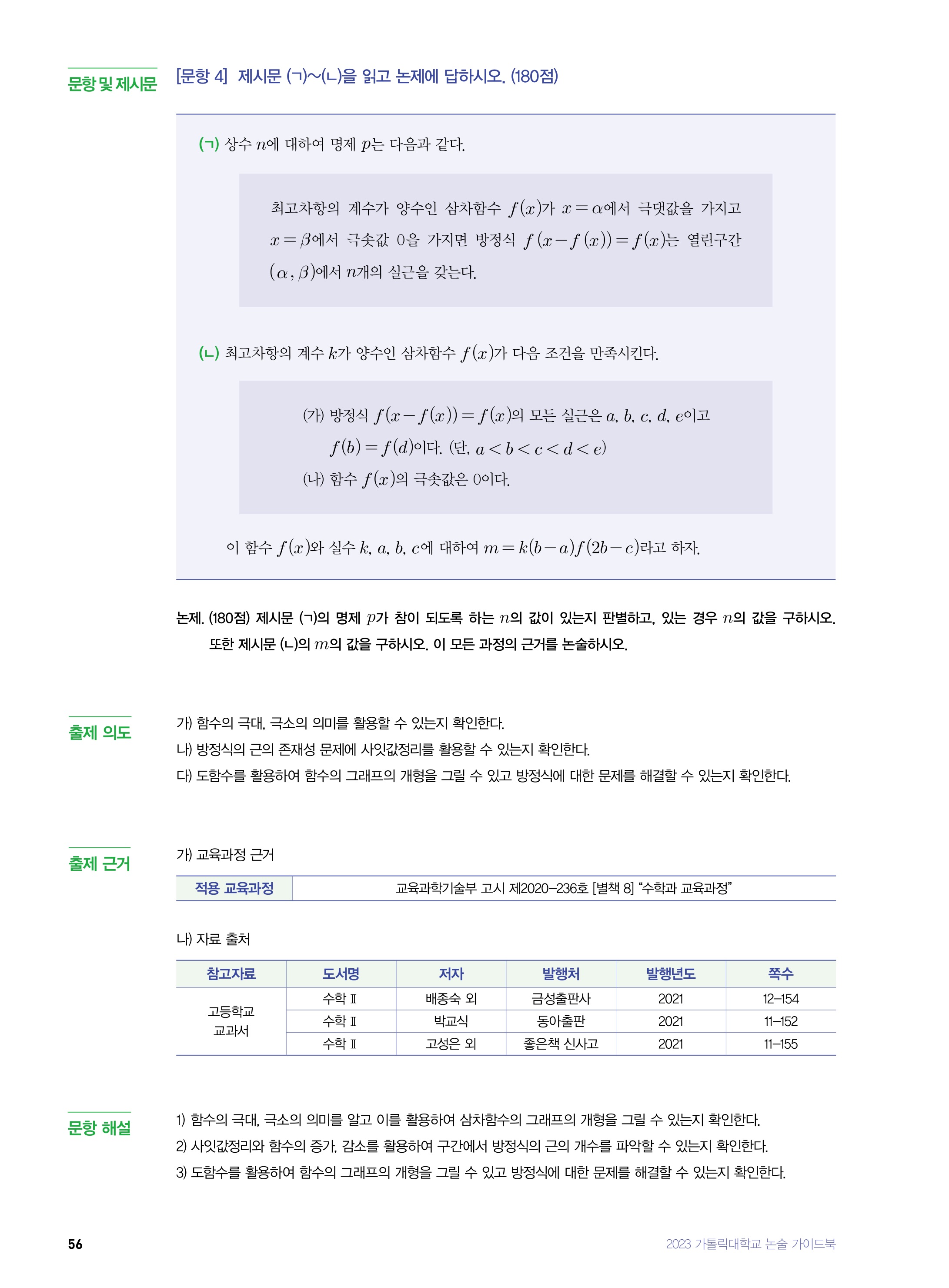 2022학년도 가톨릭대학교 의예과 논술전형 문제4 2022학년도 가톨릭대학교 의예과 논술전형 문제4 해설