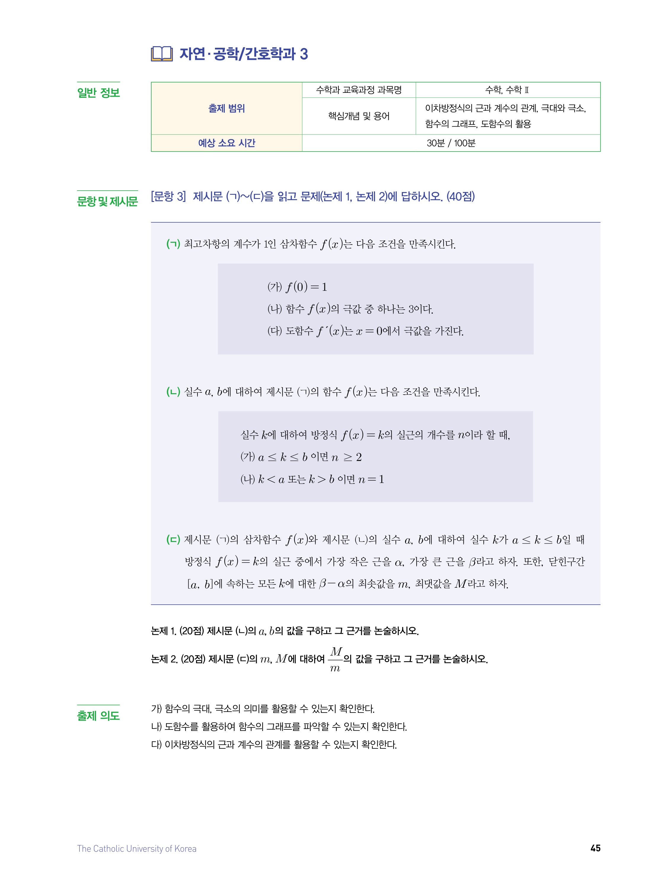 2022학년도 가톨릭대학교 자연·공학계열/간호학과 논술전형 문제3 2022학년도 가톨릭대학교 자연·공학계열/간호학과 논술전형 문제3 해설