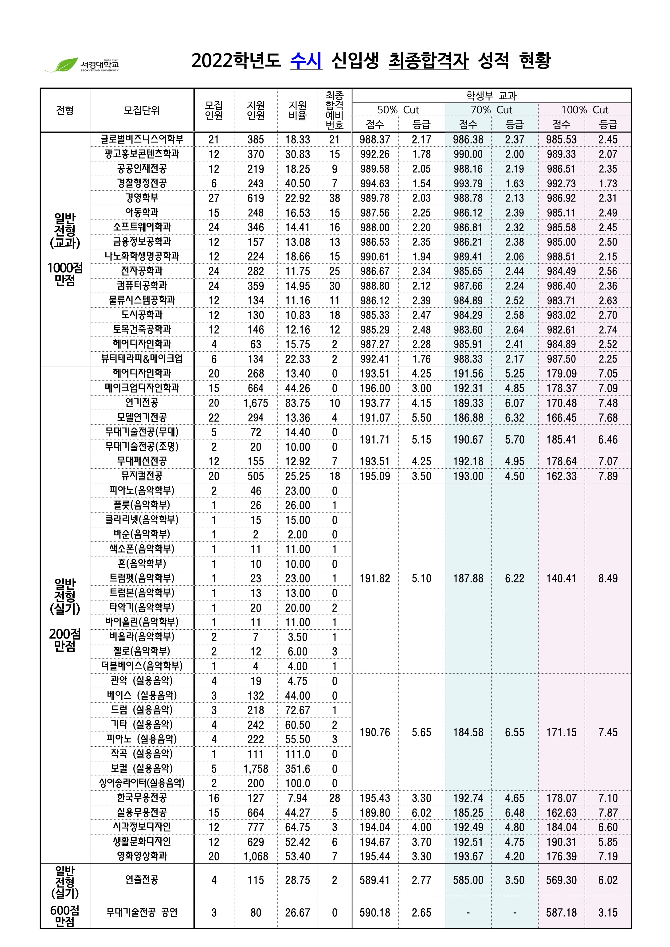 2022학년도 서경대학교 수시등급입시 정보/수시등급 입시 결과 2022. 6. 25. 13:51