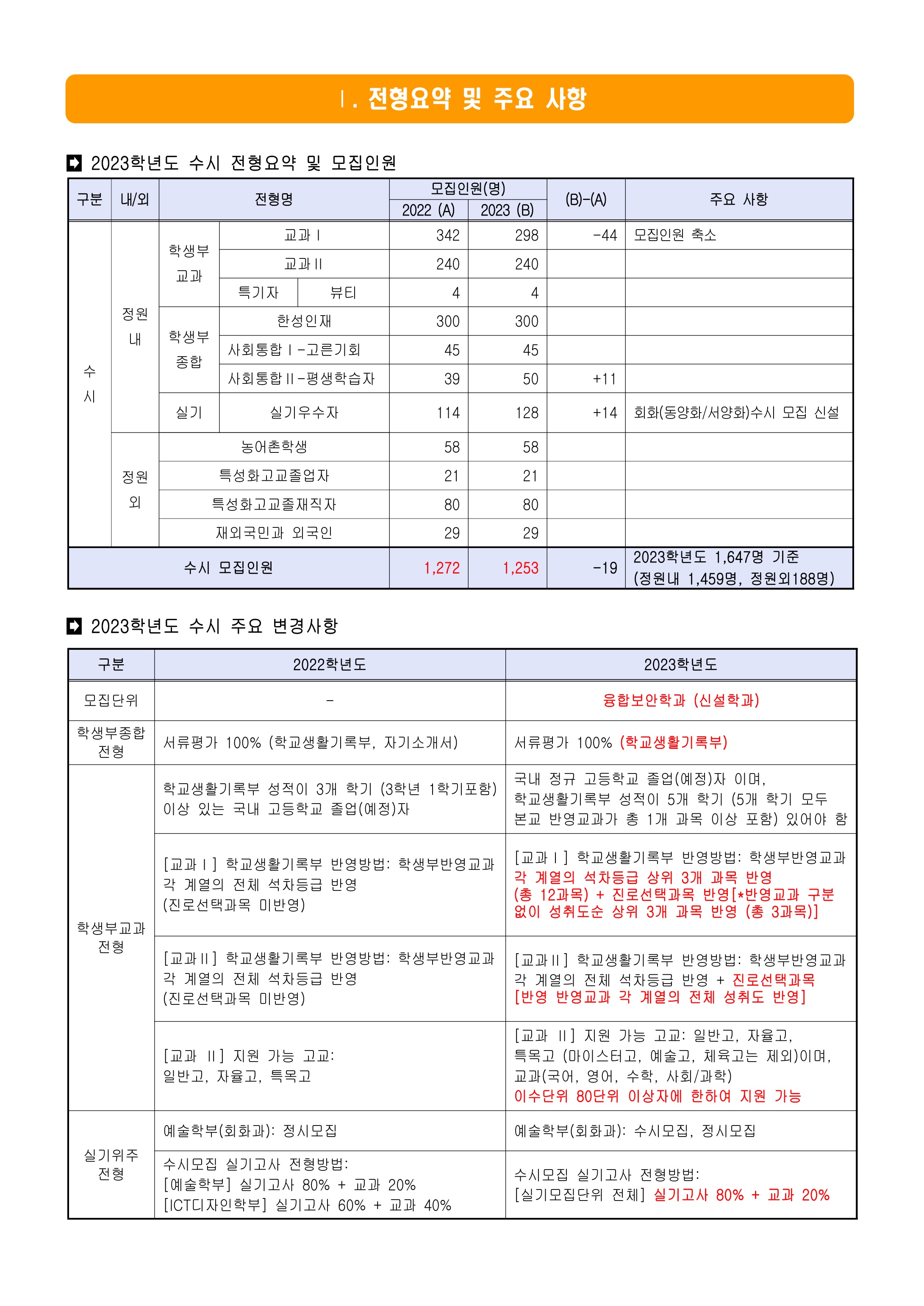 2023학년도 한성대학교 수시모집 전형요약 2023학년도 한성대학교 수시모집 전년 대비 변경사항