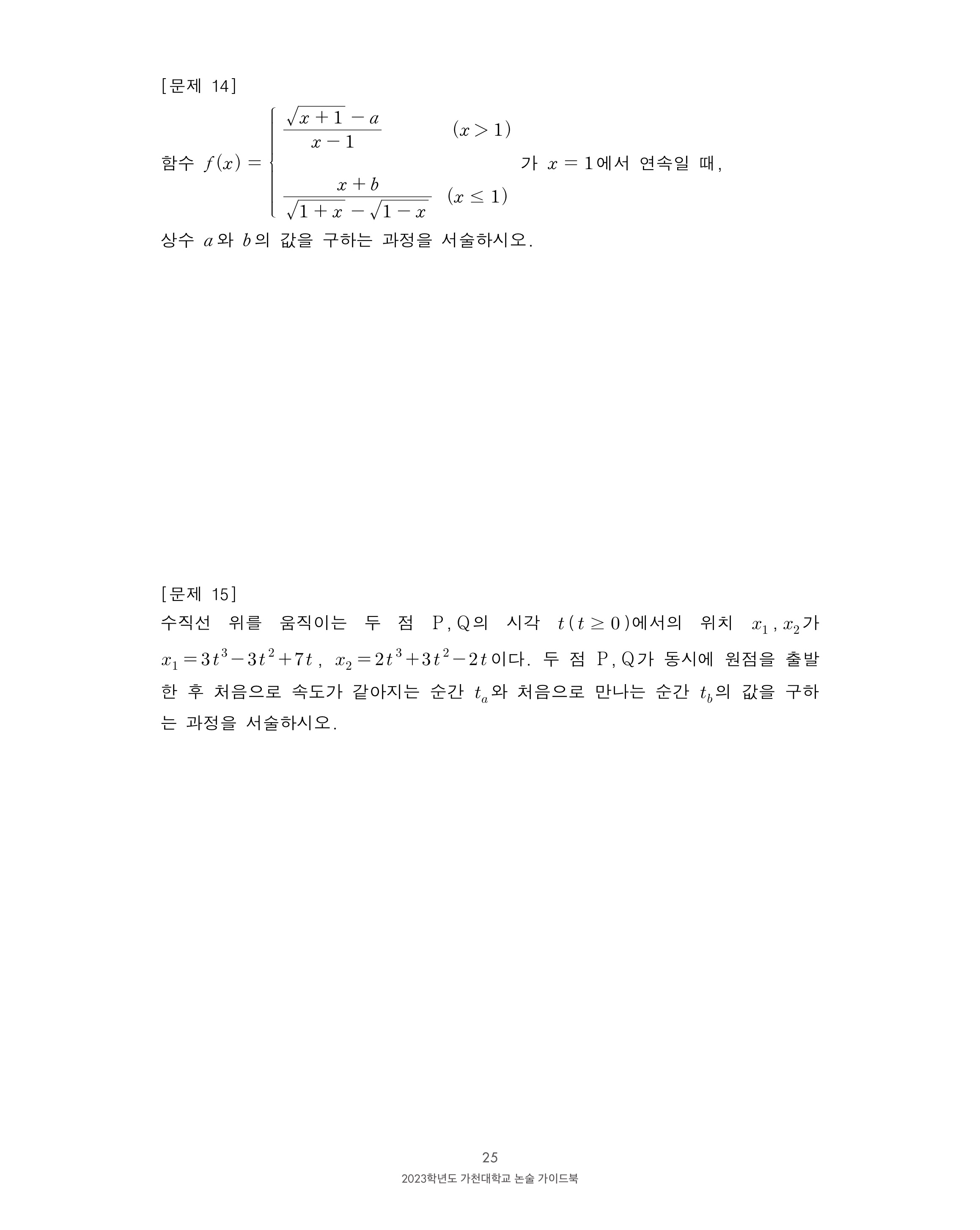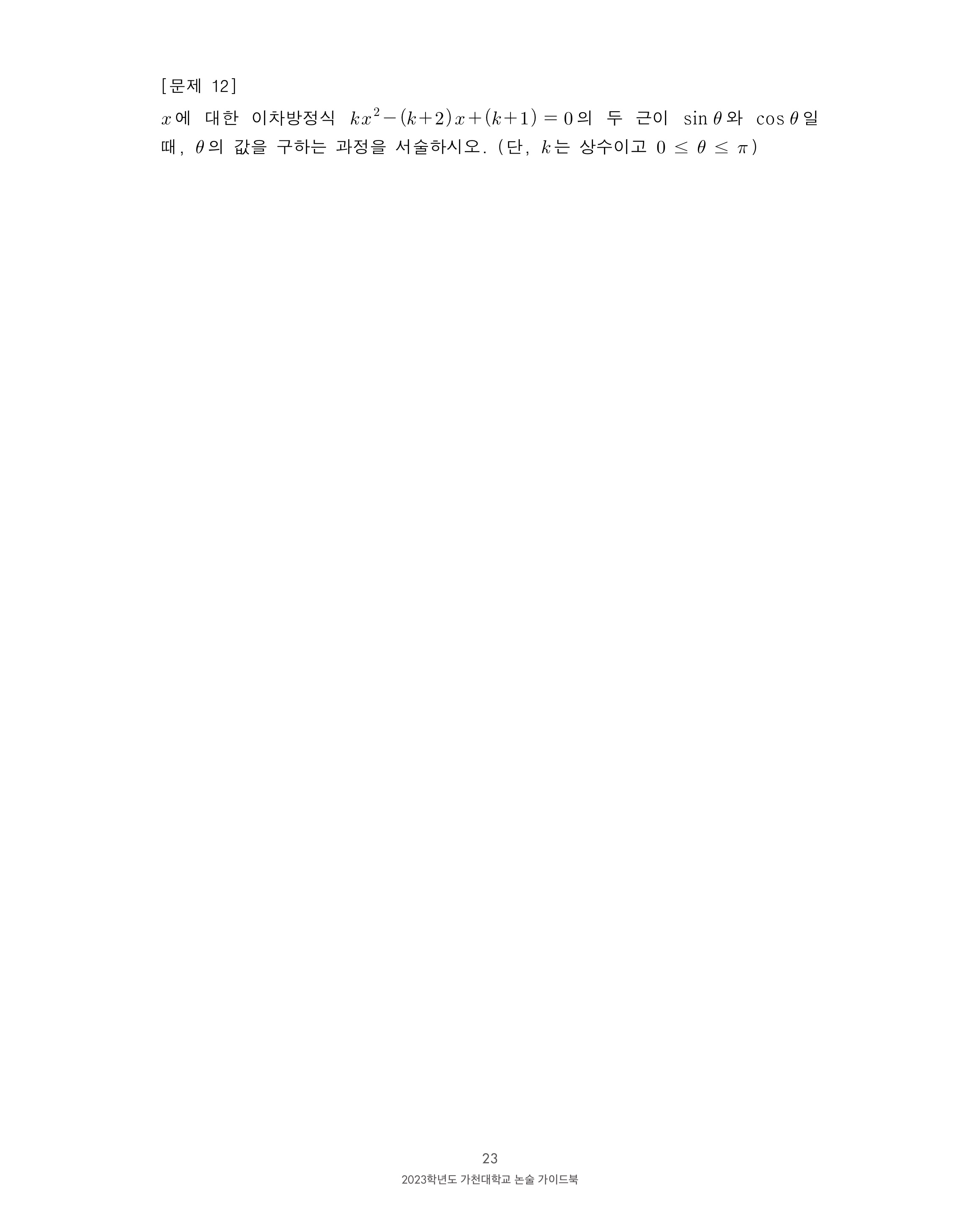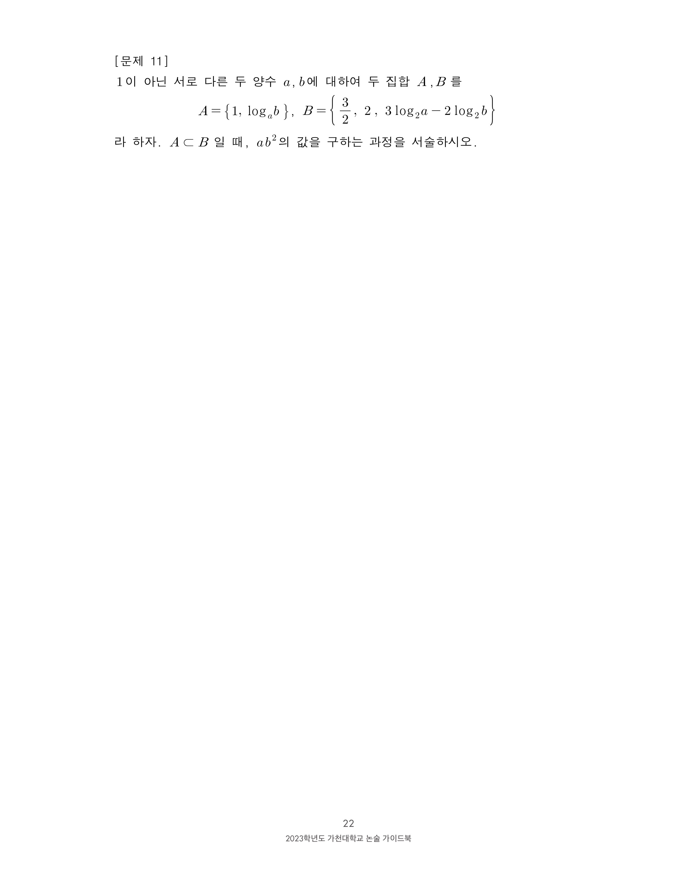 2023학년도 가천대학교 모의논술 문제 및 해설