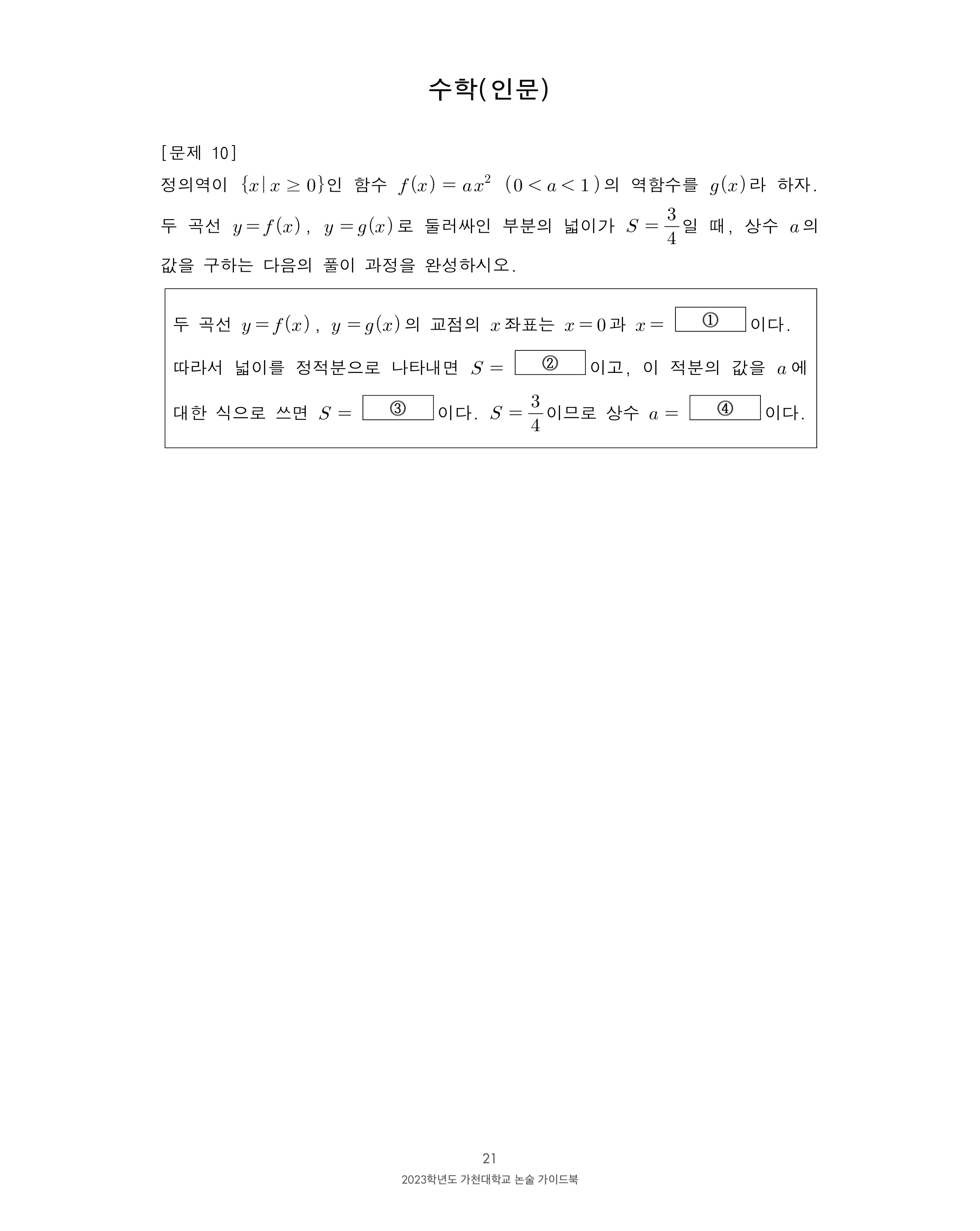 2022학년도 가천대학교 논술 수학(인문) 문제 10