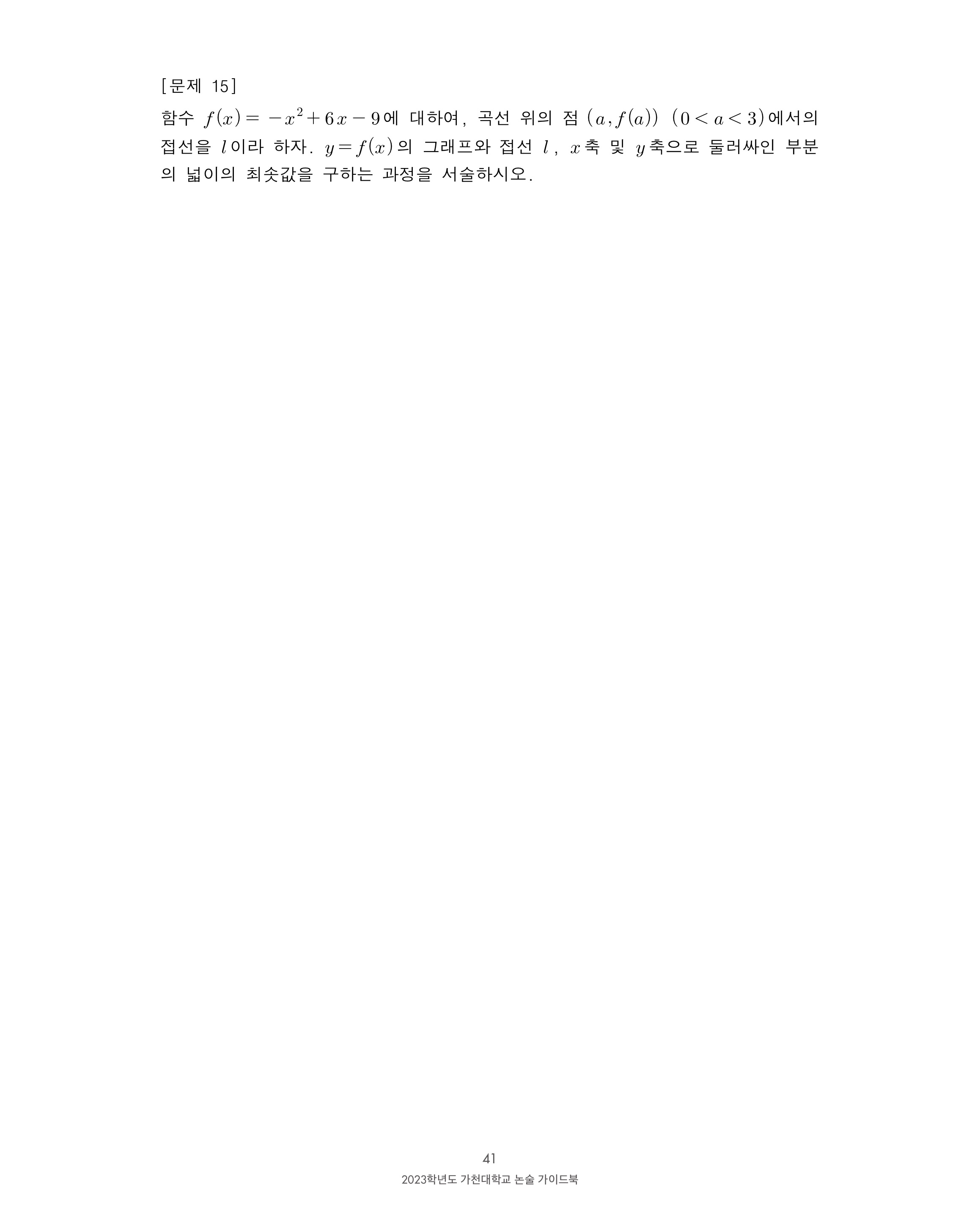 2022학년도 가천대학교 논술 수학(자연) 문제 15 2023학년도와 2022학년도 가천대학교 모의논술 문제와 해설은 아래 글에 있어영!😉