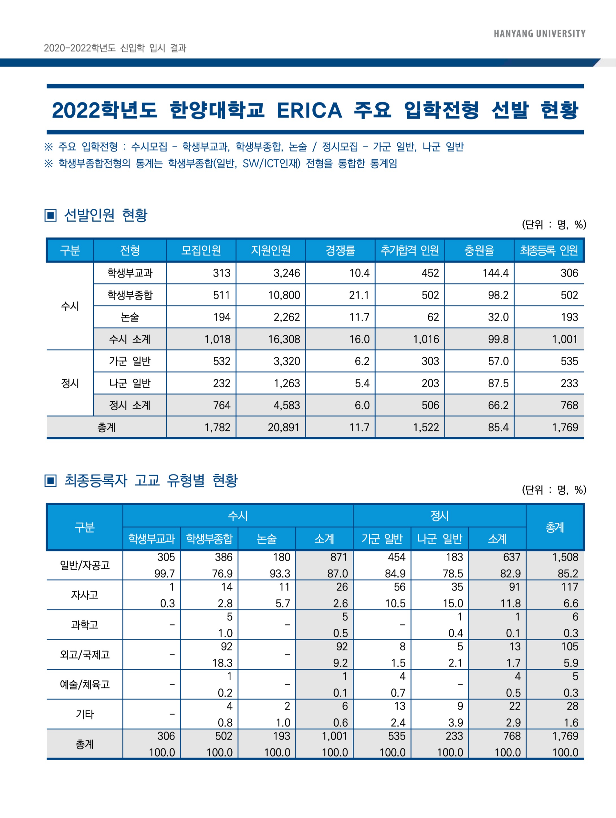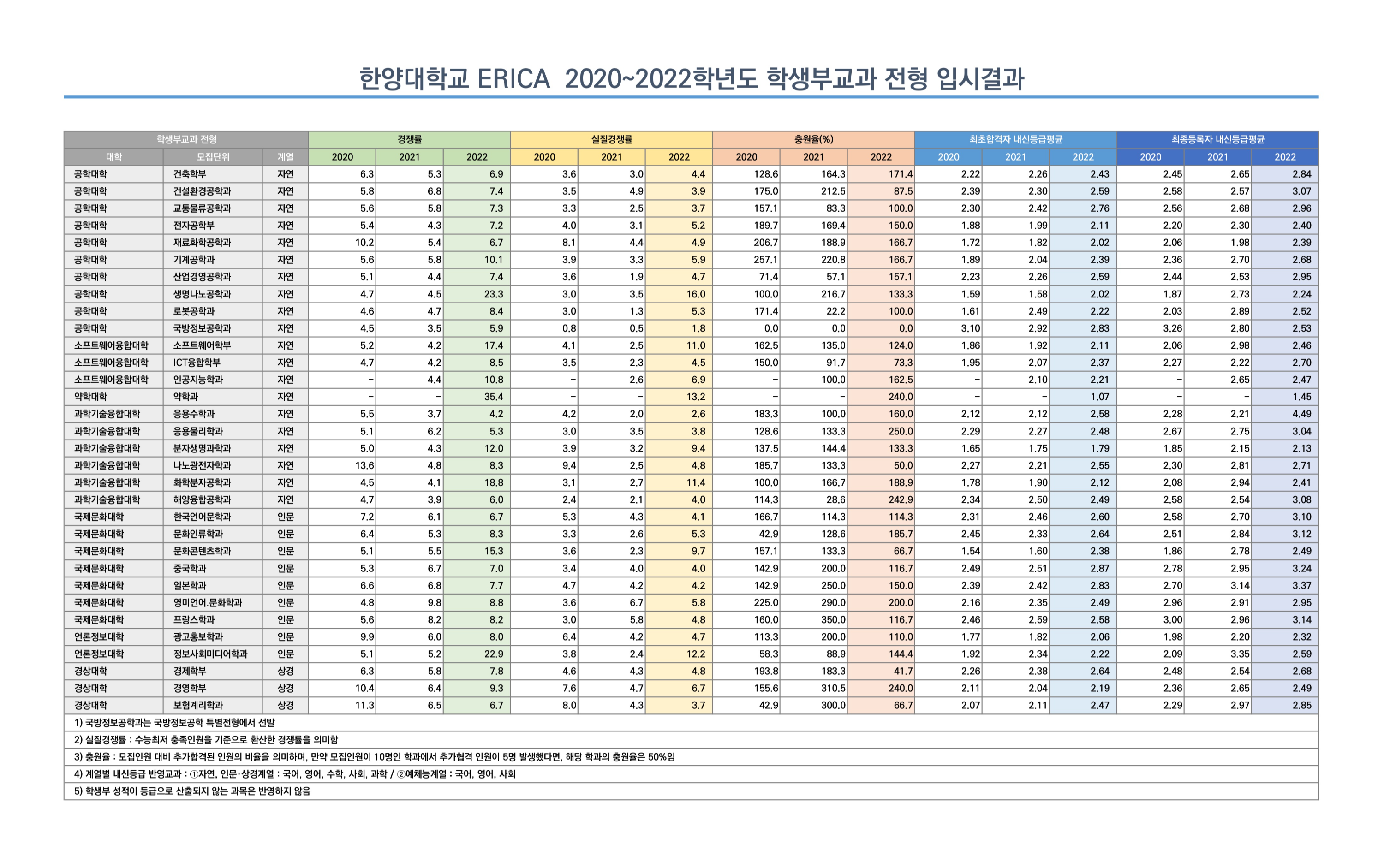 2022학년도 한양대학교 에리카 수시등급입시 정보/수시등급 입시 결과 2022. 6. 28. 19:25
