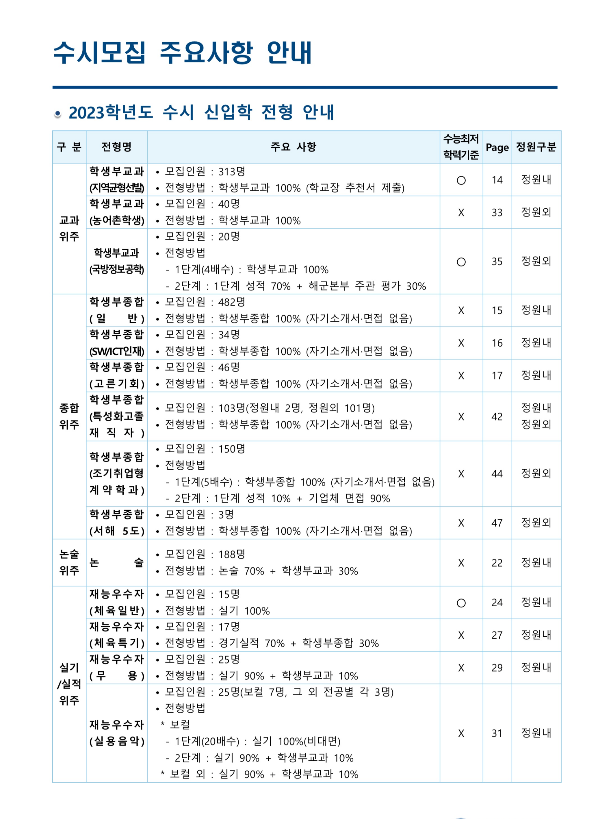 2023학년도 한양대학교 에리카 수시모집 전형 요약