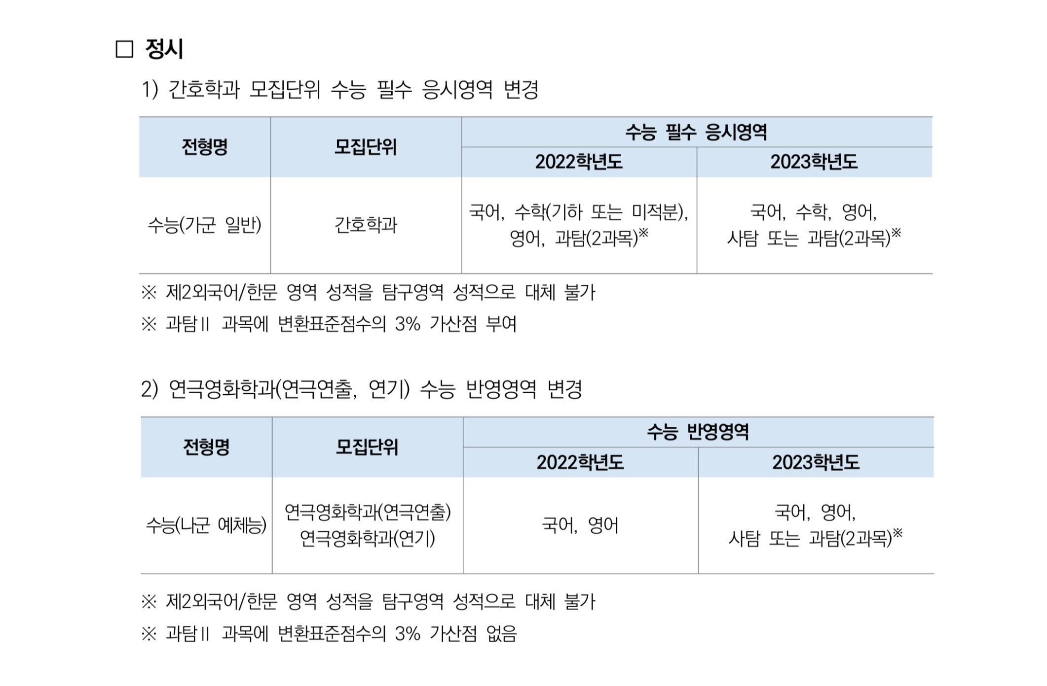 2023학년도 한양대학교 정시모집 전년 대비 변경사항 2022학년도 한양대학교 대학수학능력시험 반영점수 산출방법