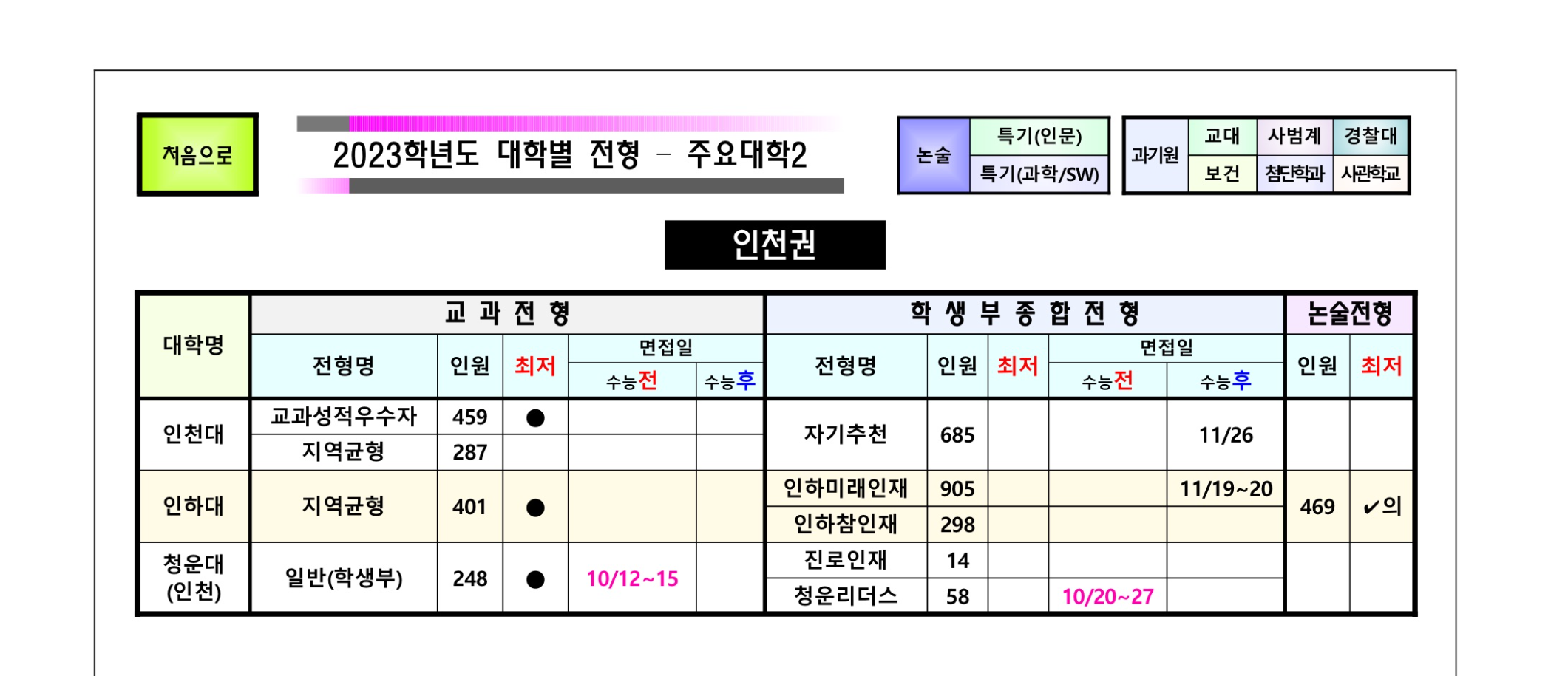 · 학생부종합 전형: 인천대, 인하대, 청운대