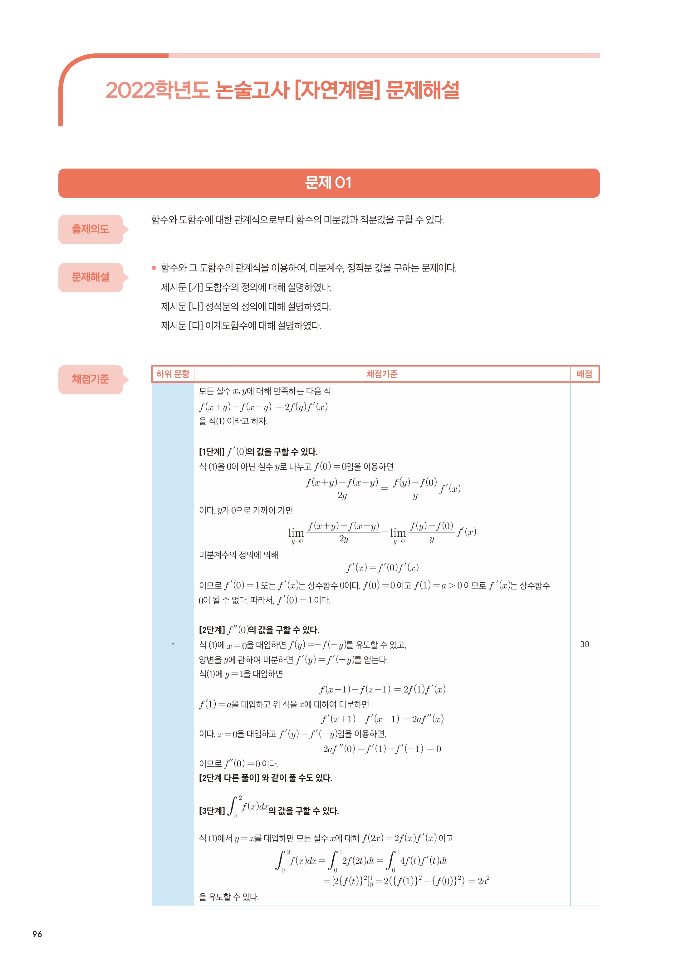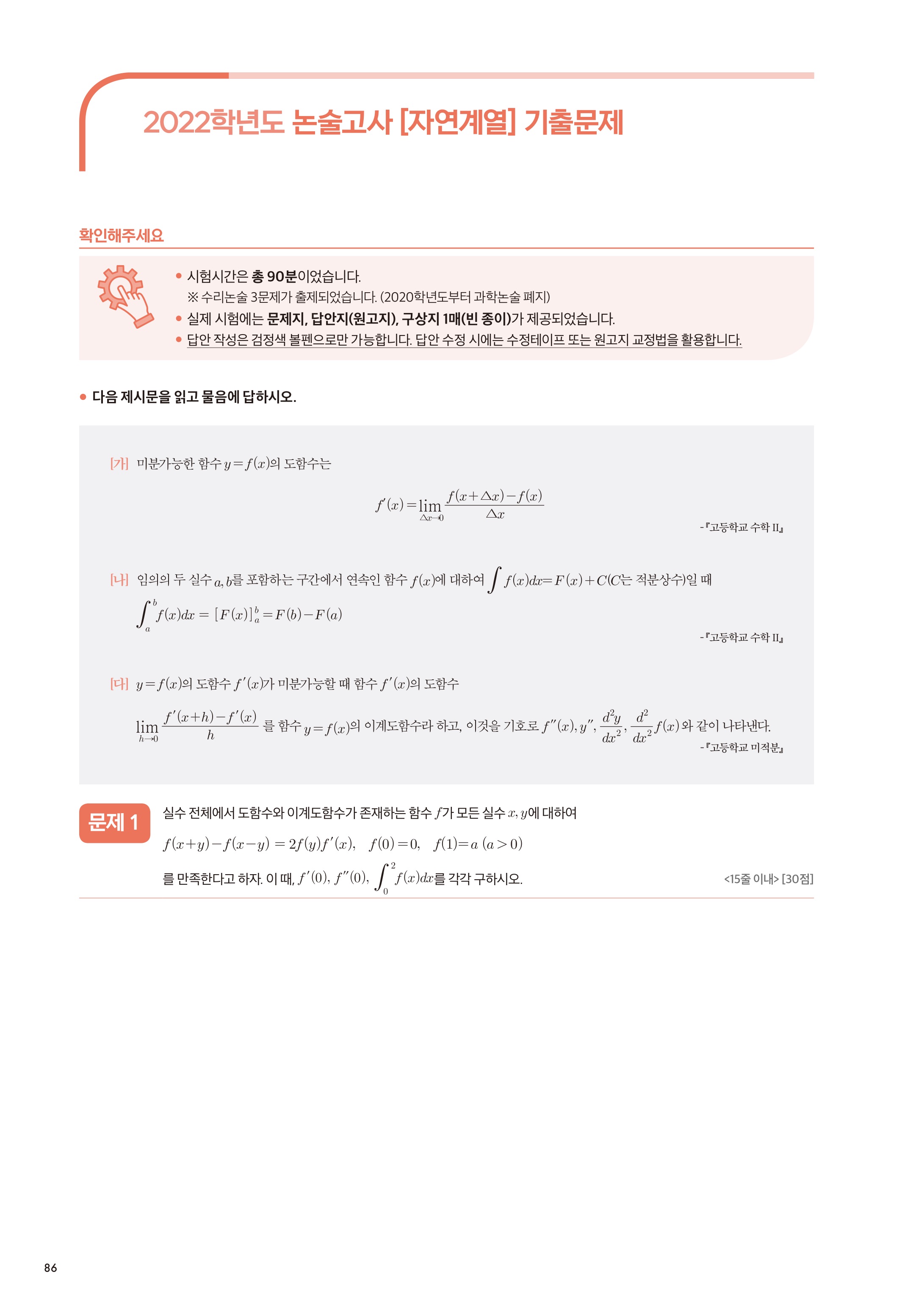 2022학년도 논술 기출문제 및 예시답안 수리논술나침반14