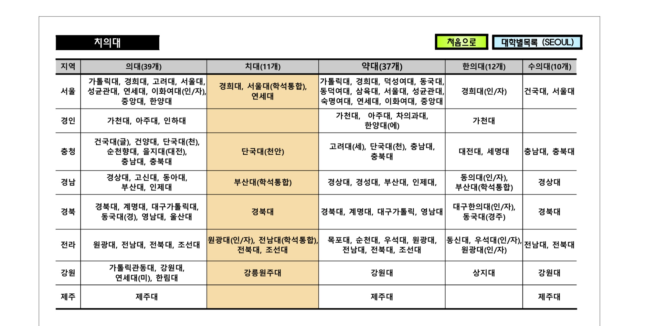 2023학년도 치대 수시 총정리입시 정보/입시관련 뉴스 2022. 7. 8. 13:37