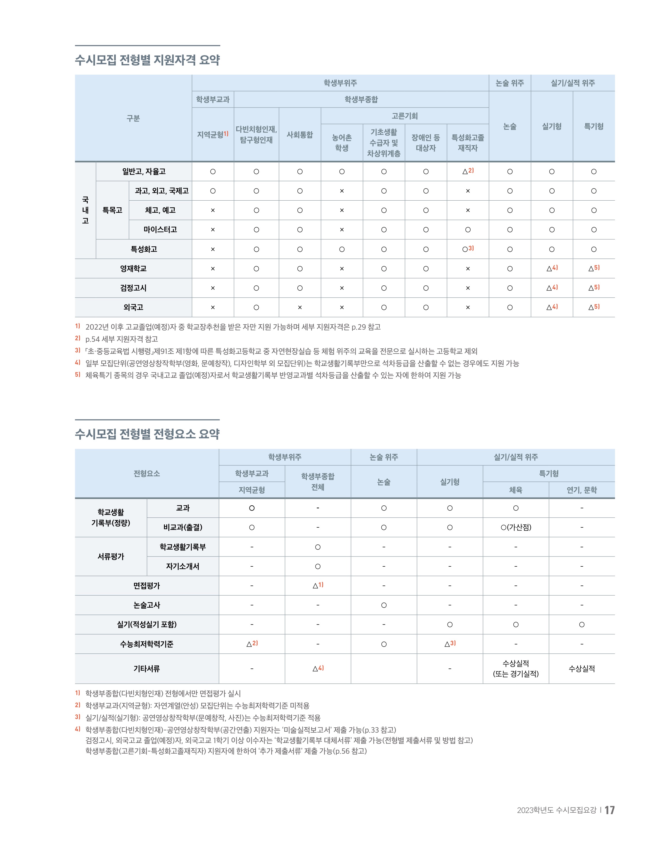 구분 2022학년도 2023학년도 비고 학생부종합 ∙ 학생부종합(다빈치형인재, 탐구형인재, SW인재, 사회통합, 고른기회) 운영 ∙ 학생부종합(다빈치형인재, 탐구형인재, 사회통합, 고른기회) 운영 학생부종합 (SW인재) 폐지 학생부교과