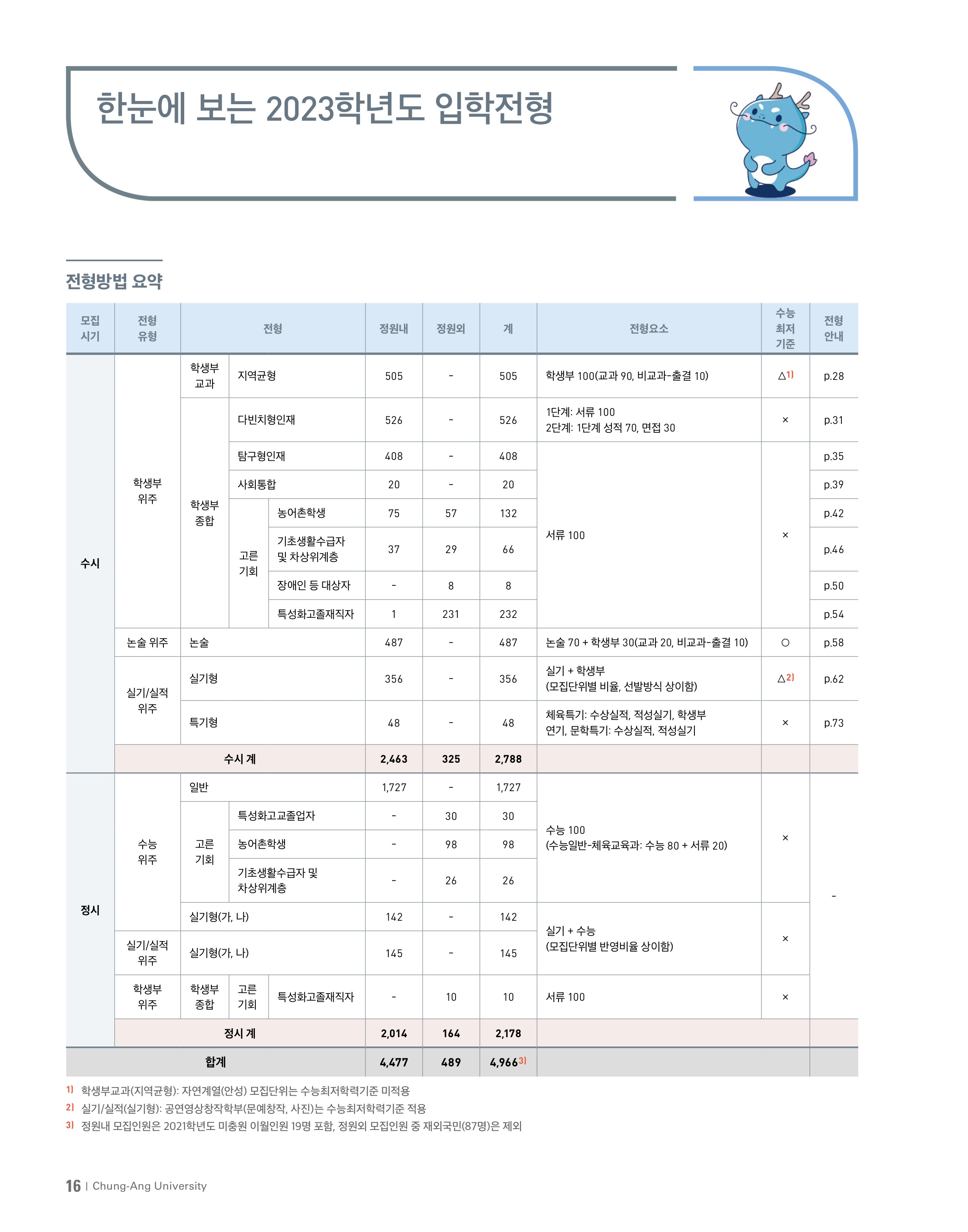 2023학년도 중앙대학교 수시 모집요강.pdf7.60MB2023학년도 중앙대학교 수시모집 전형 요약
