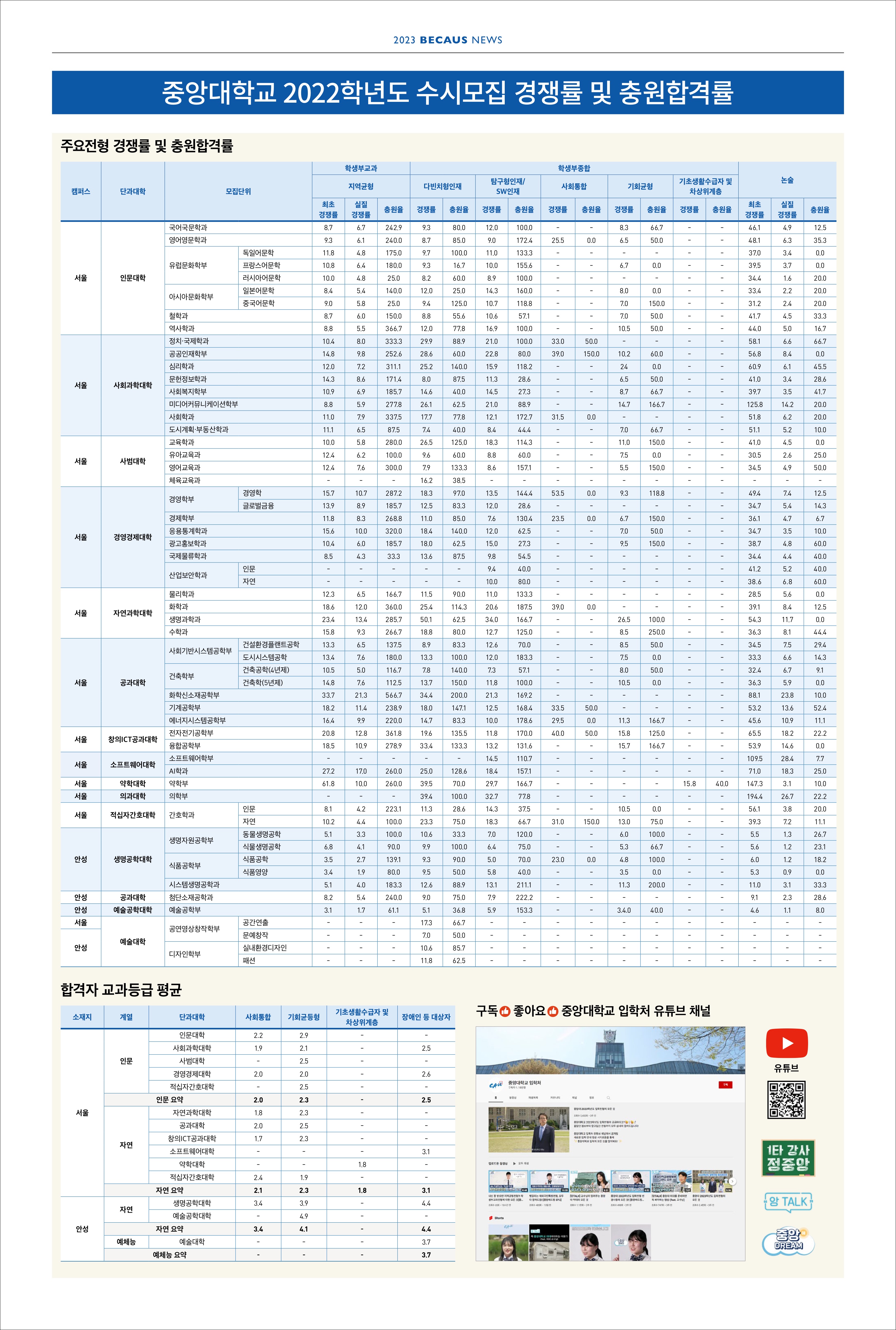 2022학년도 중앙대학교 수시등급입시 정보/수시등급 입시 결과 2022. 7. 8. 15:16