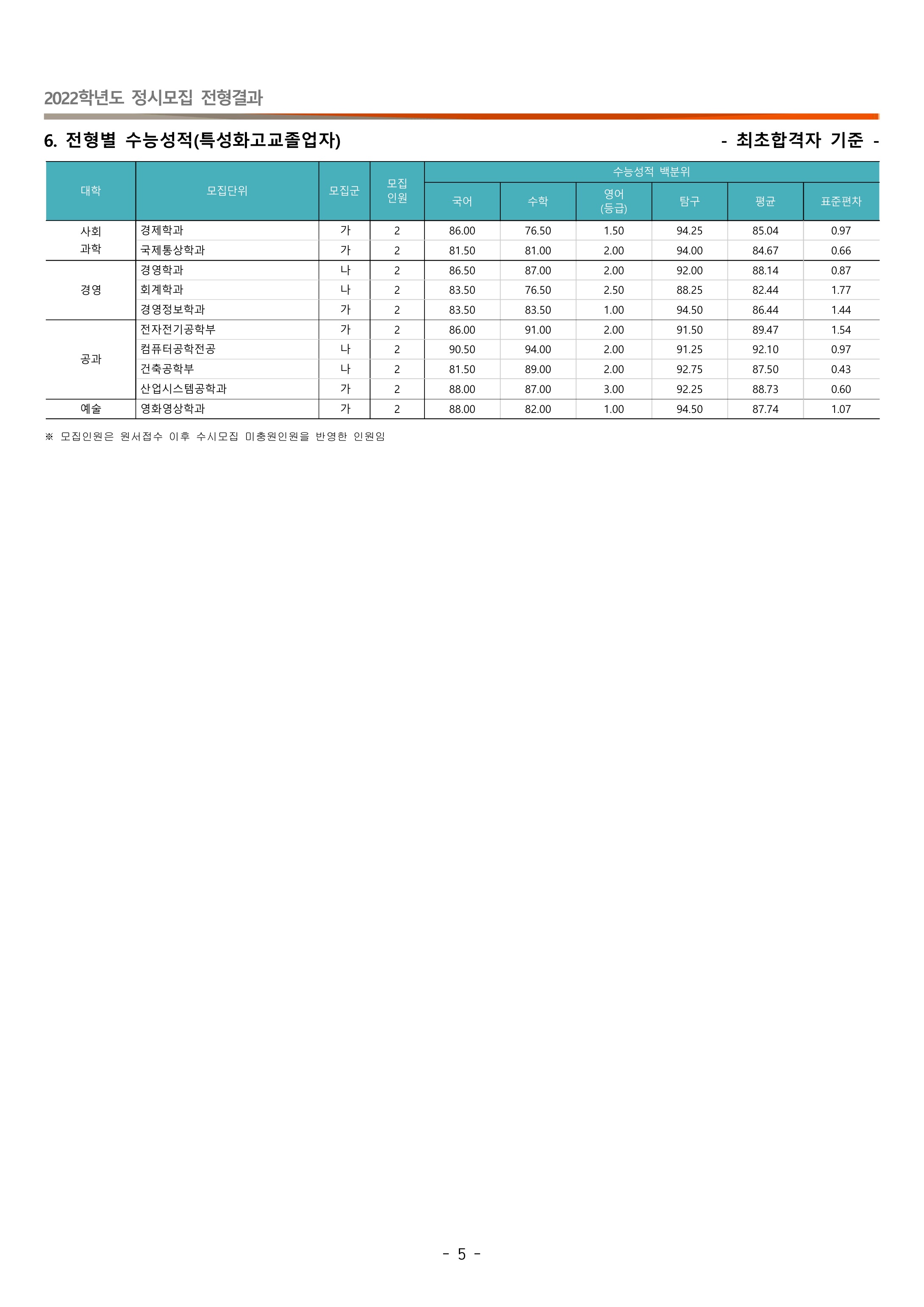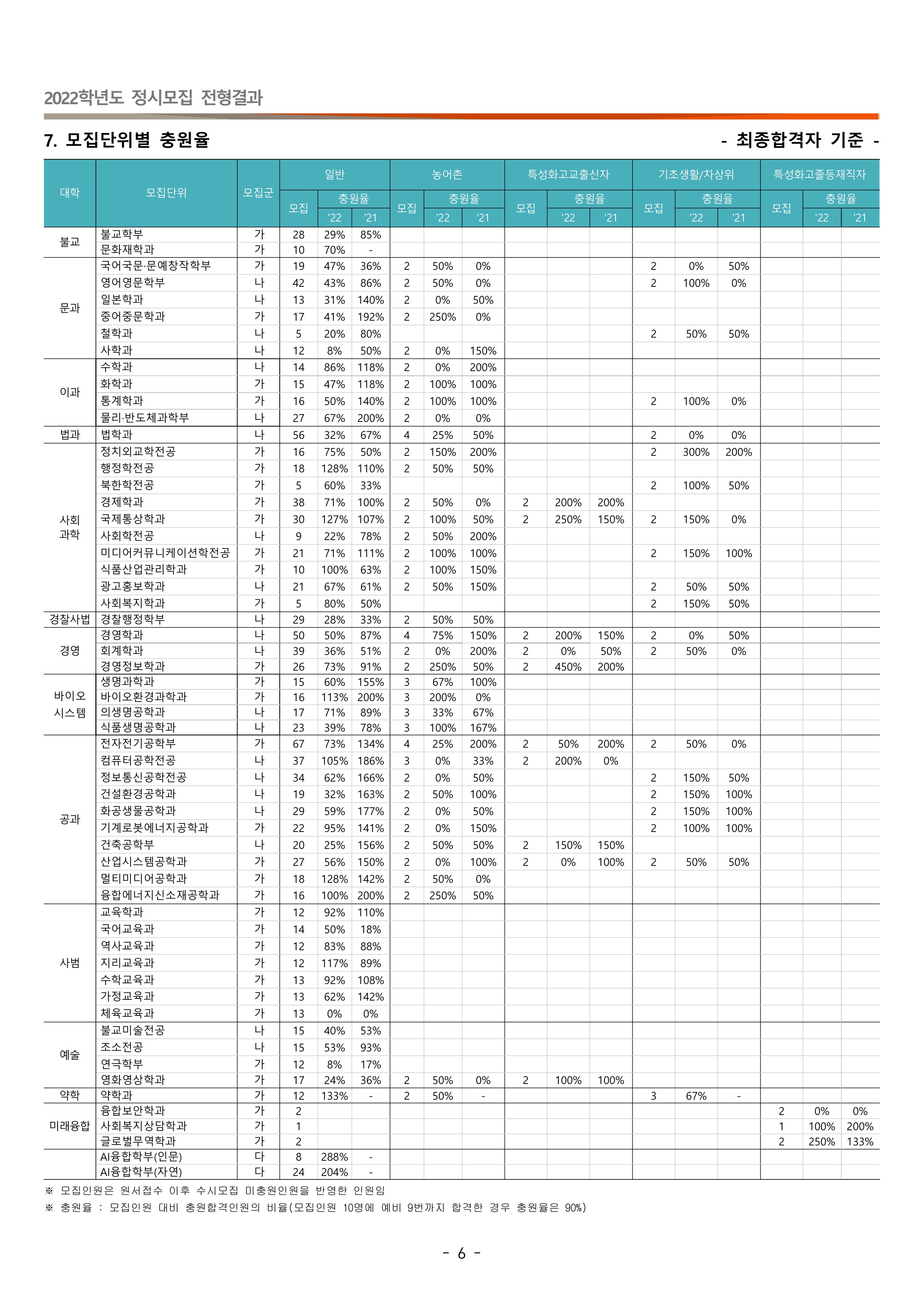 2022학년도 동국대학교 특성화고교졸업자 정시등급 2022학년도 동국대학교 정시전형 충원율