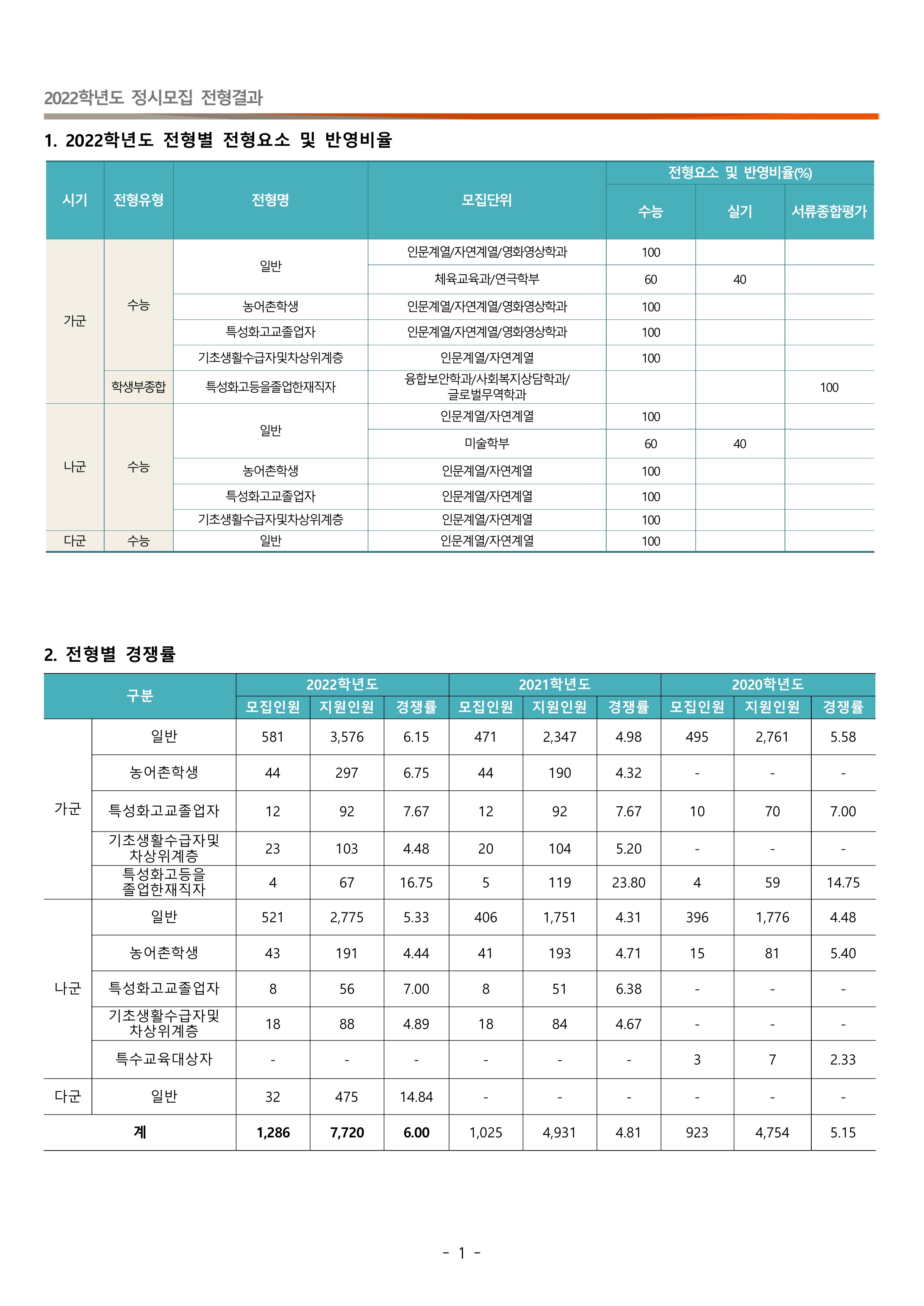 2022학년도 동국대학교 대학수학능력시험 성적 반영 및 산출방법 2022학년도 동국대학교 정시전형 경쟁률