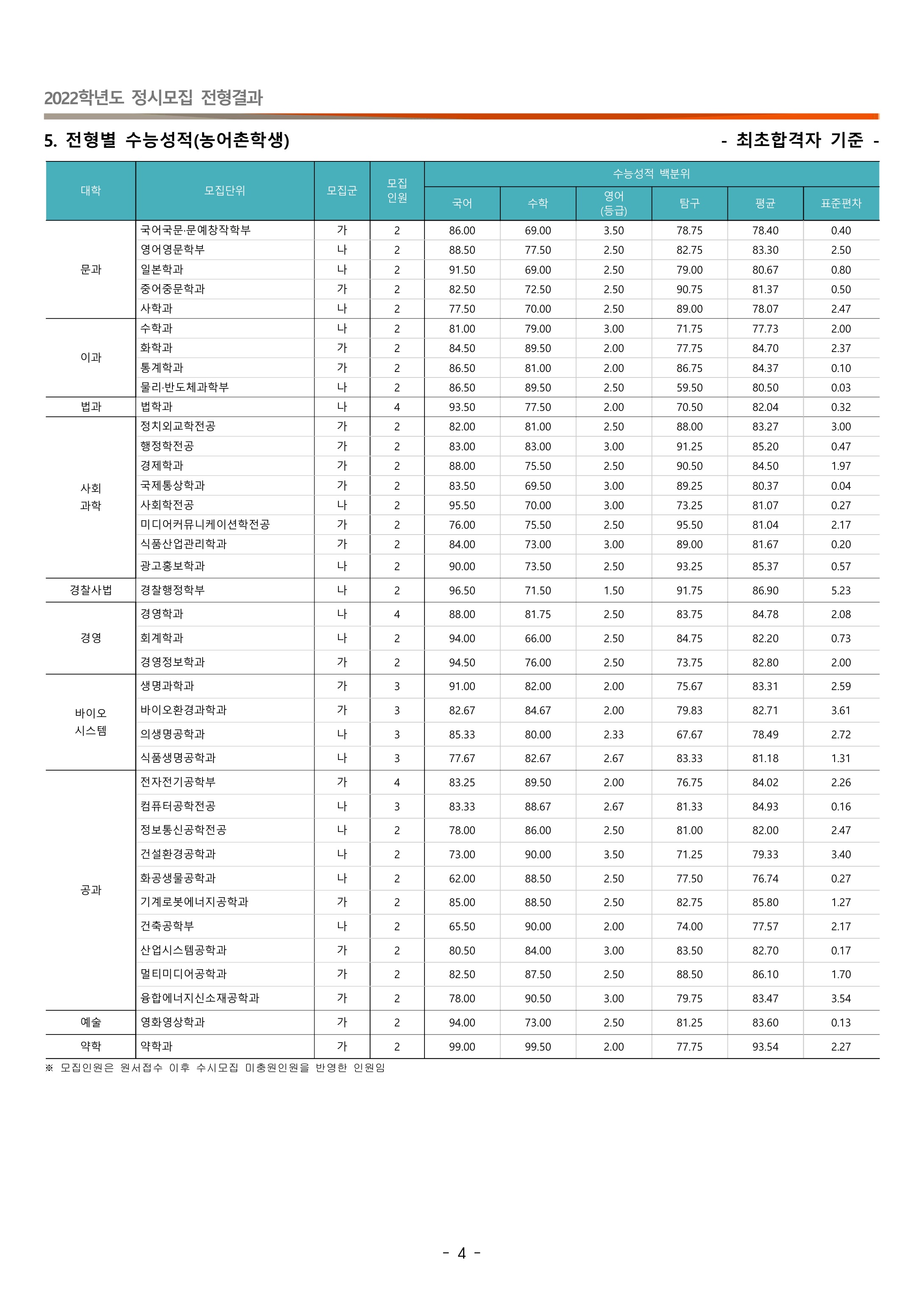 2022학년도 동국대학교 농어촌학생 정시등급 2022학년도 동국대학교 특성화고교졸업자 정시등급