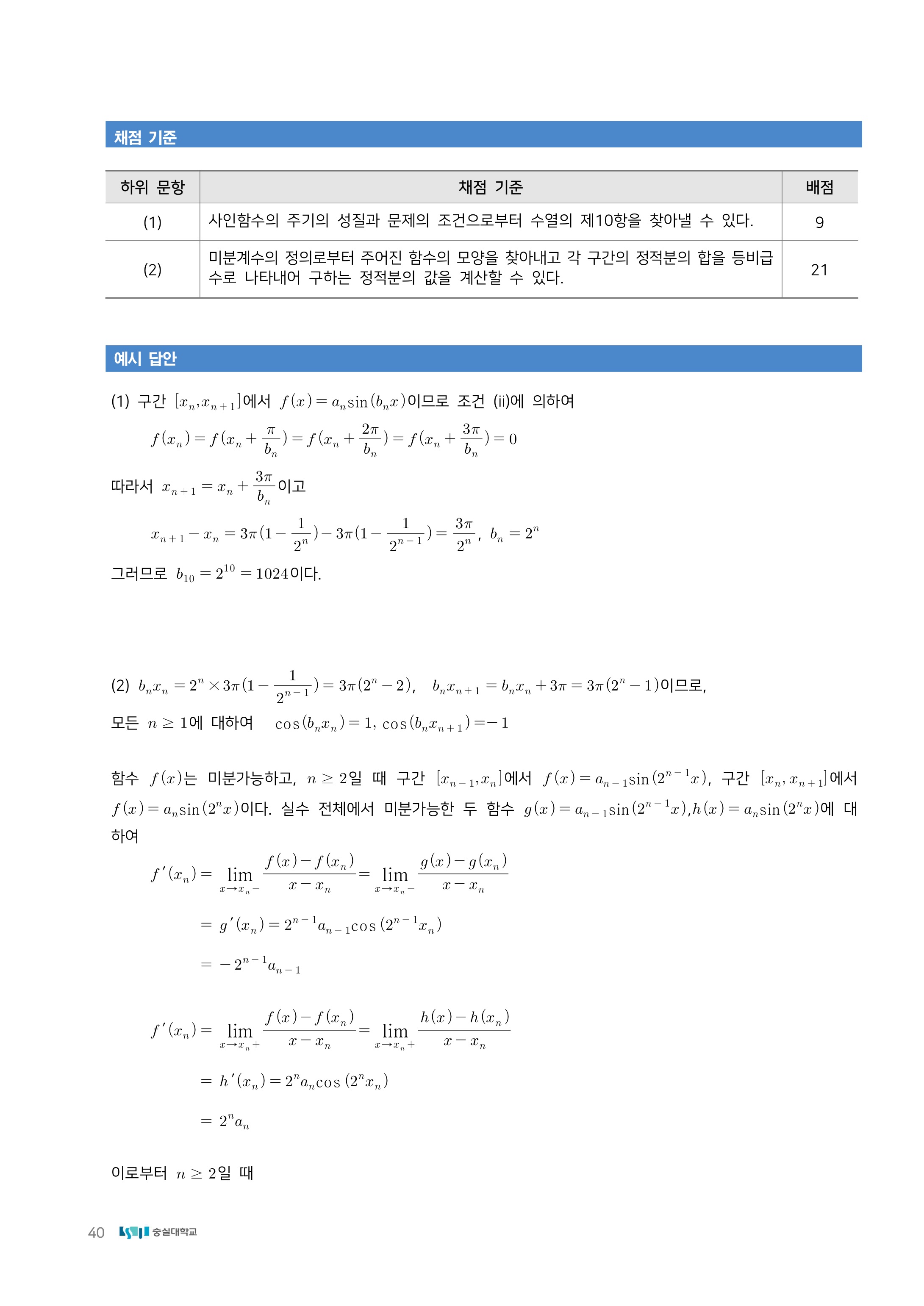 2022학년도 숭실대학교 수시 논술고사 기출문제 (자연2) 2022학년도 숭실대학교 수시 논술고사 해설 (자연2)