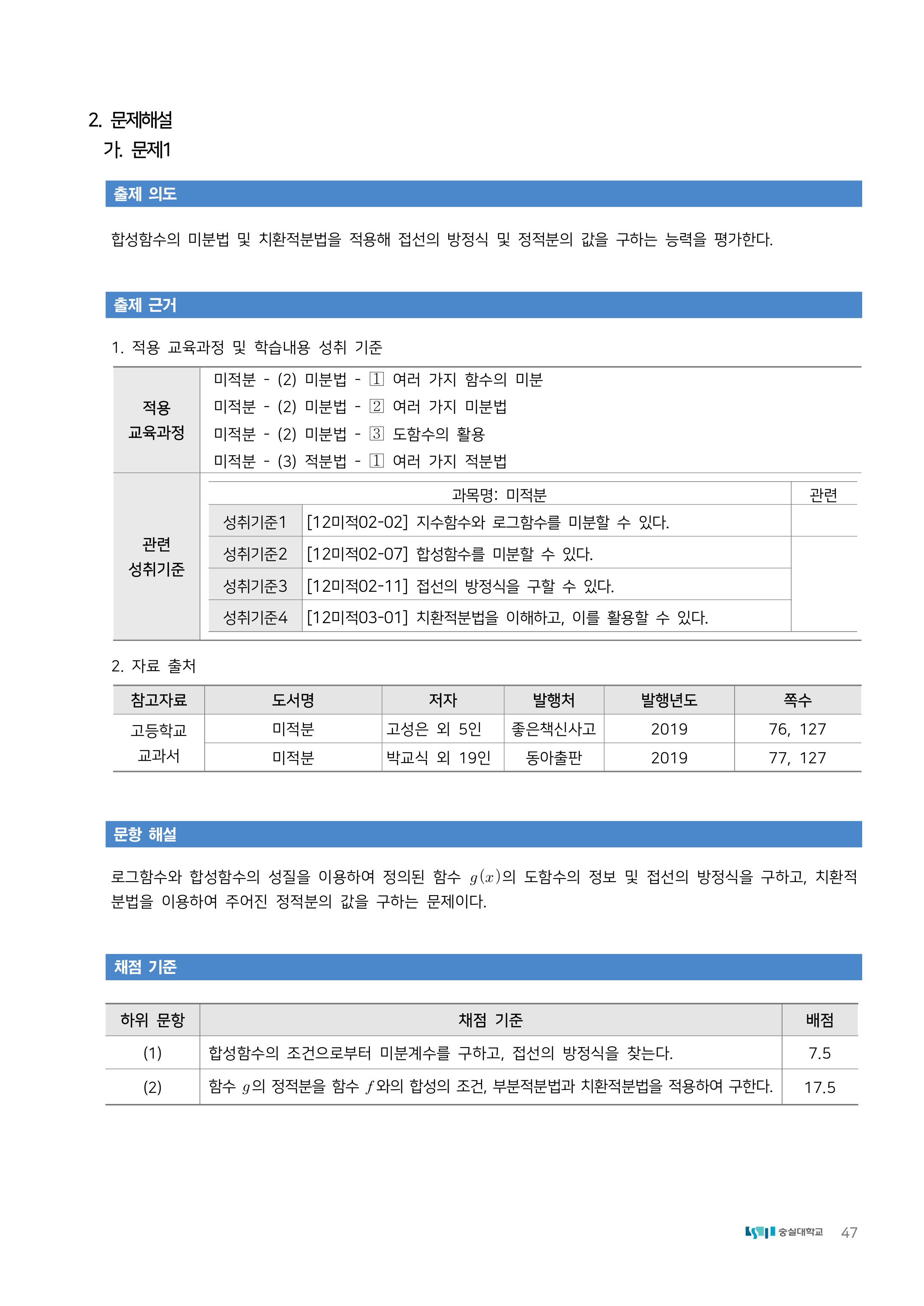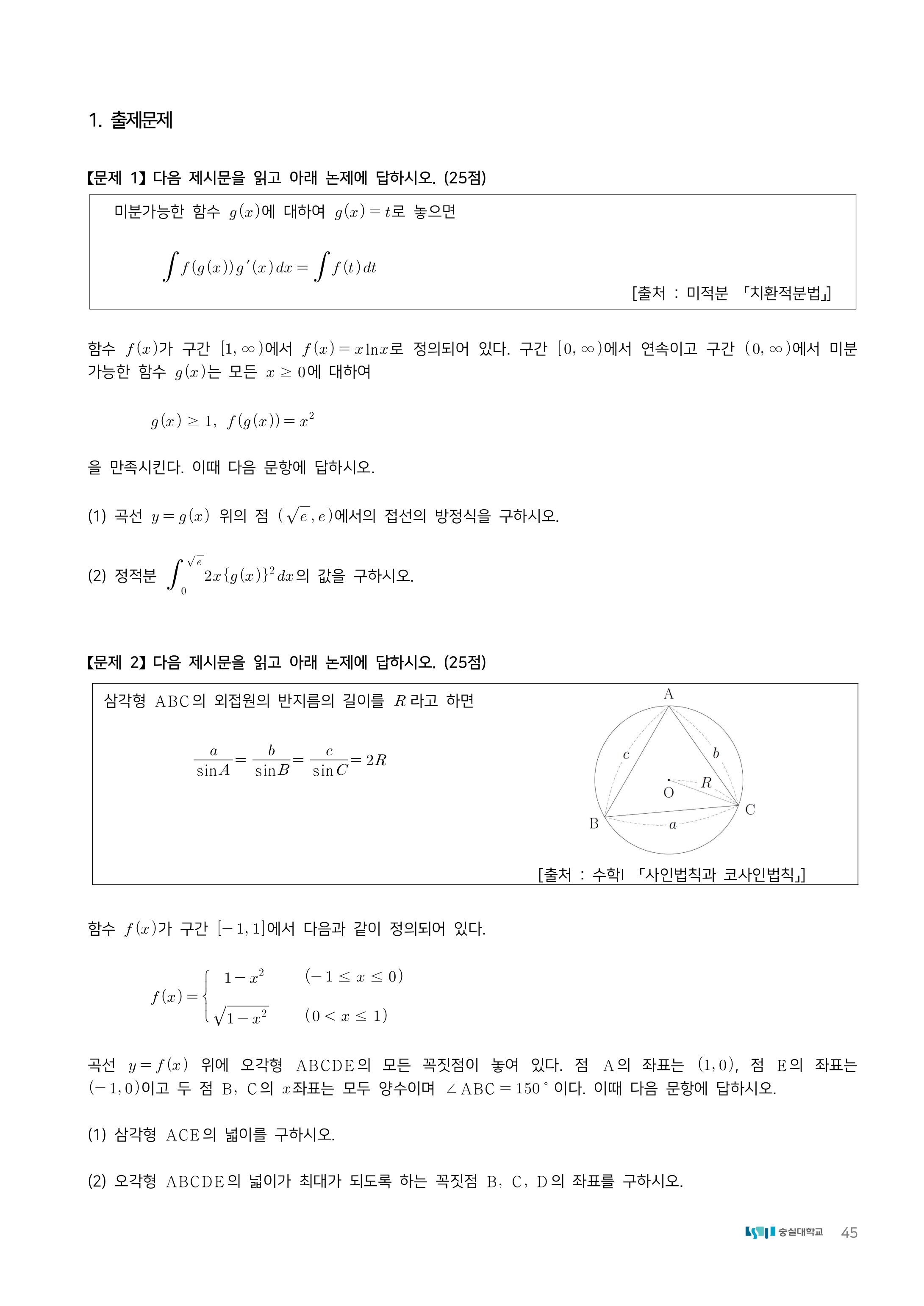 2022학년도 숭실대학교 수시 논술고사 해설 (자연1) 2022학년도 숭실대학교 수시 논술고사 기출문제 (자연2)