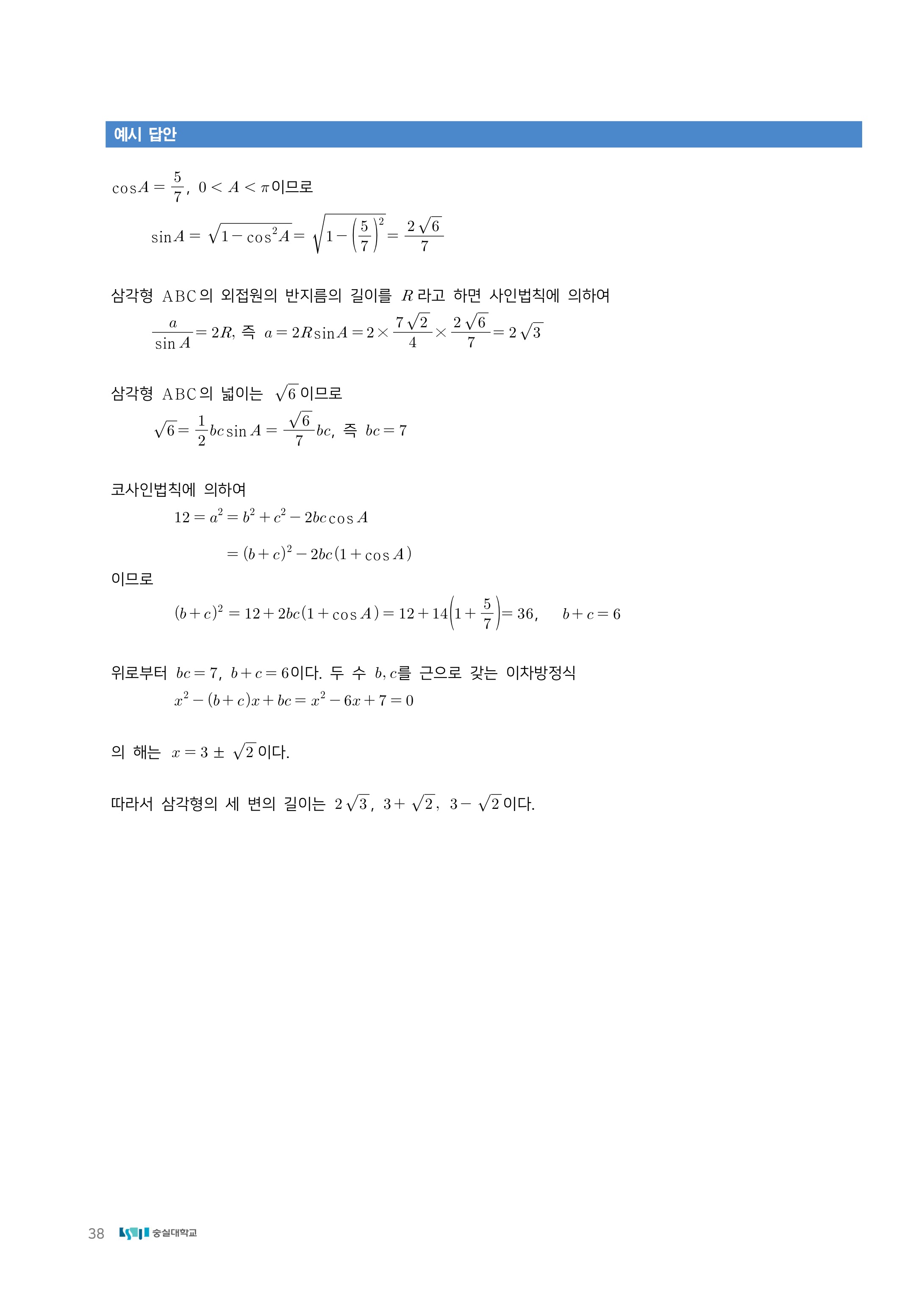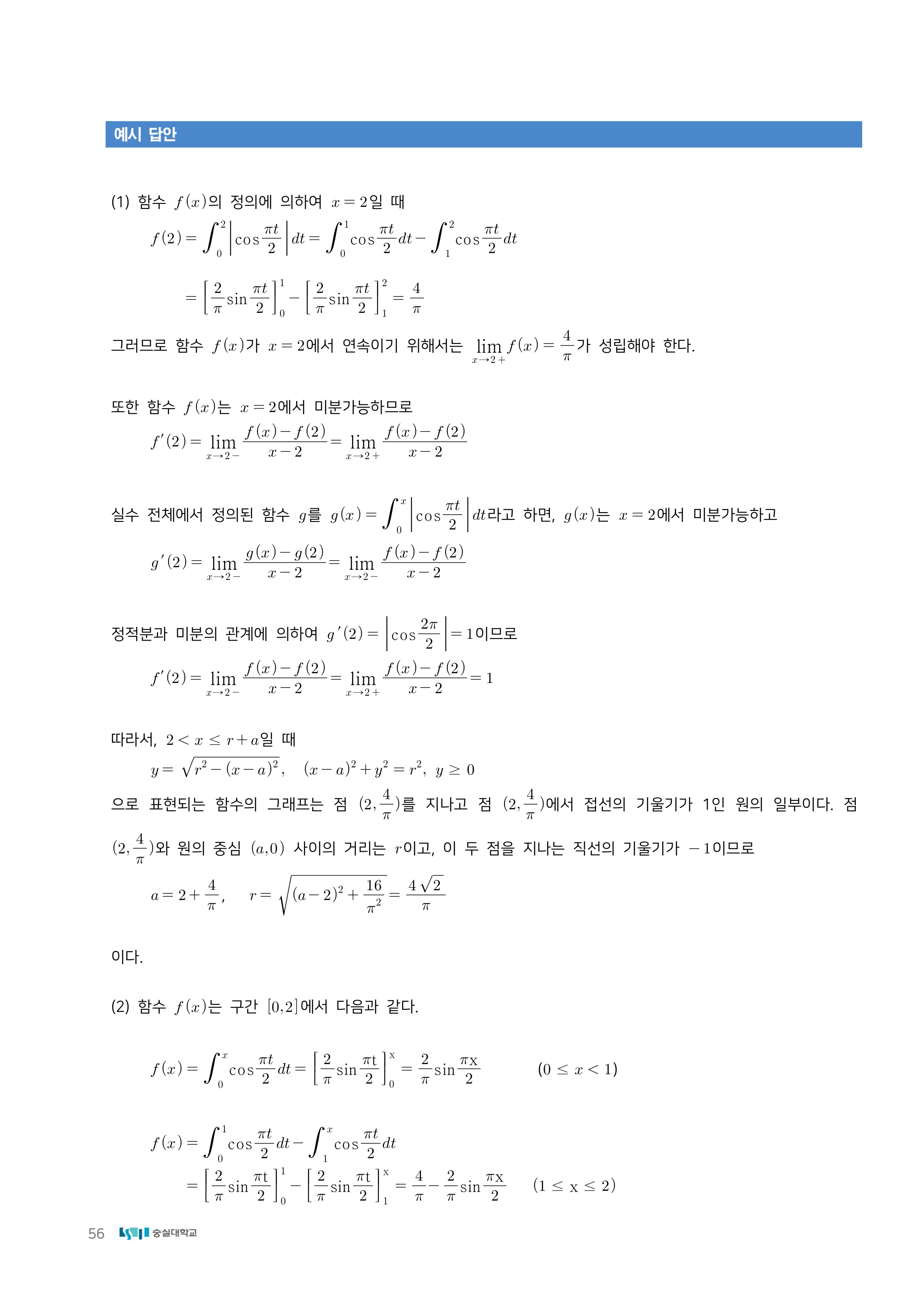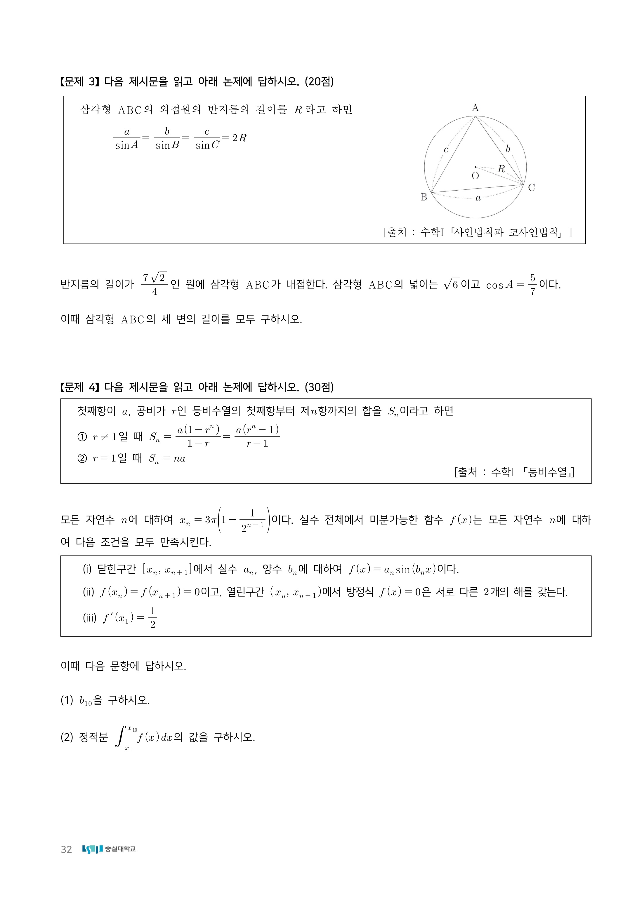 2022학년도 숭실대학교 수시 논술고사 기출문제 (자연1) 2022학년도 숭실대학교 수시 논술고사 해설 (자연1)