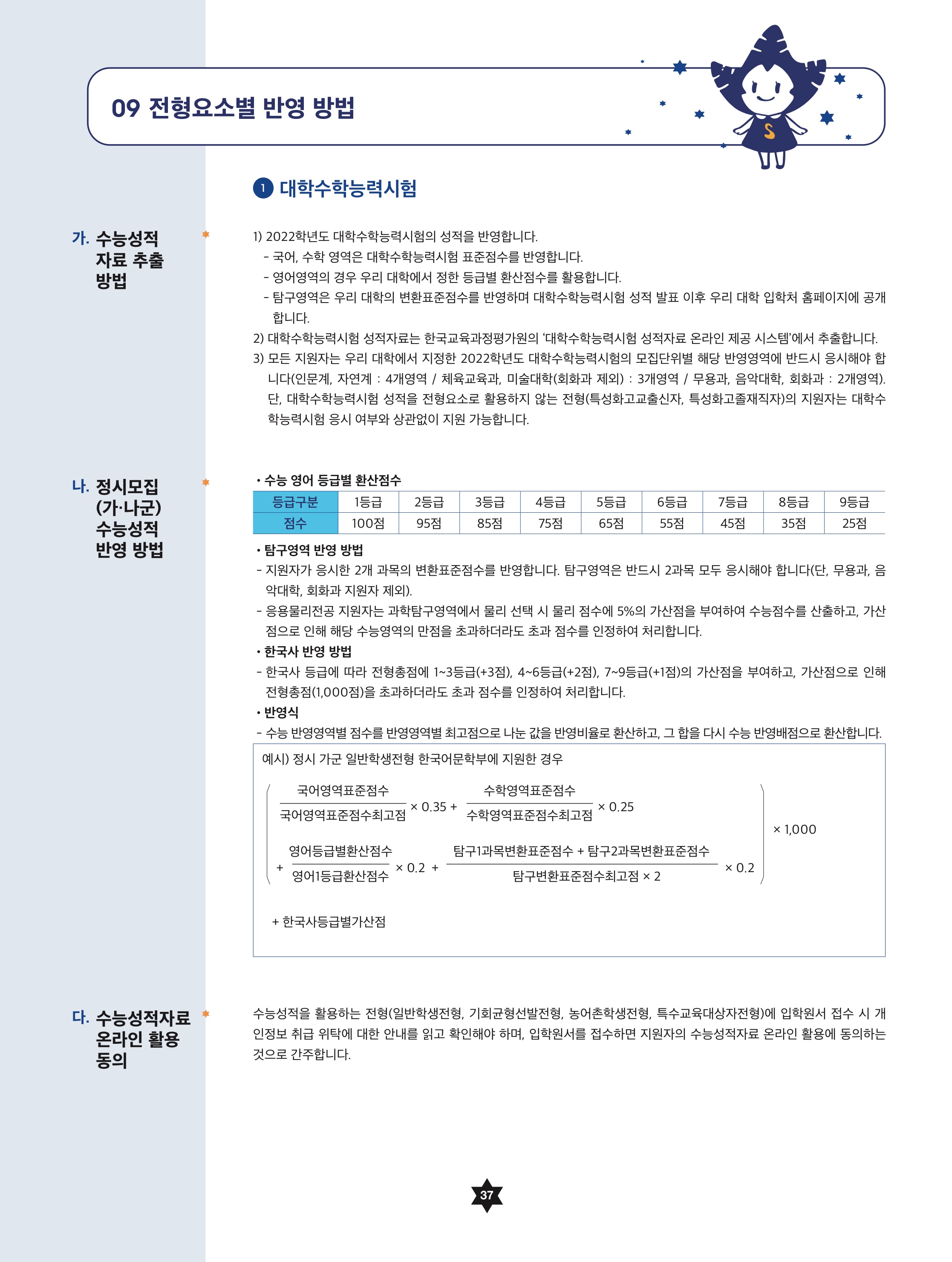 2022학년도 숙명여자대학교 대학수학능력시험 반영 방법 2022학년도 숙명여자대학교 정시등급