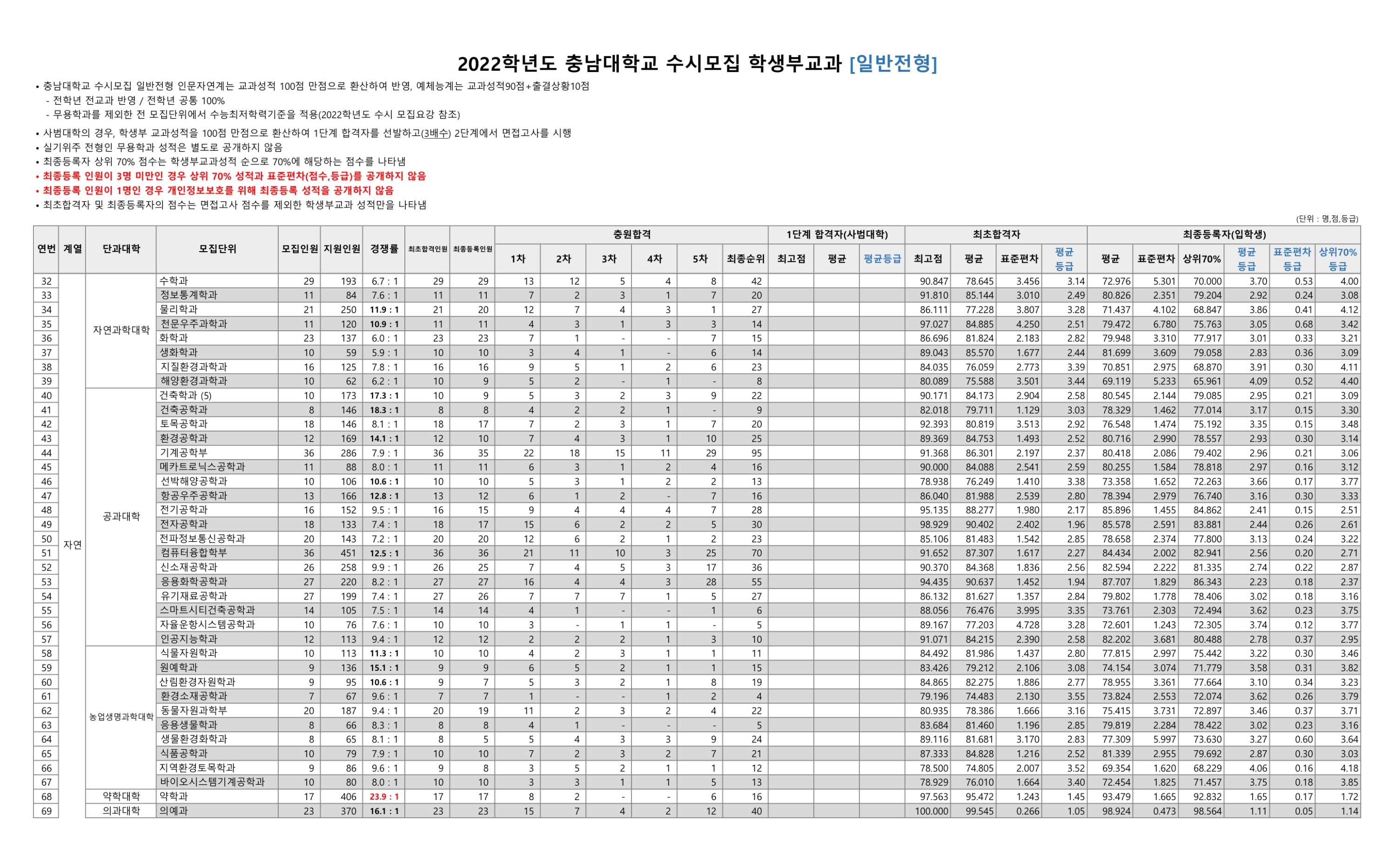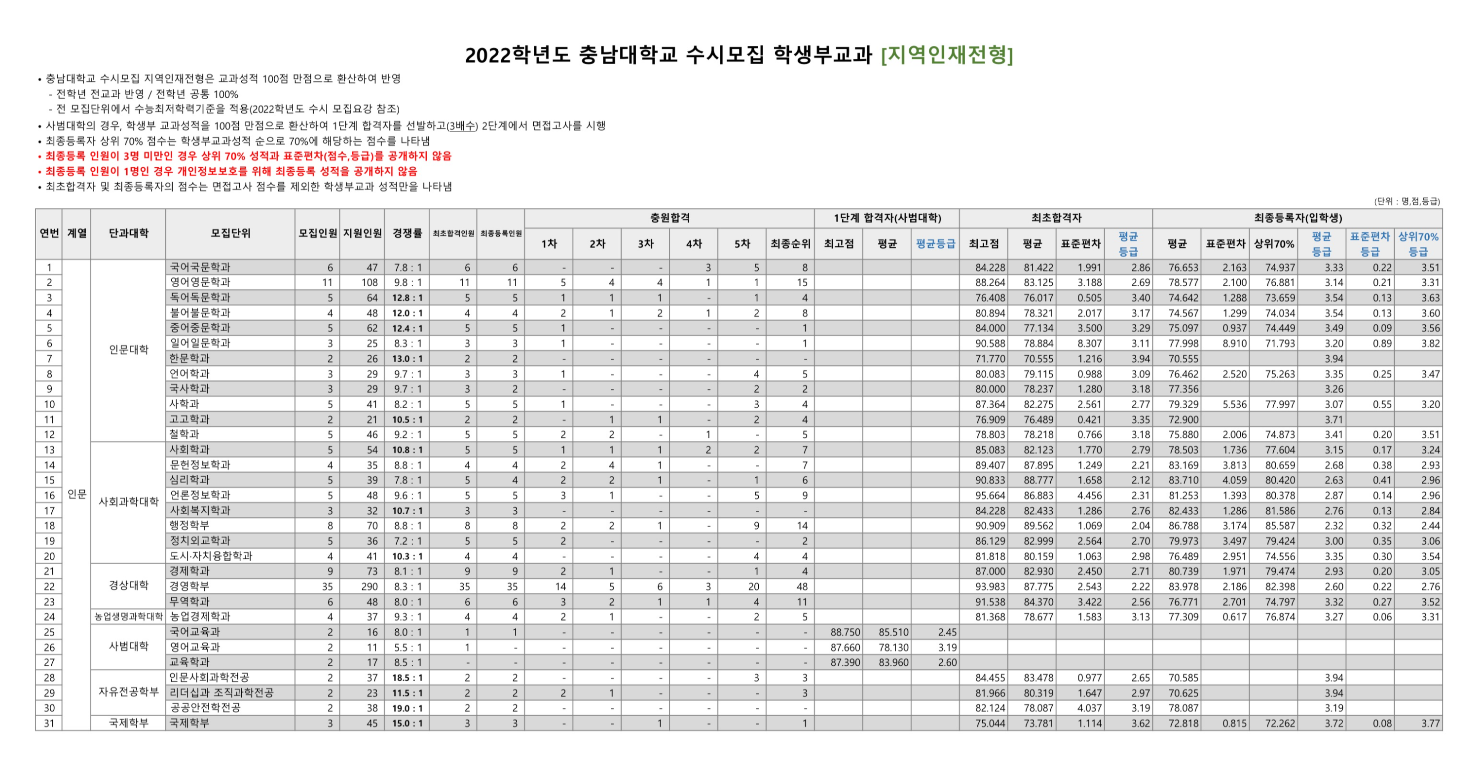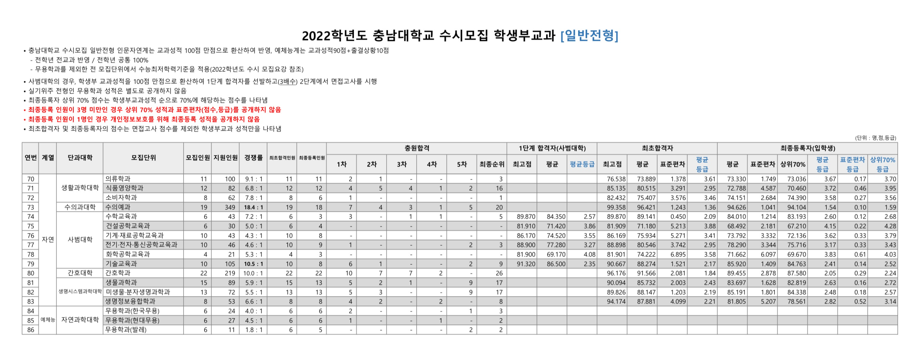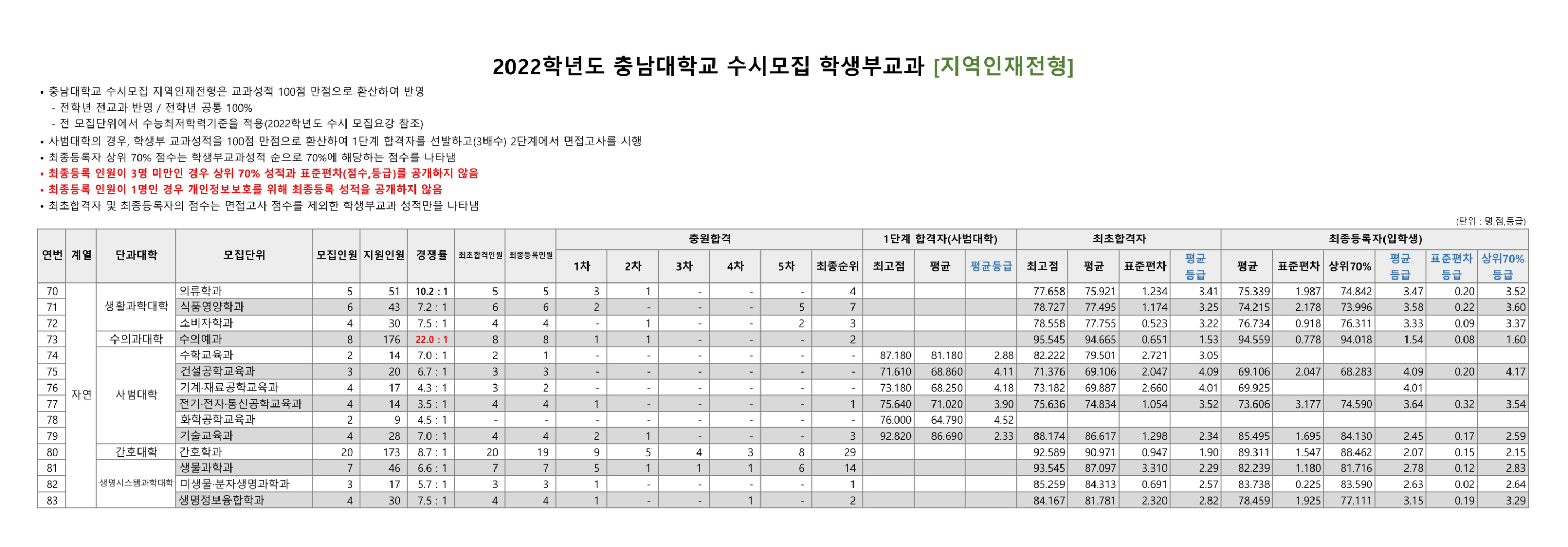 2022학년도 충남대학교 학생부교과 일반전형 수시등급 2022학년도 충남대학교 학생부교과 지역인재전형 수시등급
