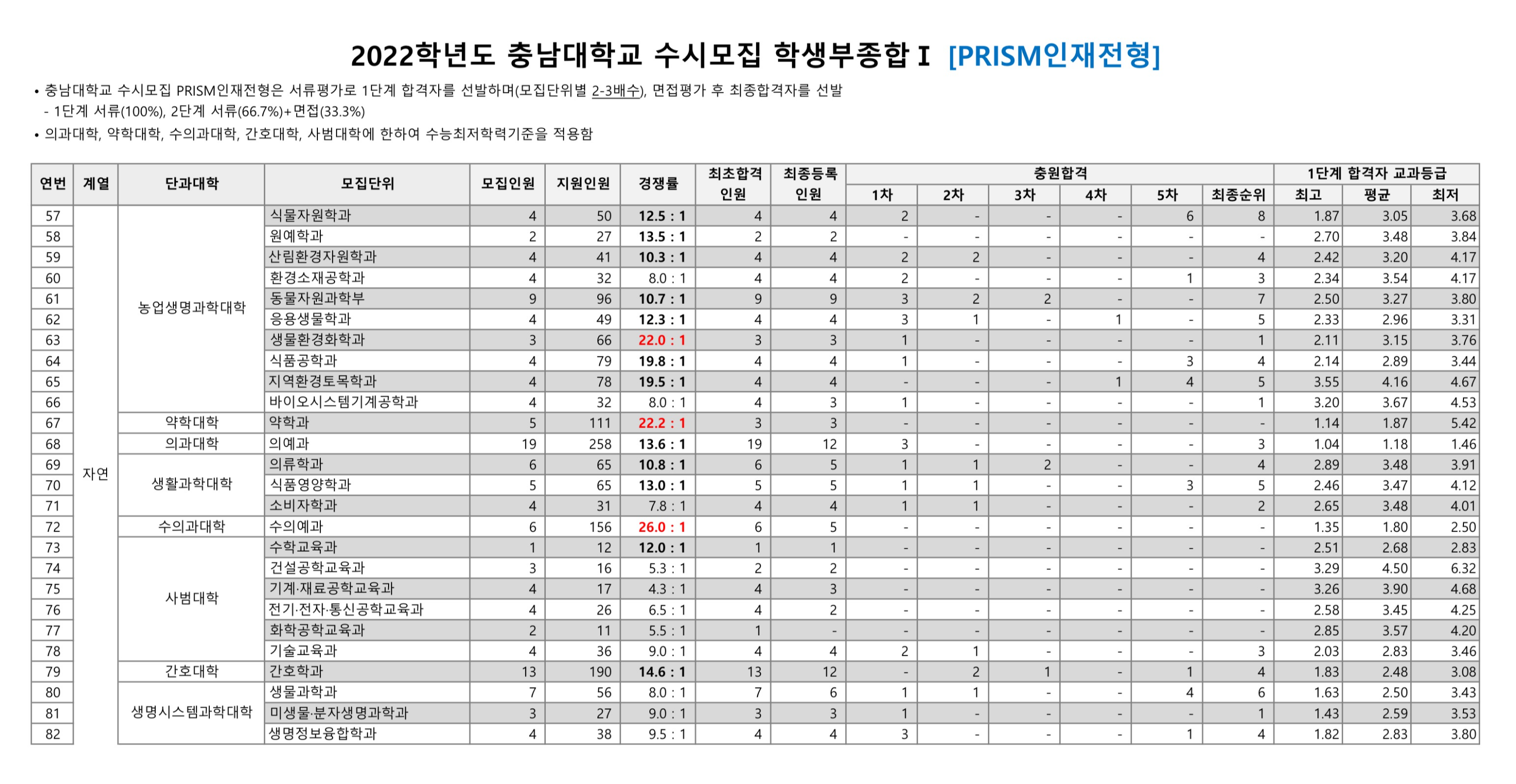 2022학년도 충남대학교 학생부종합Ⅰ PRISM인재전형 수시등급 2022학년도 충남대학교 학생부종합Ⅰ 소프트웨어인재, 영농창업인재전형, 국가안보융합인재전형 수시등급