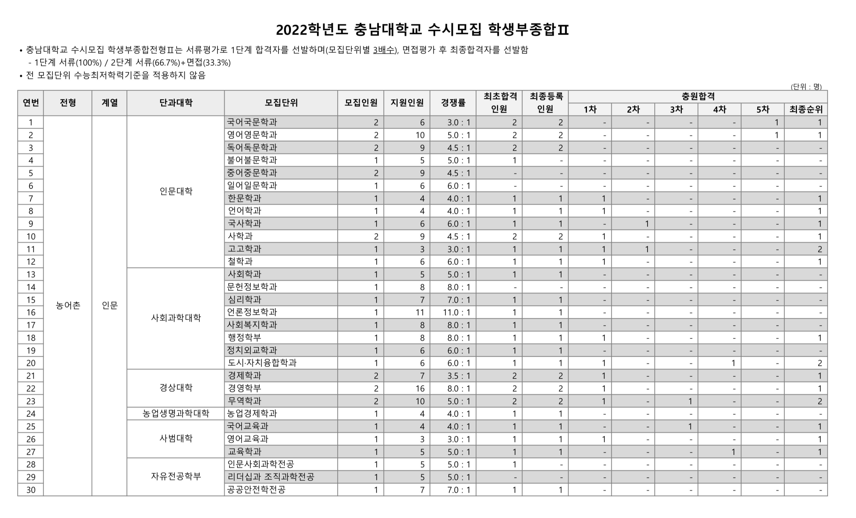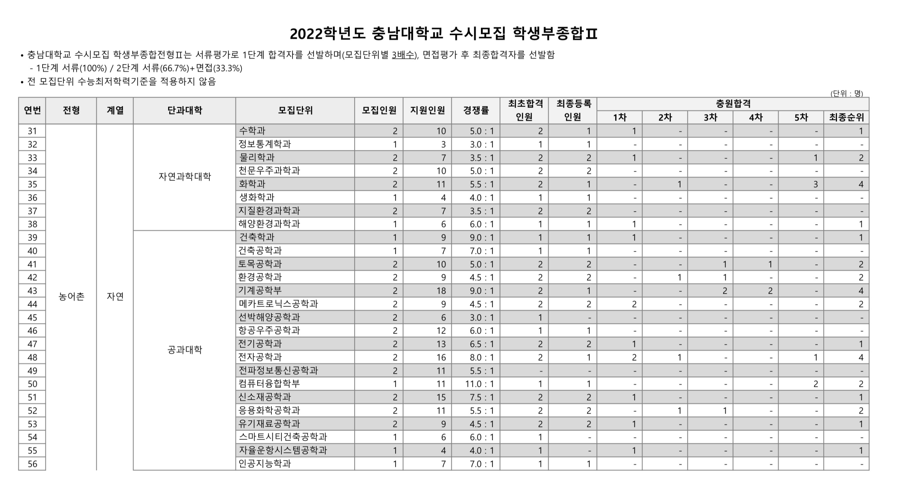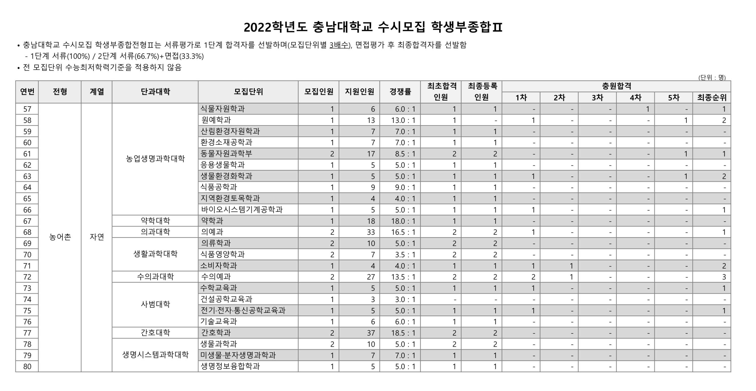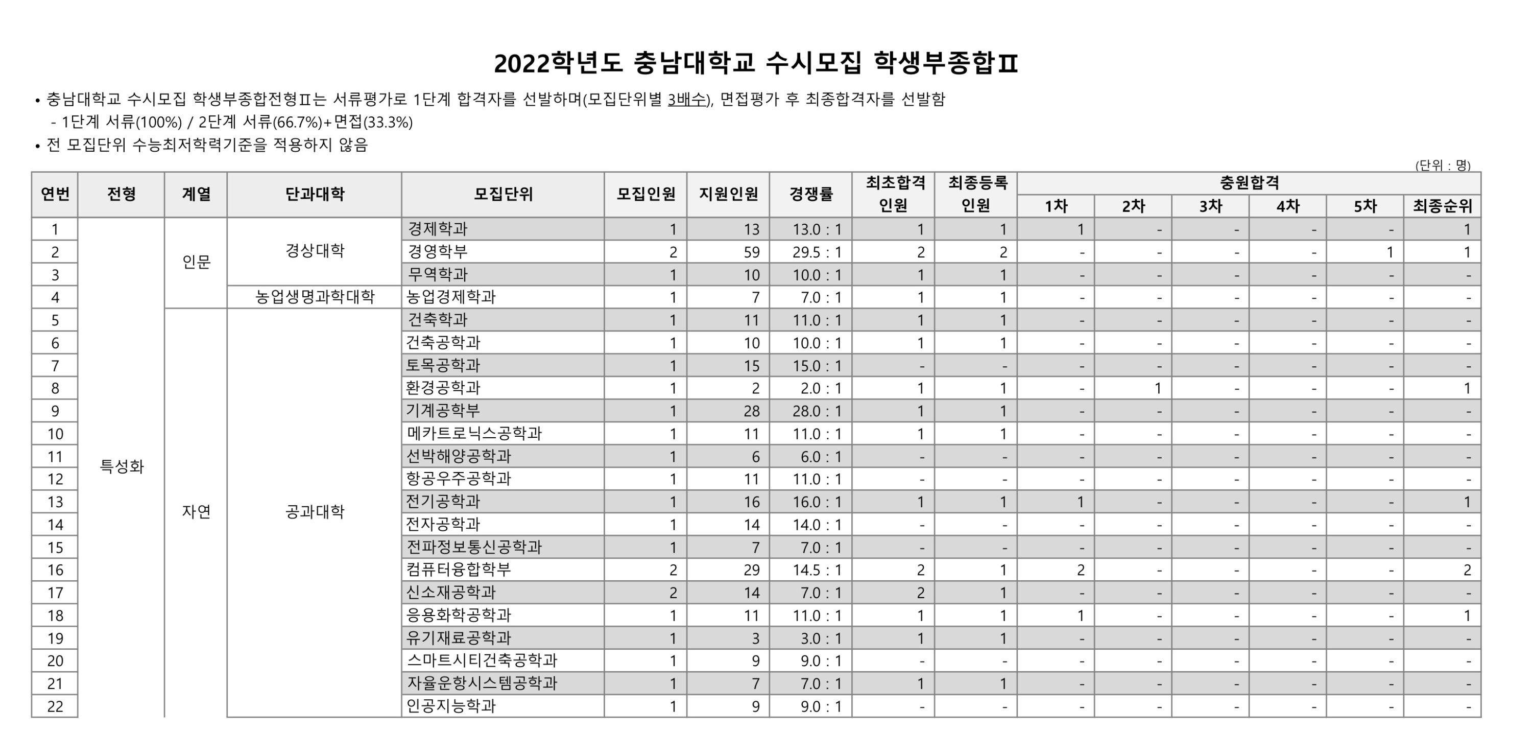 2022학년도 충남대학교 학생부종합Ⅱ 농어촌 수시등급