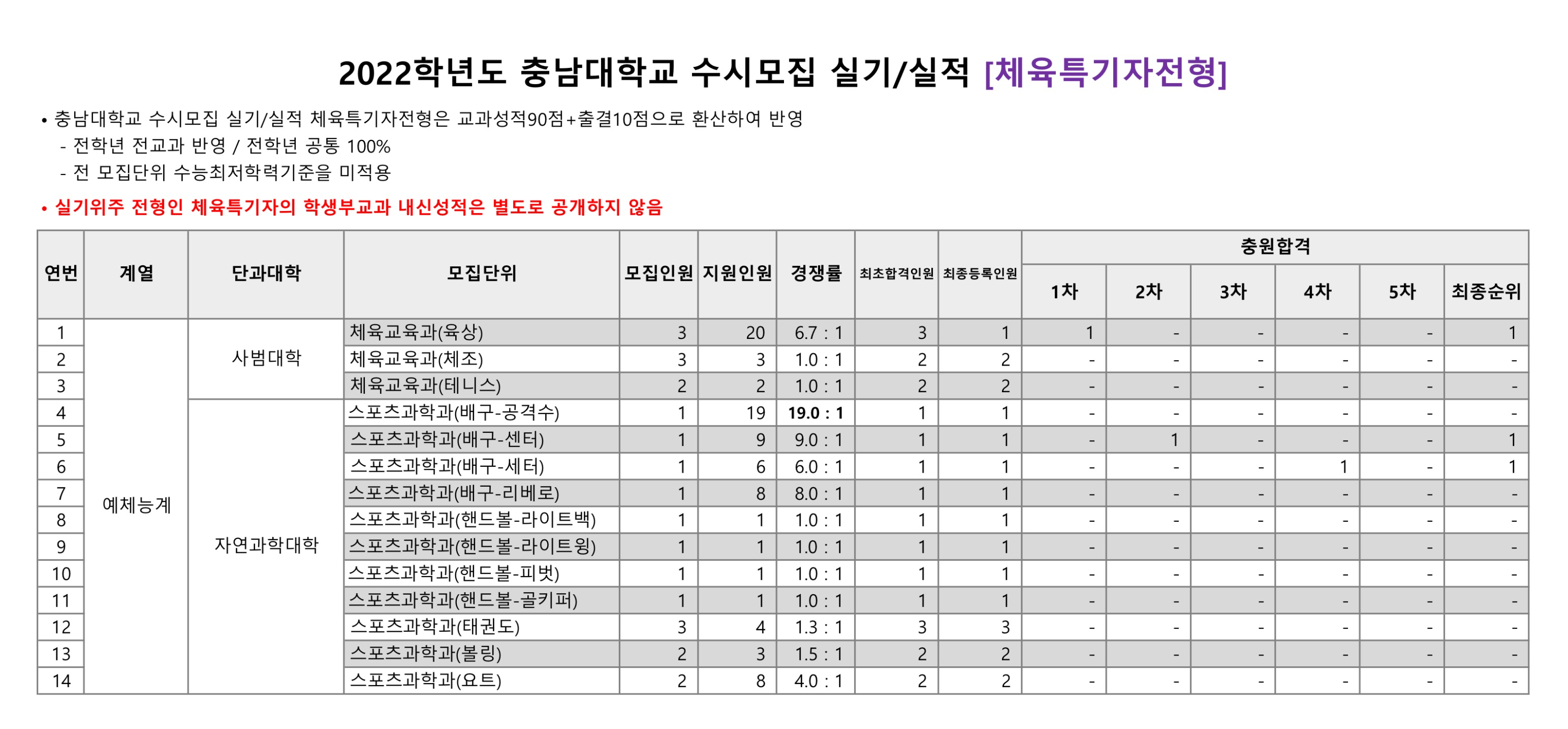 2022학년도 충남대학교 학생부종합Ⅱ 특성화, 특성화고졸재직자 수시등급 2022학년도 충남대학교 실기/실적 체육특기자전형 수시등급