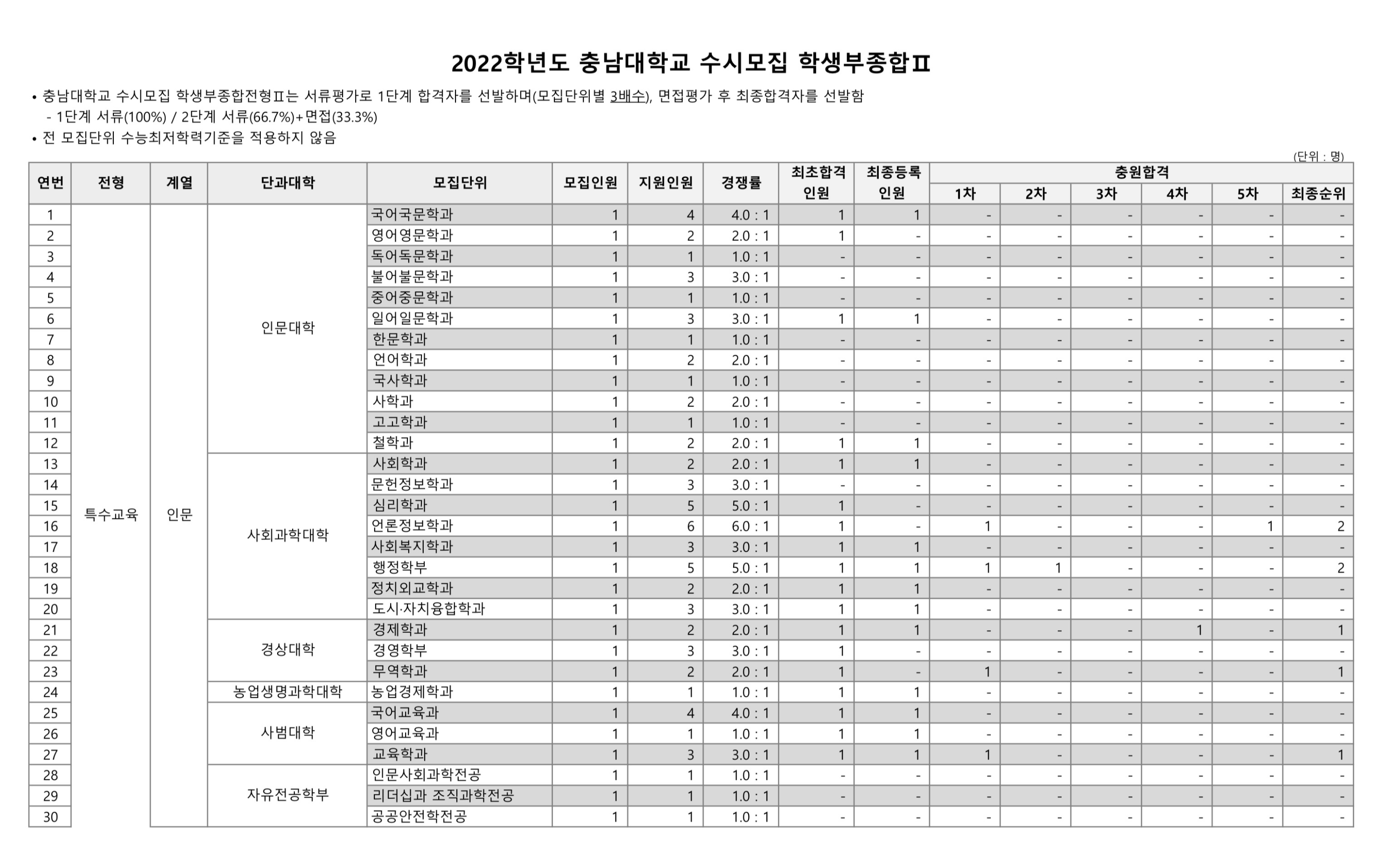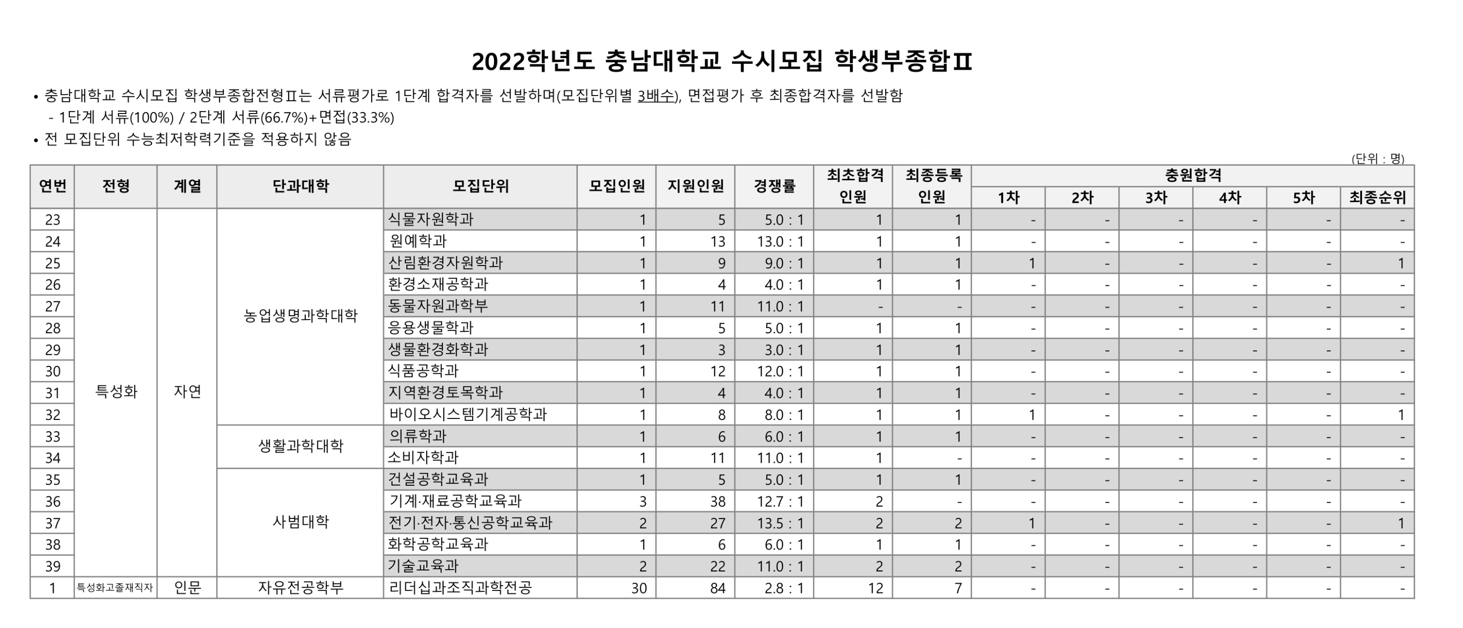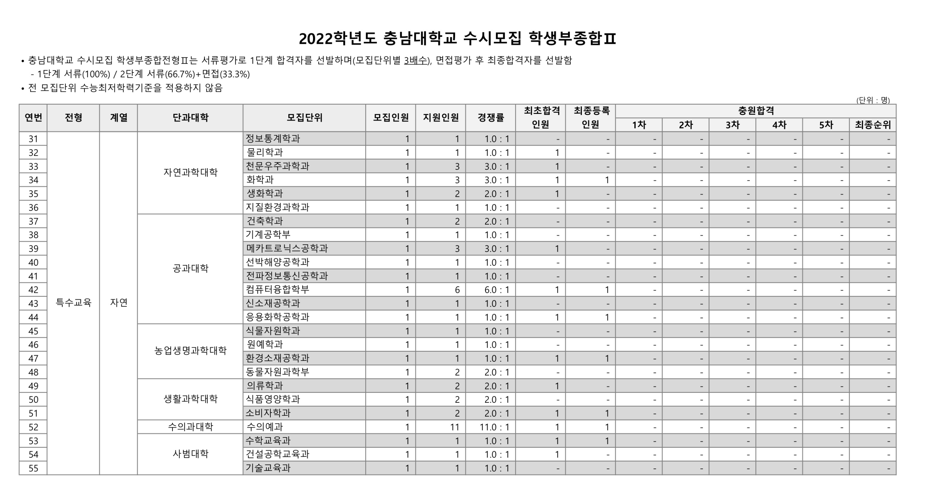 2022학년도 충남대학교 학생부종합Ⅱ 농어촌 수시등급 2022학년도 충남대학교 학생부종합Ⅱ 특수교육 수시등급