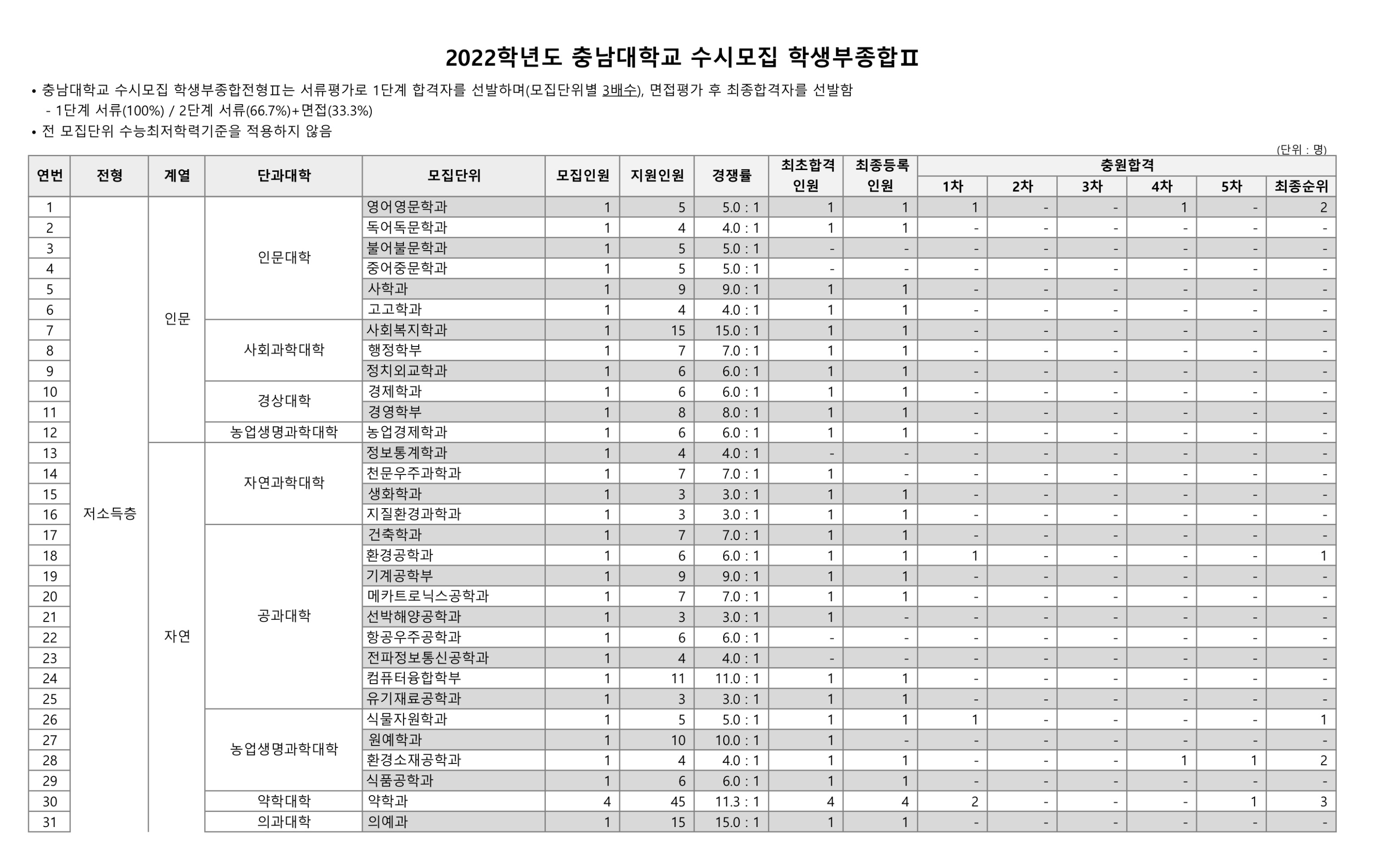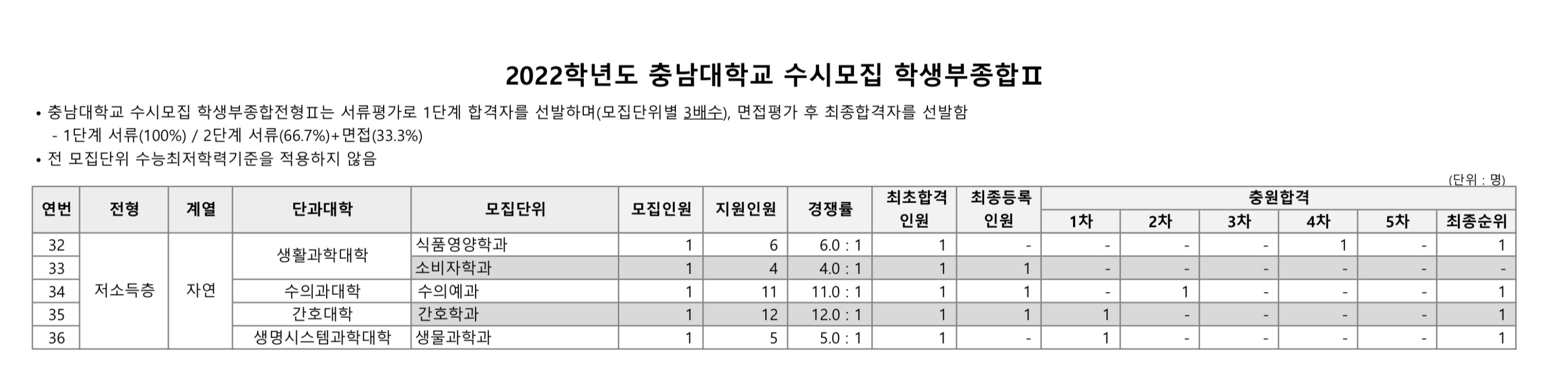 2022학년도 충남대학교 학생부종합Ⅱ 특수교육 수시등급 2022학년도 충남대학교 학생부종합Ⅱ 저소득층 수시등급