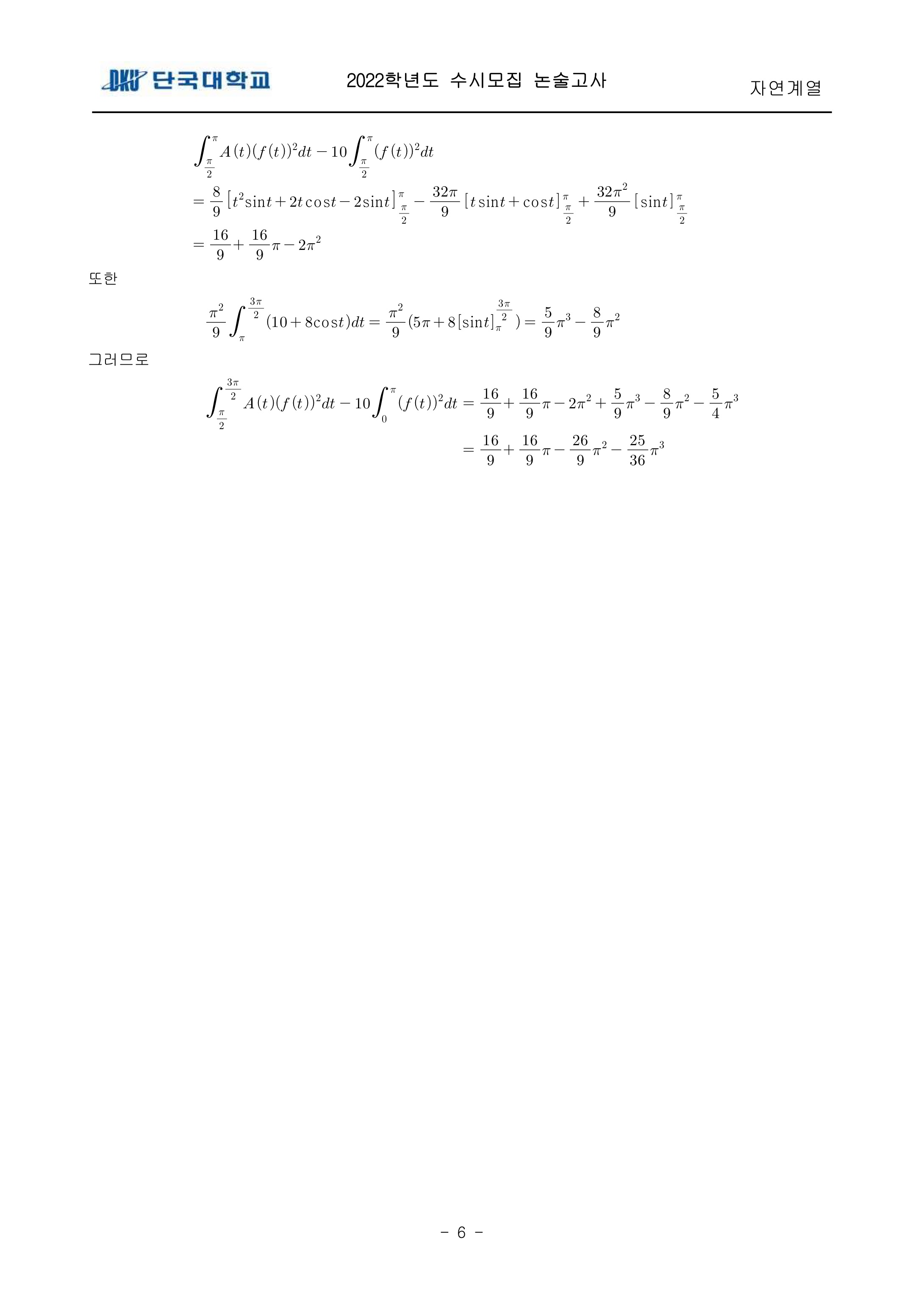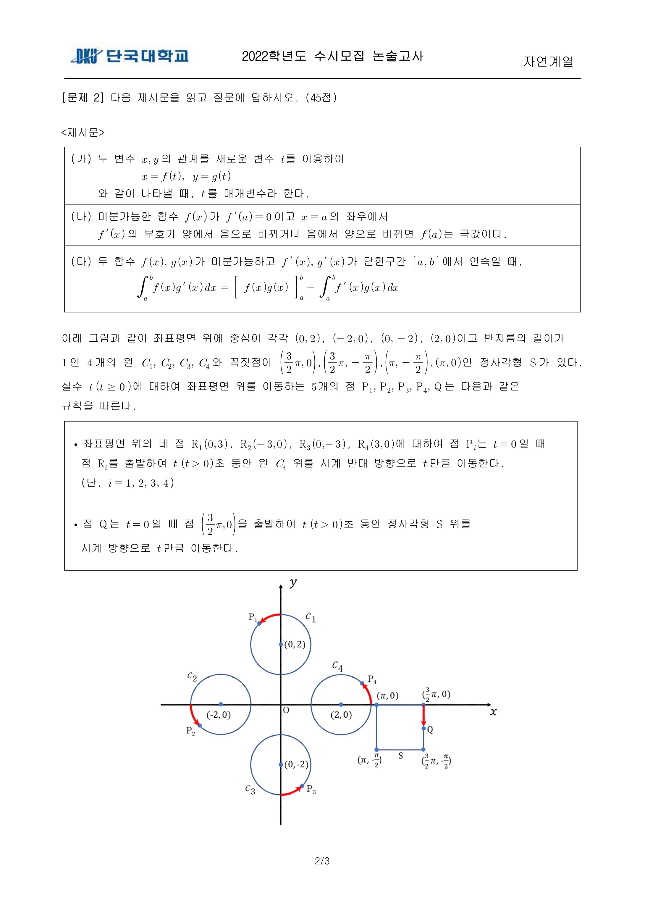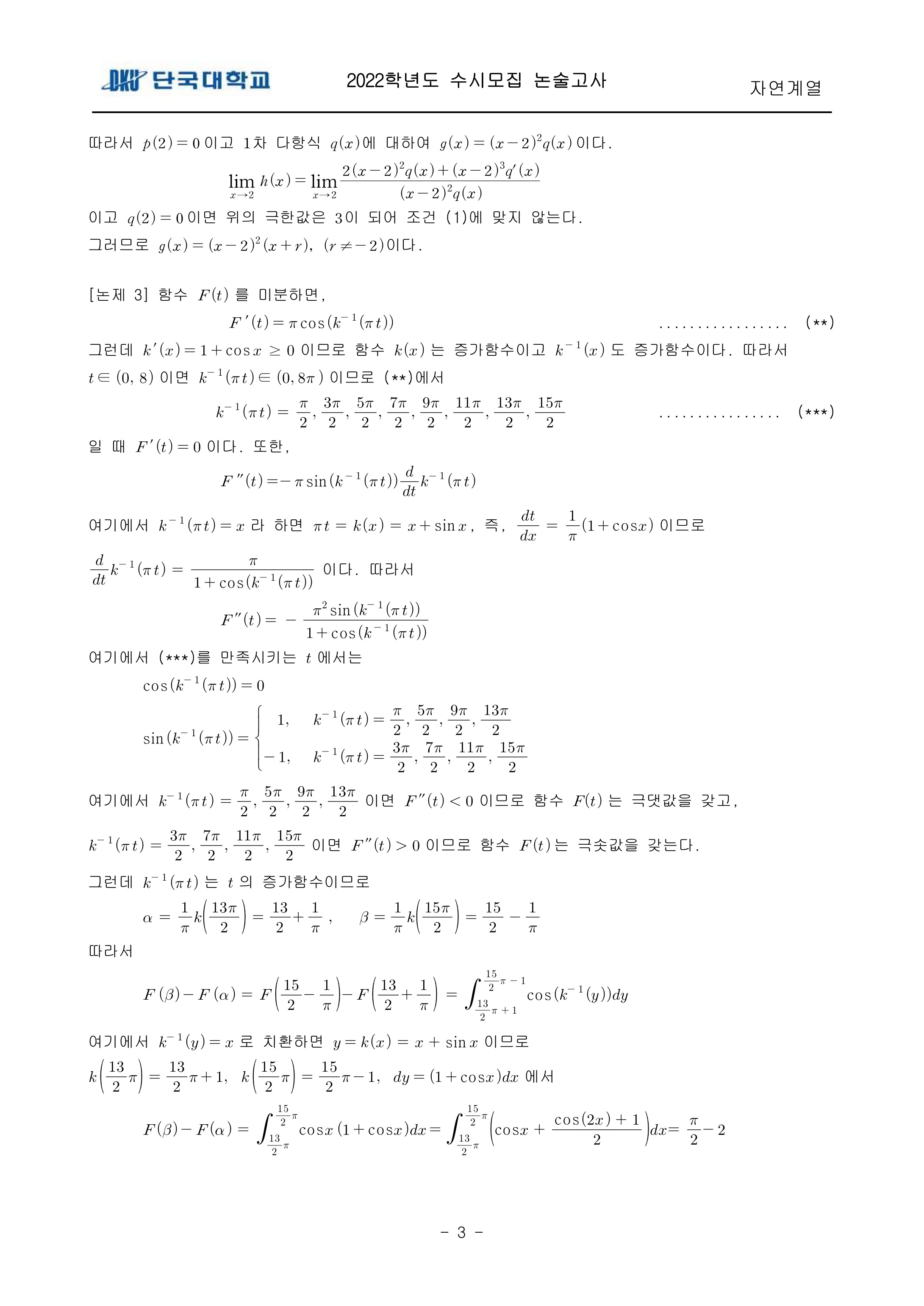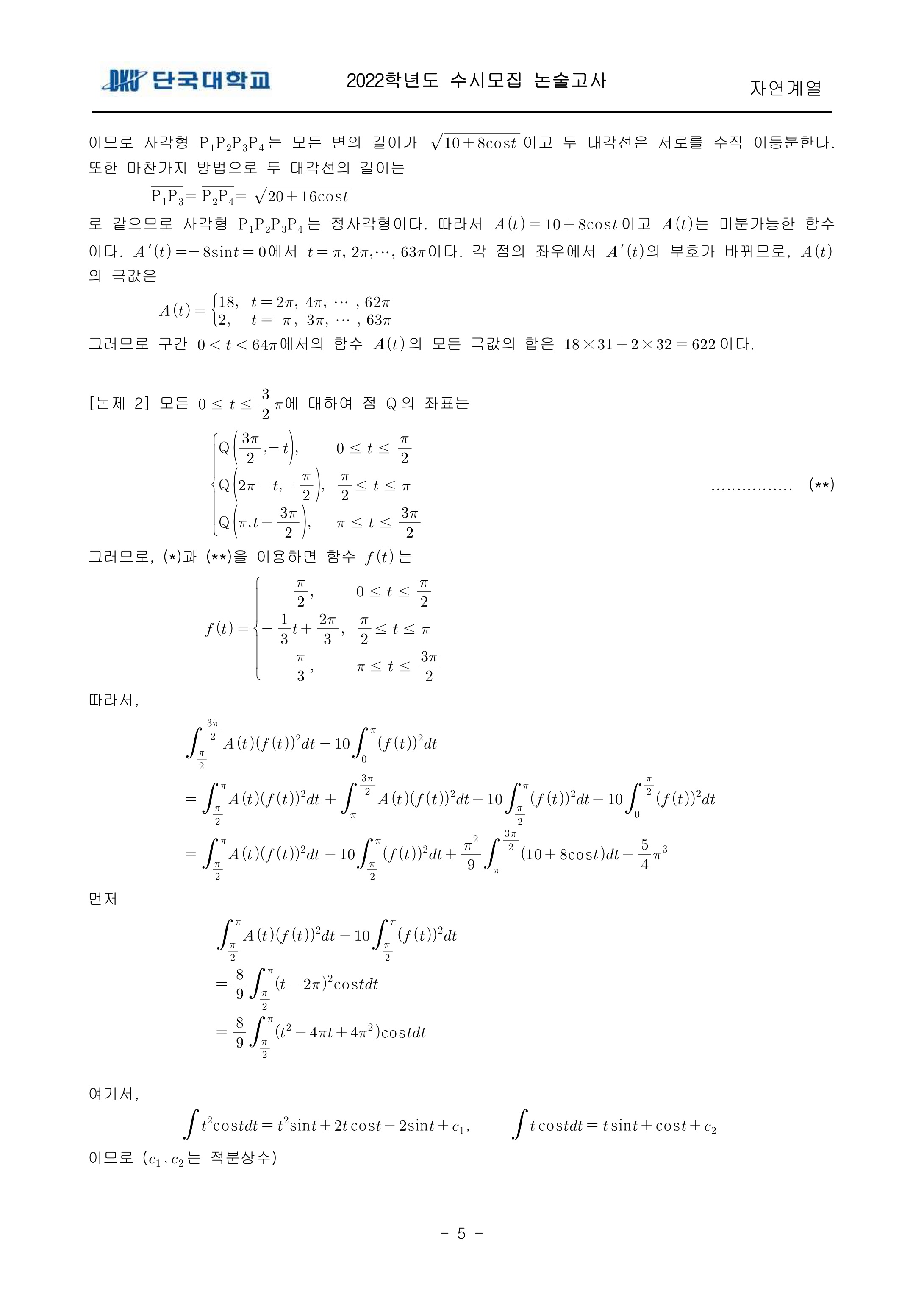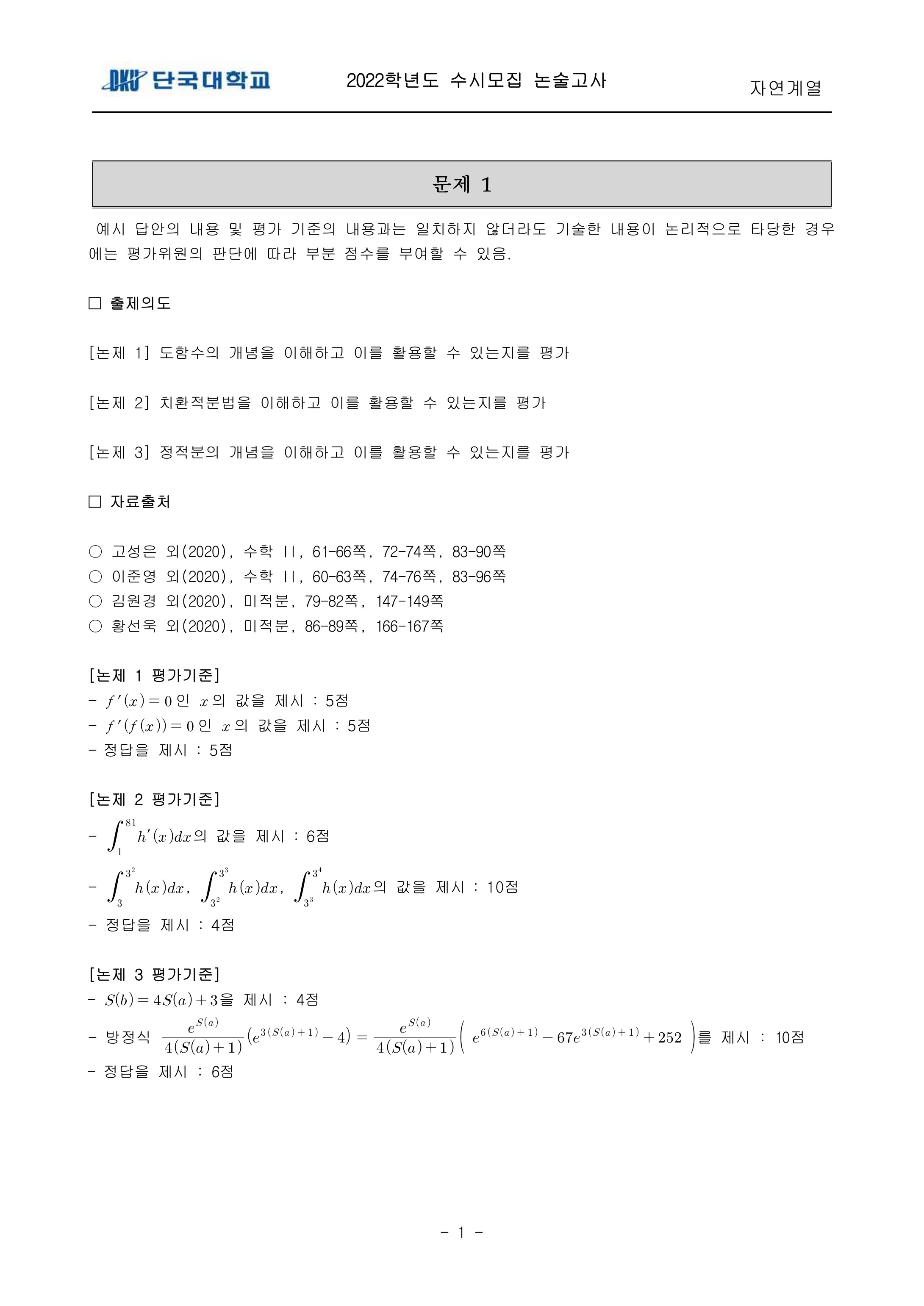 2022학년도 단국대학교 논술고사 자연계열 (오후) 기출문제 2022학년도 단국대학교 논술고사 자연계열 (오후) 해설