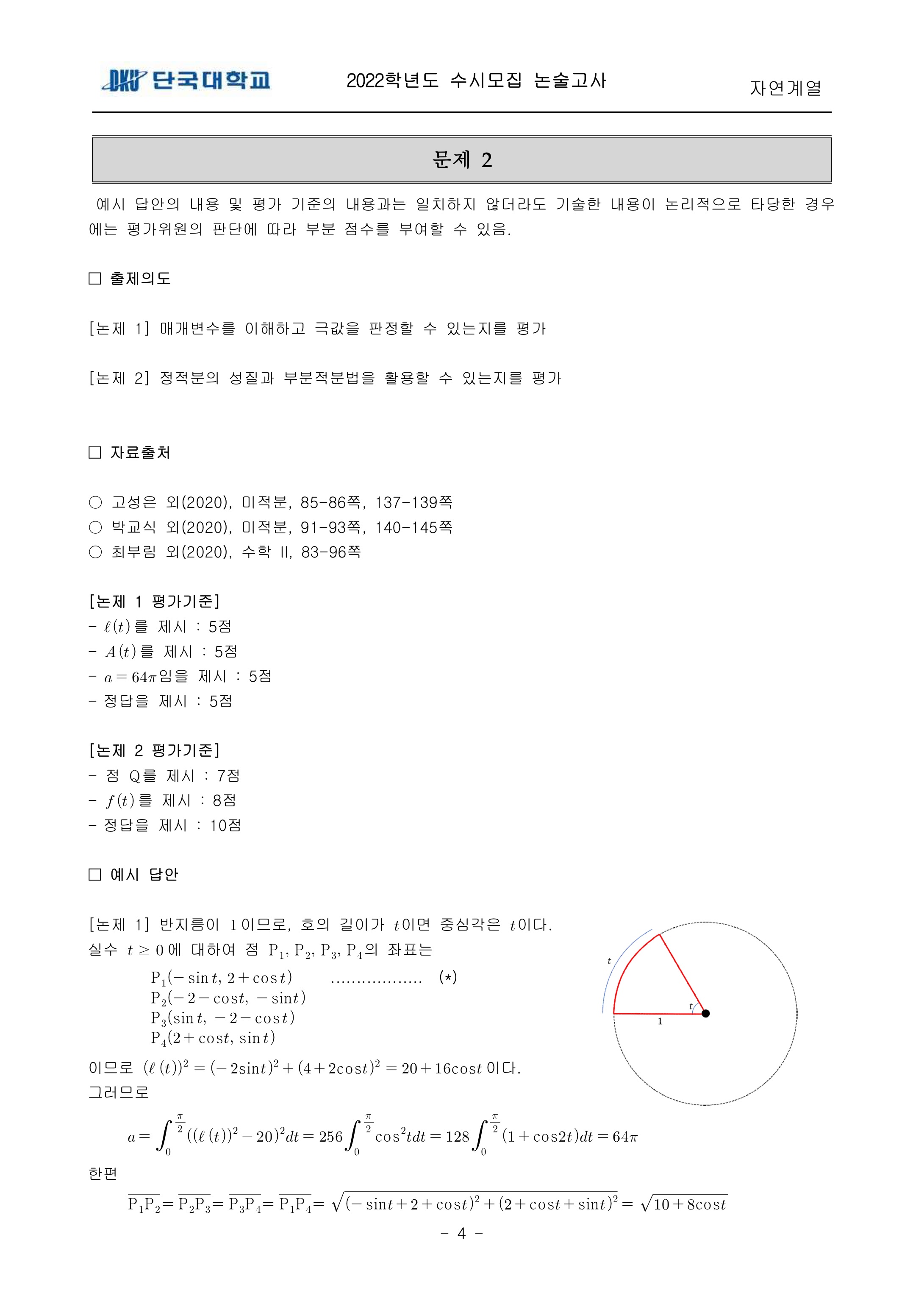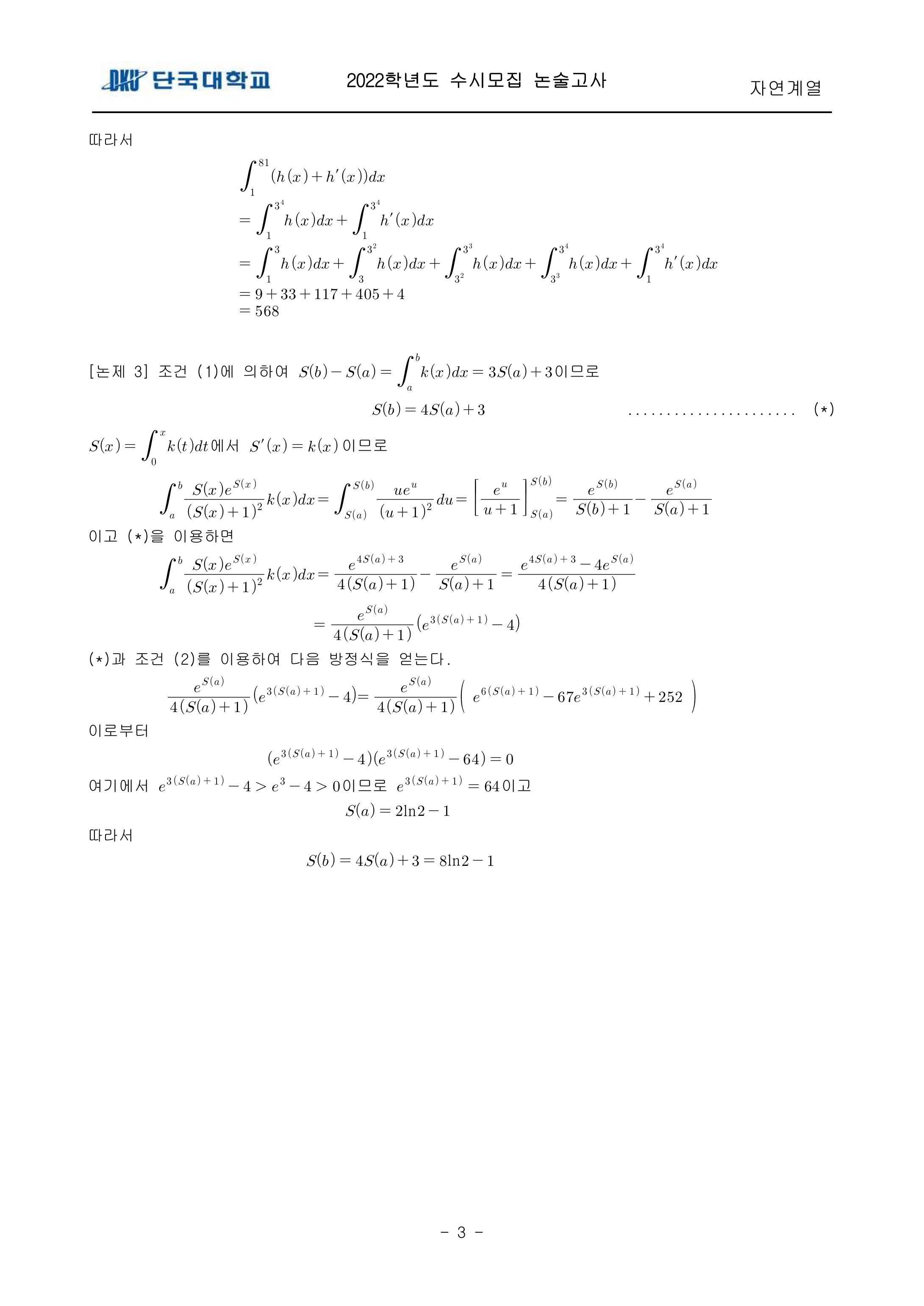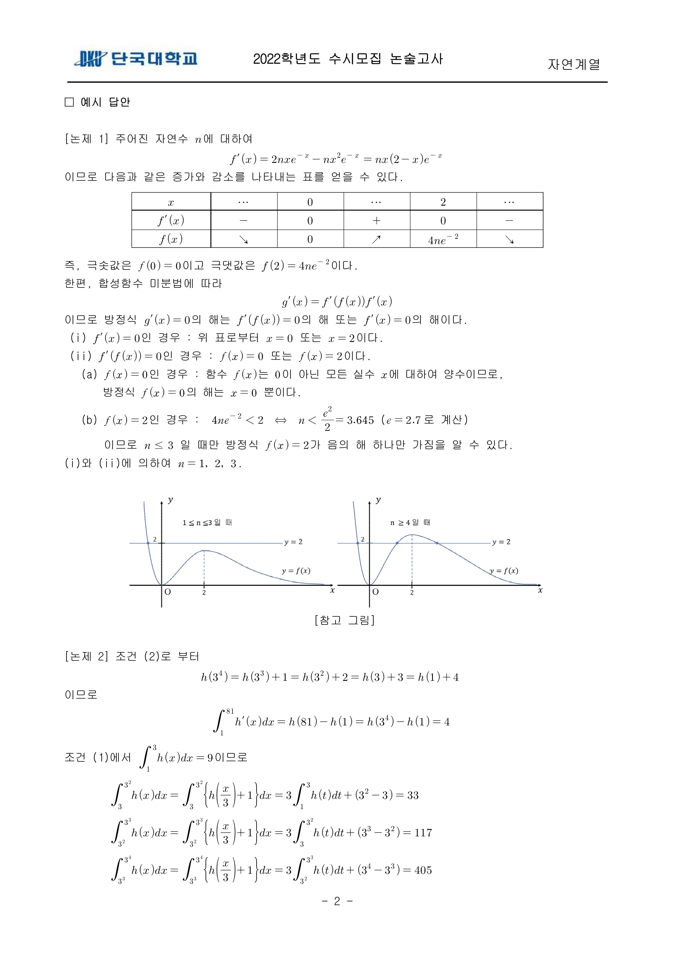 2022학년도 단국대학교 논술고사 자연계열 (오전) 기출문제 2022학년도 단국대학교 논술고사 자연계열 (오전) 해설