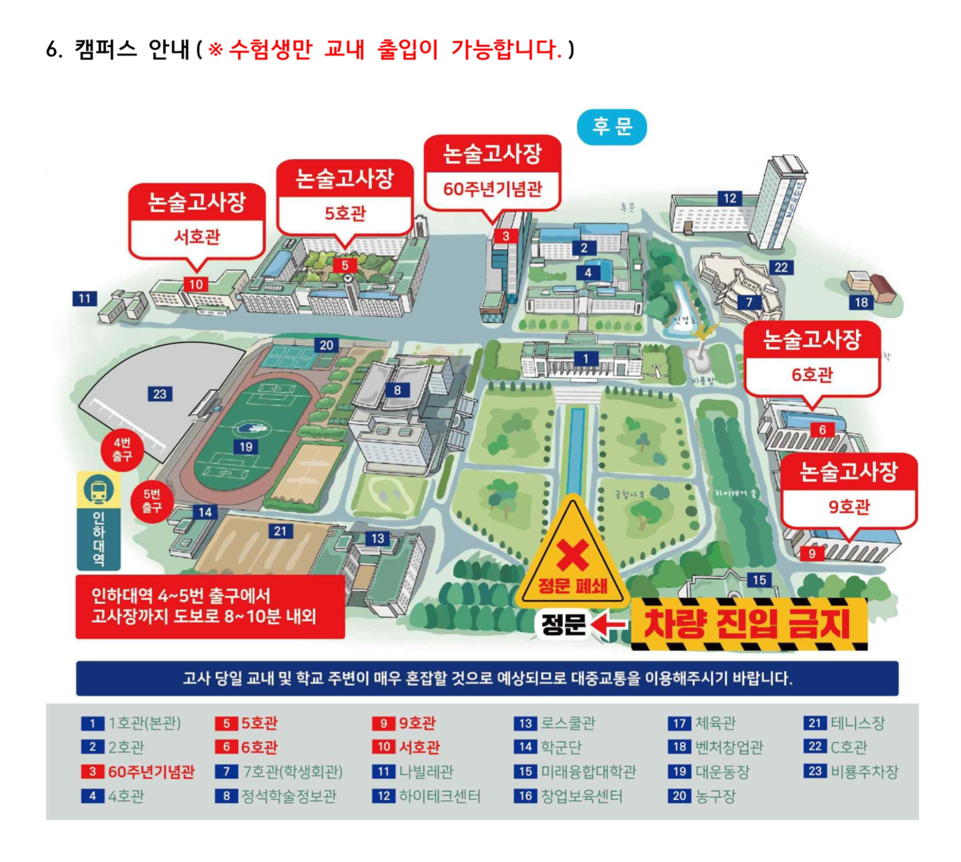 고사장 안내: 서호관, 5호관, 60주년기념관, 6호관, 9호관