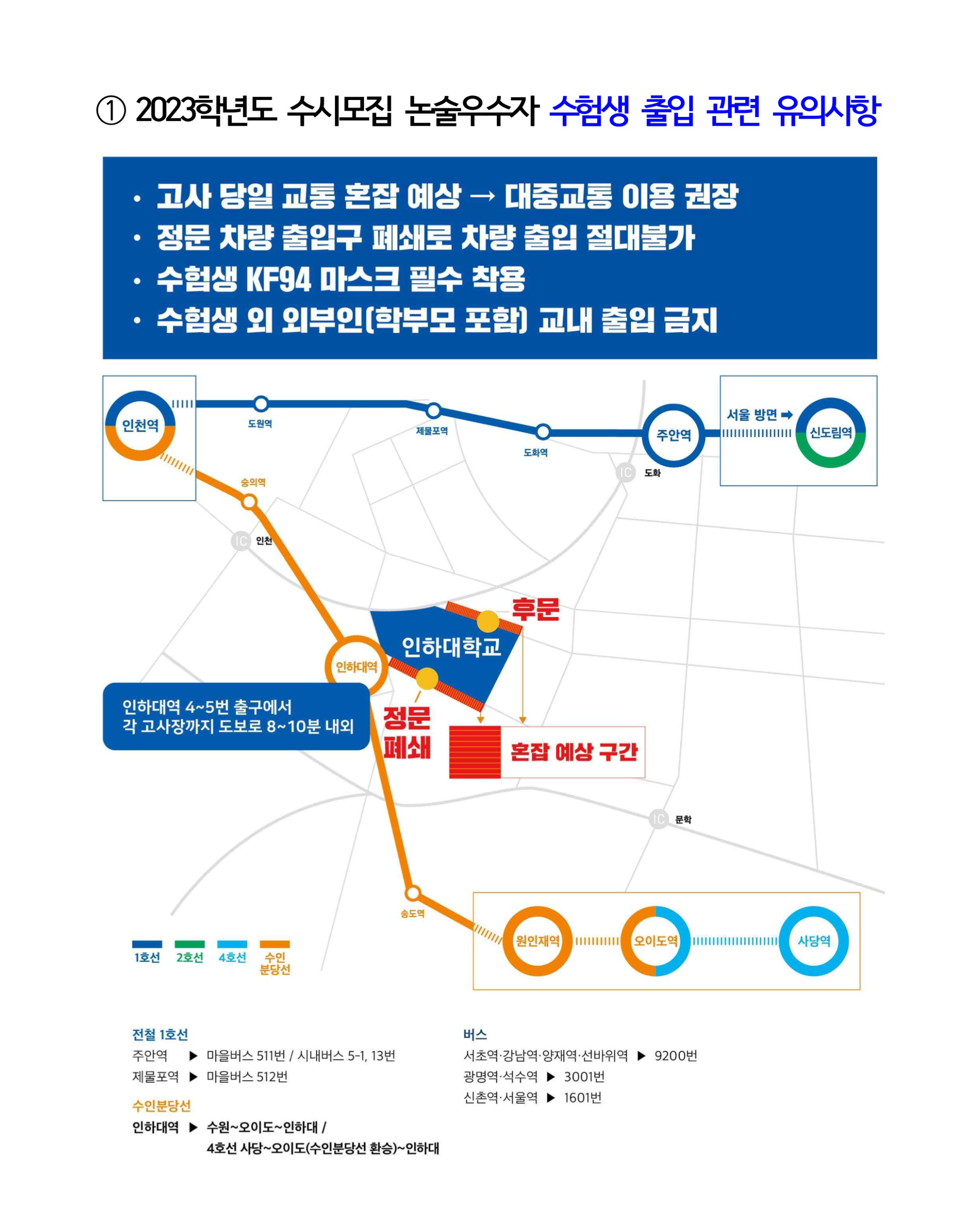 2023학년도 인하대학교 수시모집 논술우수자 수험생 유의사항
