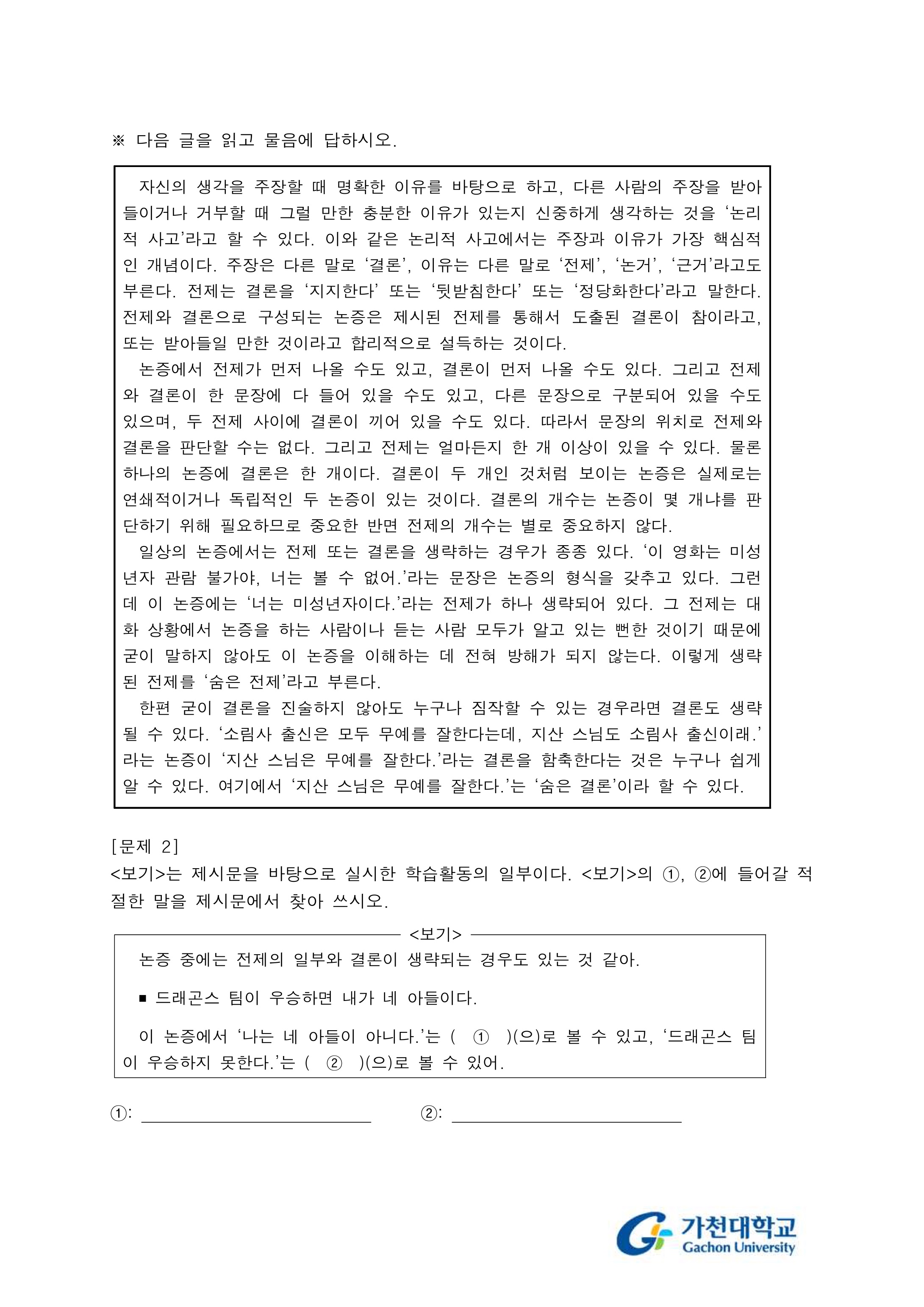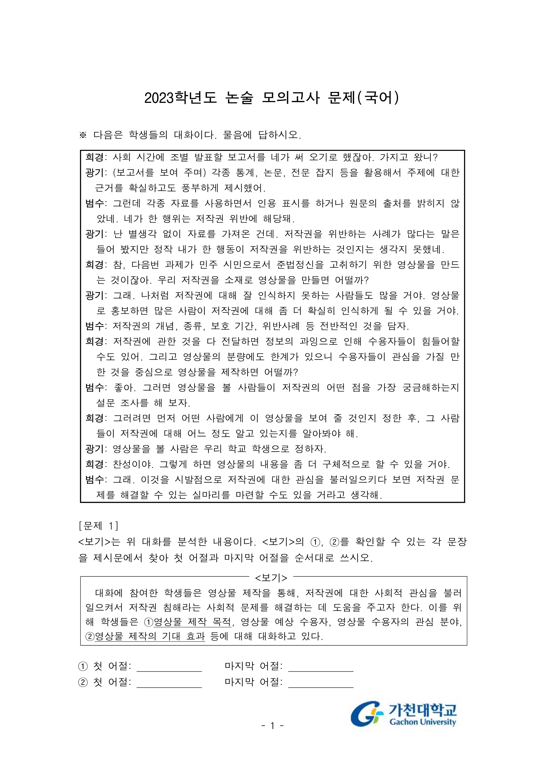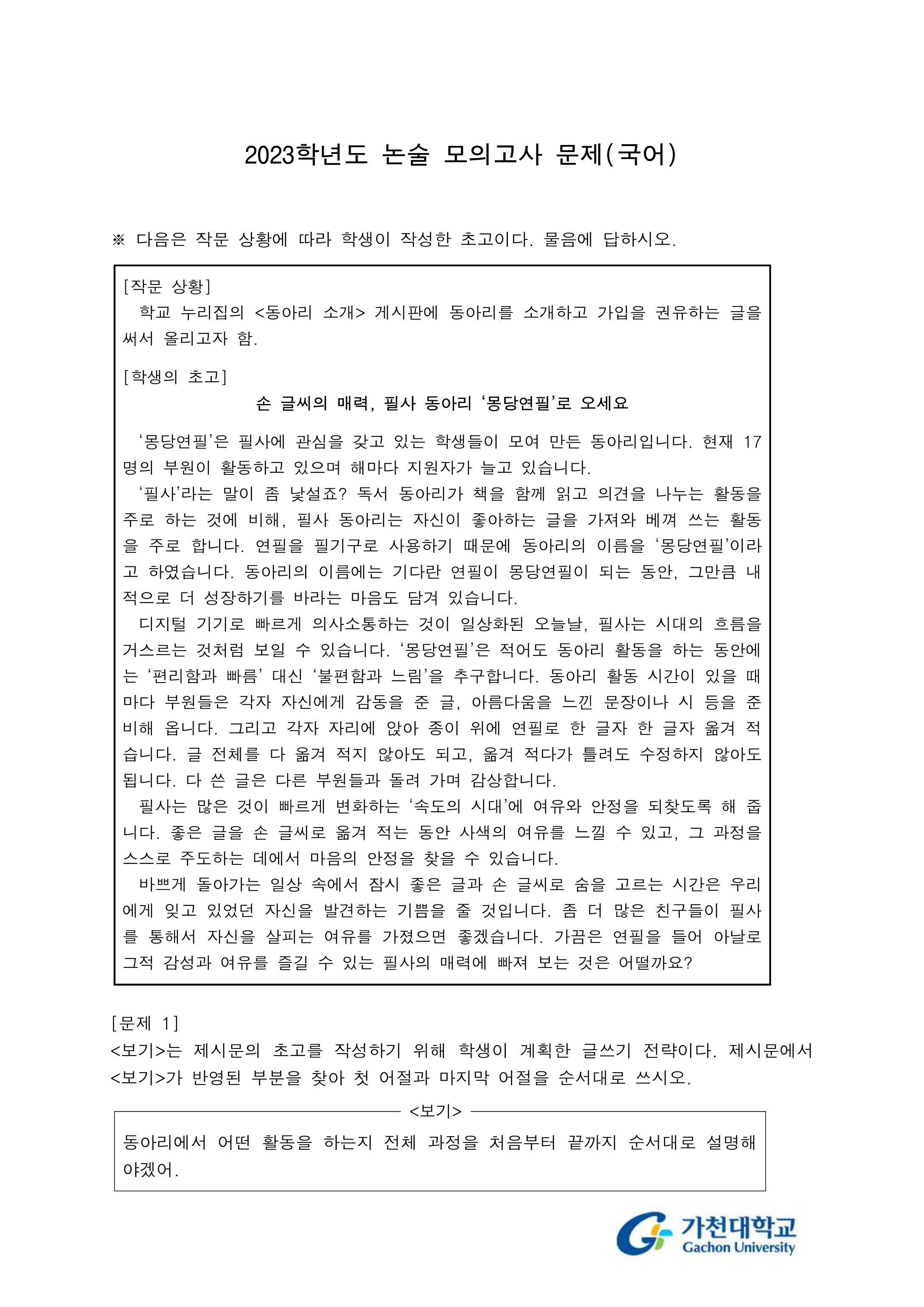 2023학년도 가천대학교 논술모의고사 모범답안 A형.pdf2.89MB2023학년도 가천대학교 모의논술 문제 B형