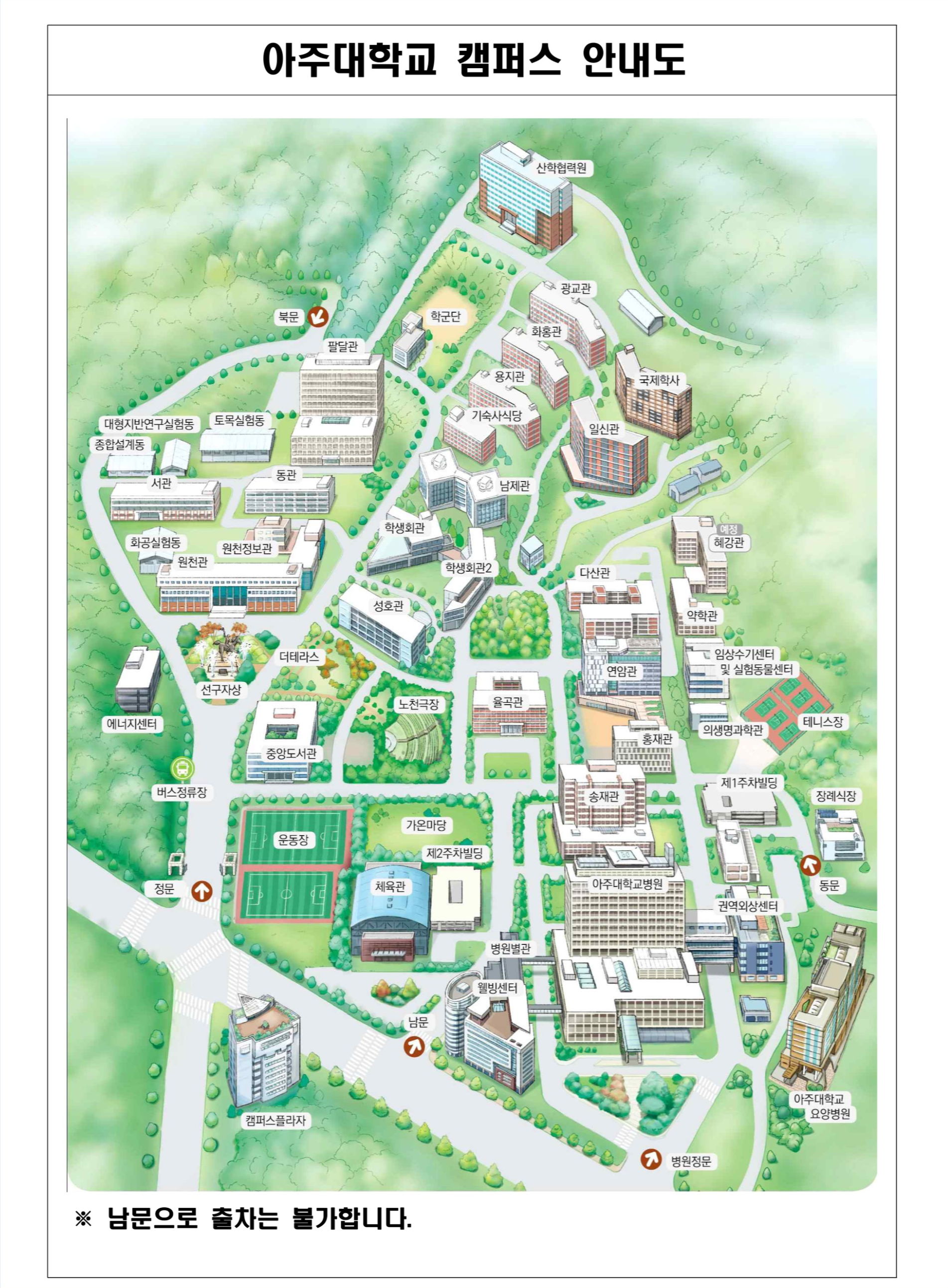 아주대학교 캠퍼스 안내도 2023학년도 아주대학교 논술고사 수험생 유의사항