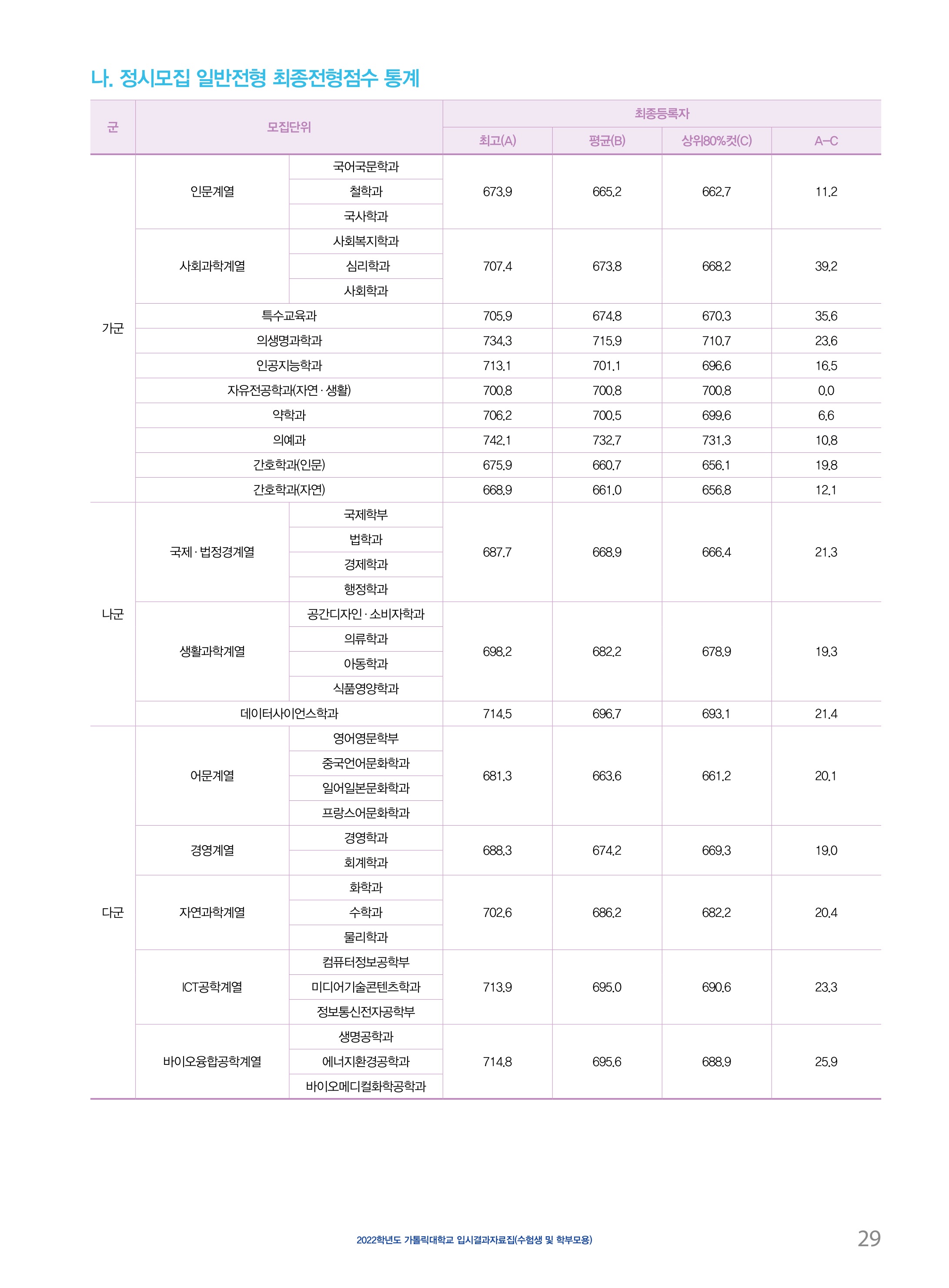 2022학년도 가톨릭대학교 정시등급입시 정보/정시등급 입시 결과 2022. 8. 9. 15:01