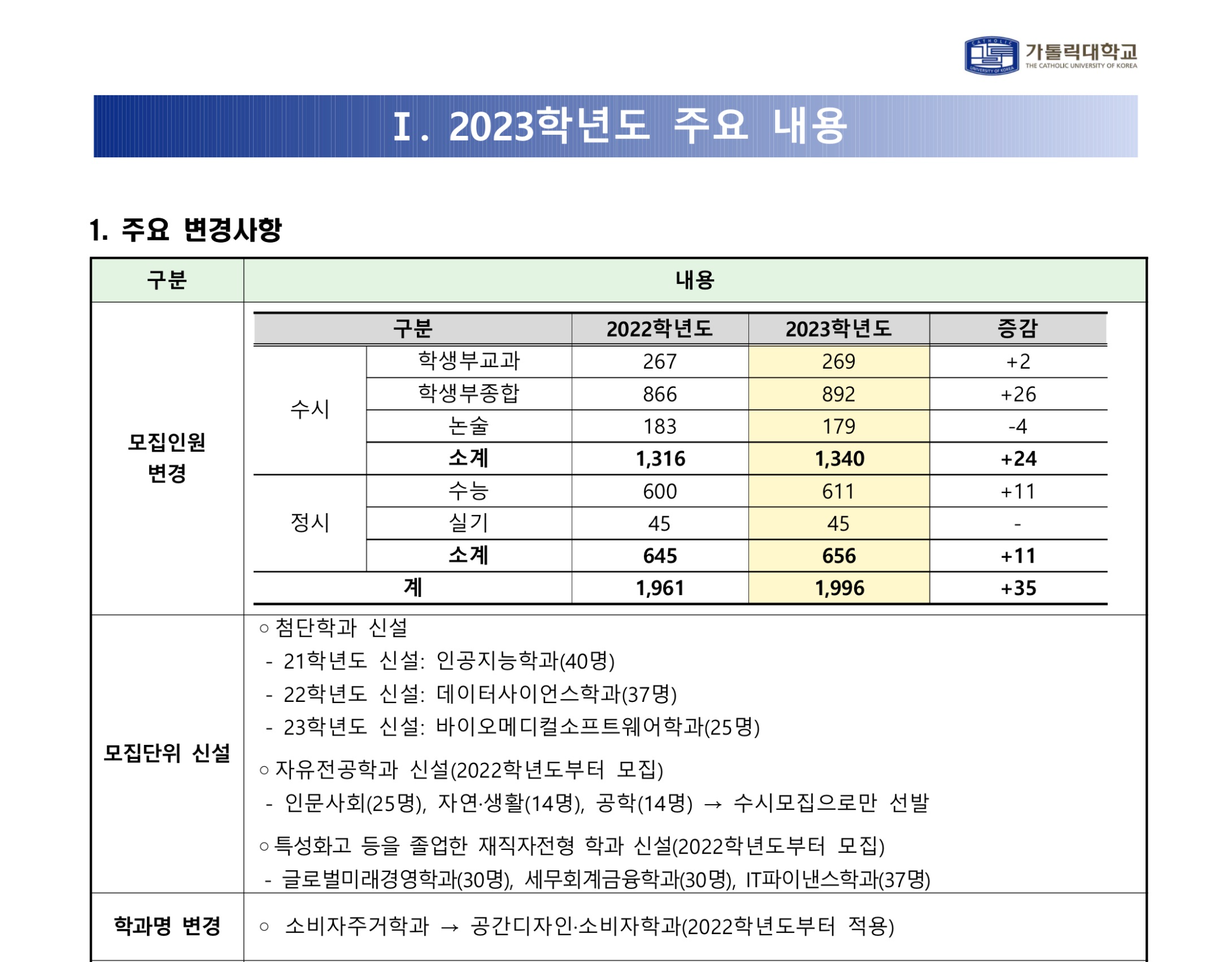 2023학년도 가톨릭대학교 정시모집 요강.pdf1.35MB2023학년도 가톨릭대학교 정시모집 전년 대비 변경사항