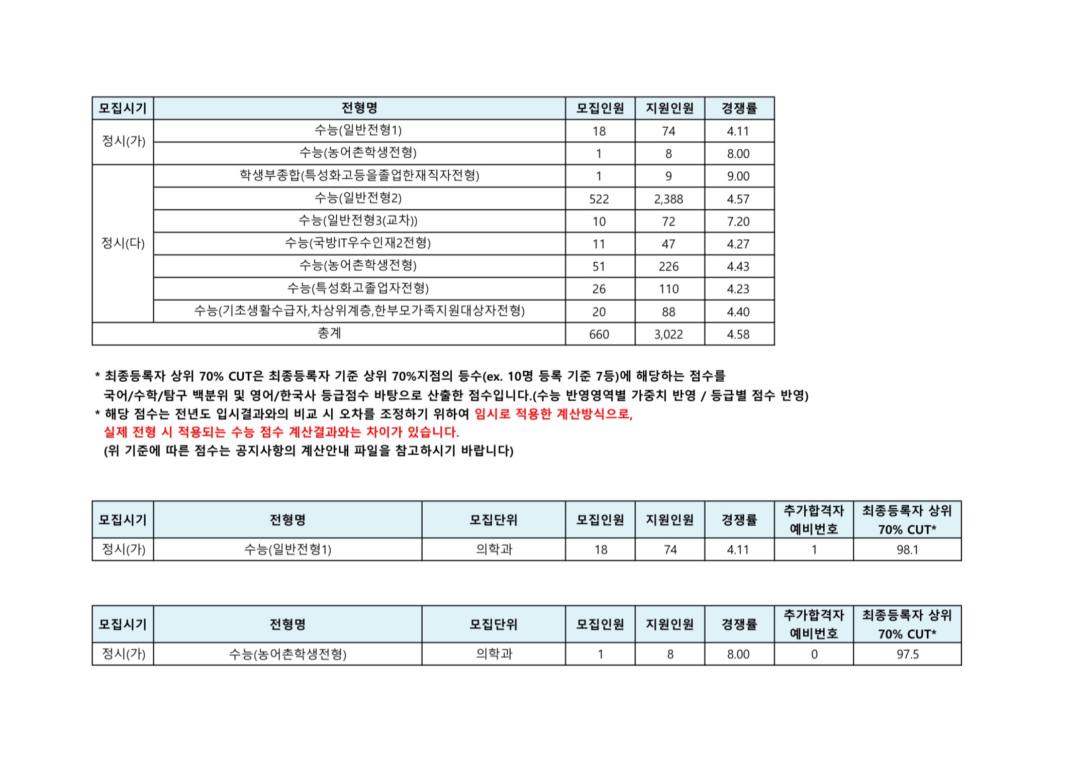 5) 영역별 백분위 70% Cut (국어,수학,탐구): 최종등록자의 각 과목별 백분위 70% cut(탐구영역은 두 과목 백분위의 평균)