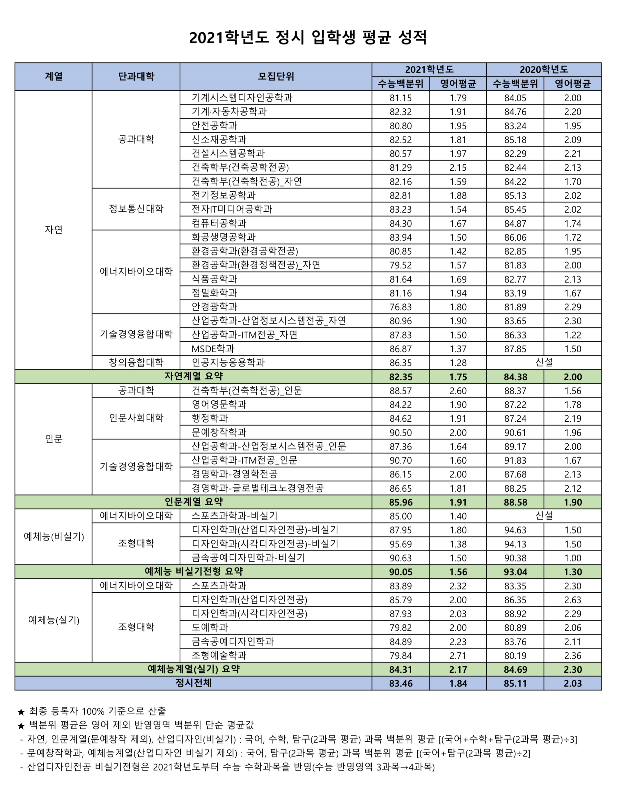 2021학년도 서울과학기술대학교 정시등급입시 정보/정시등급 입시 결과 2022. 8. 13. 13:09