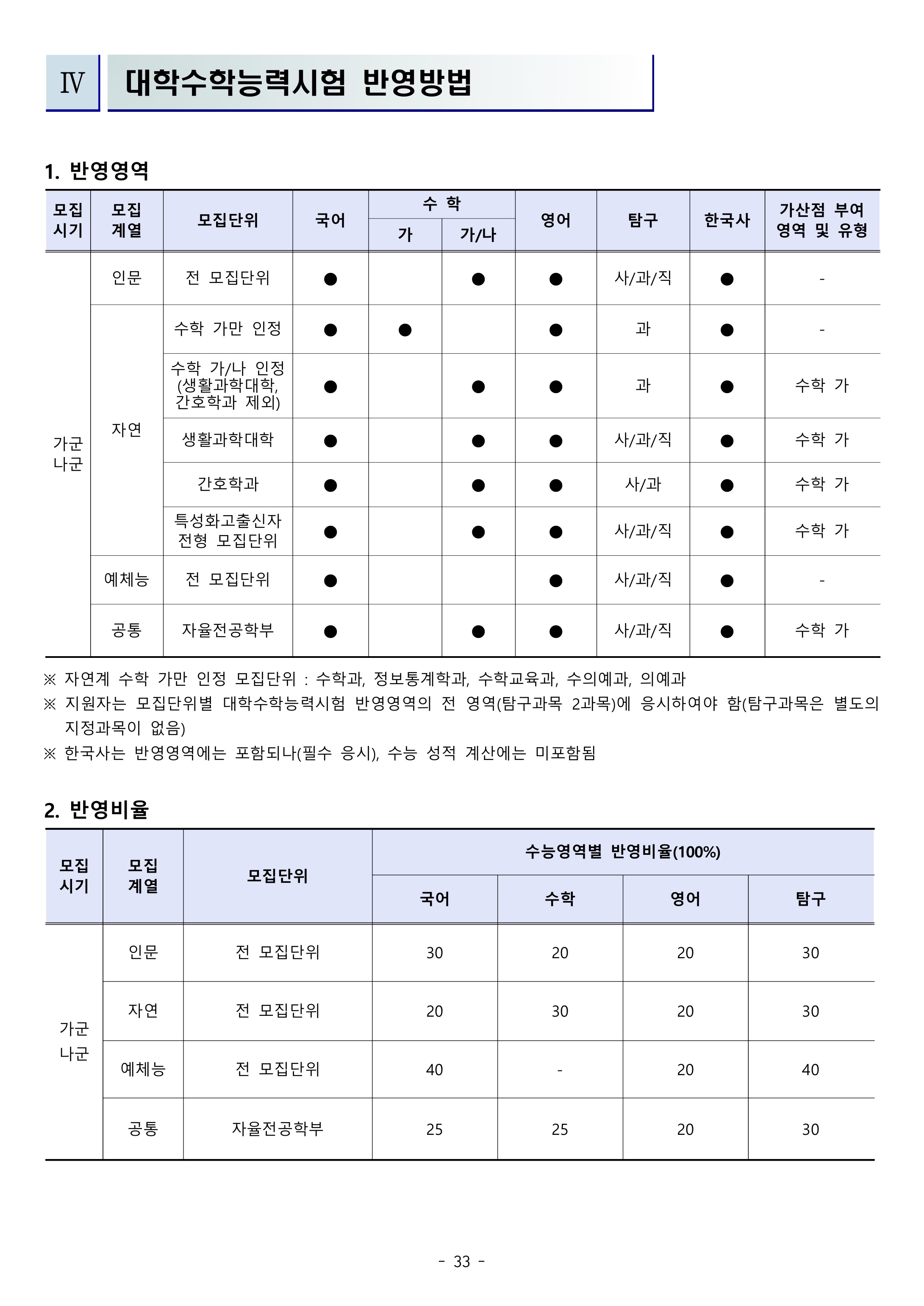 2021학년도 충북대학교 대학수학능력시험 반영방법