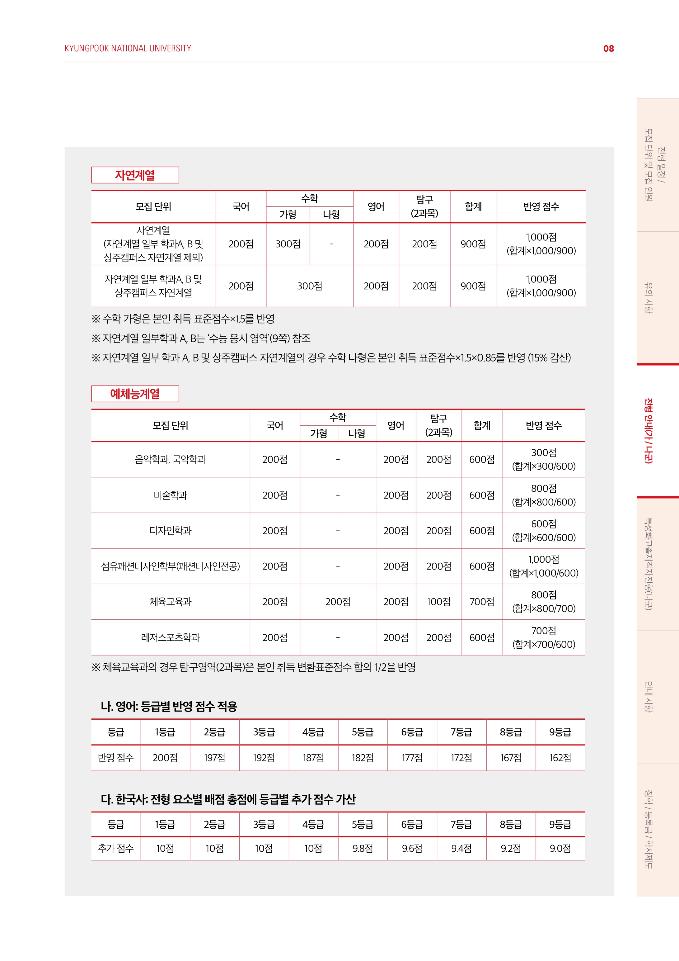 2021학년도 경북대학교 대학수학능력시험 반영방법 2021학년도 경북대학교 정시등급
