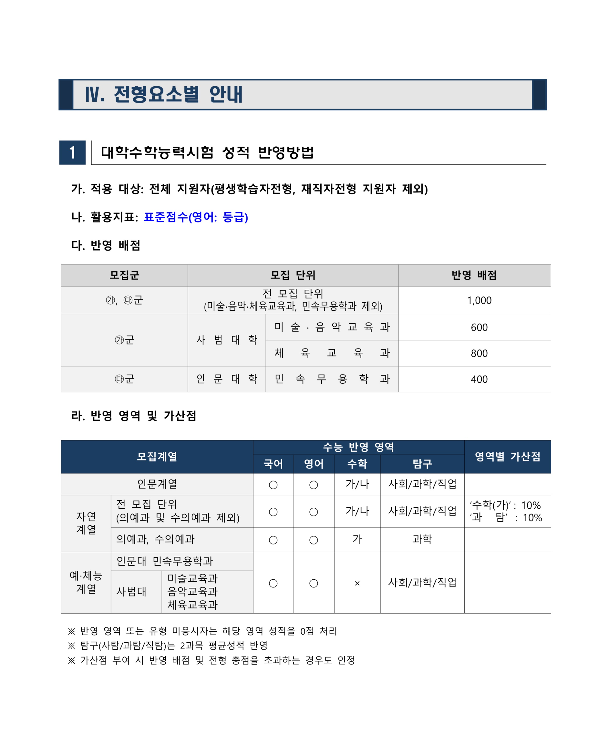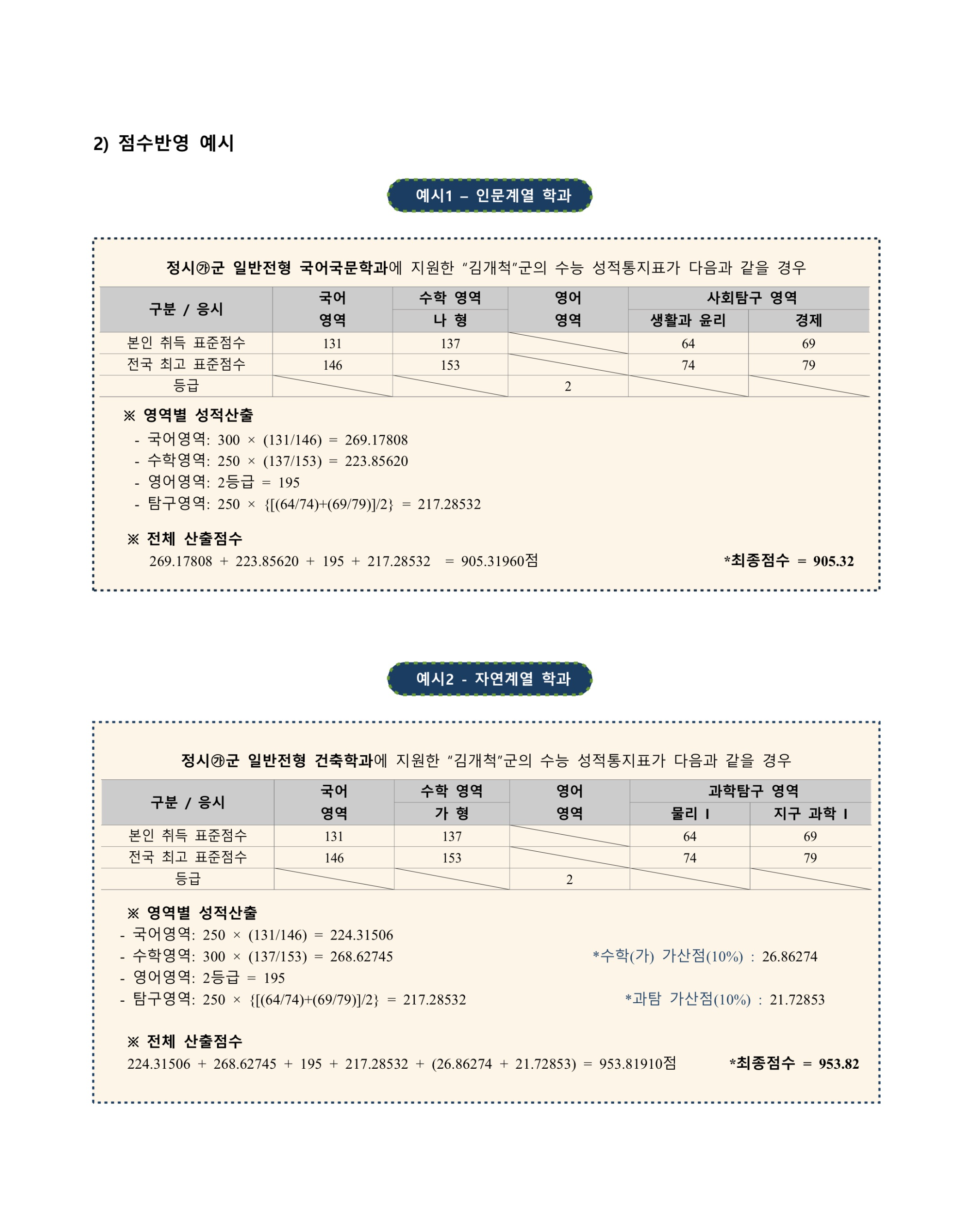 2) 환산점수 : 각 모집단위별 학생선발에 활용된 환산점수