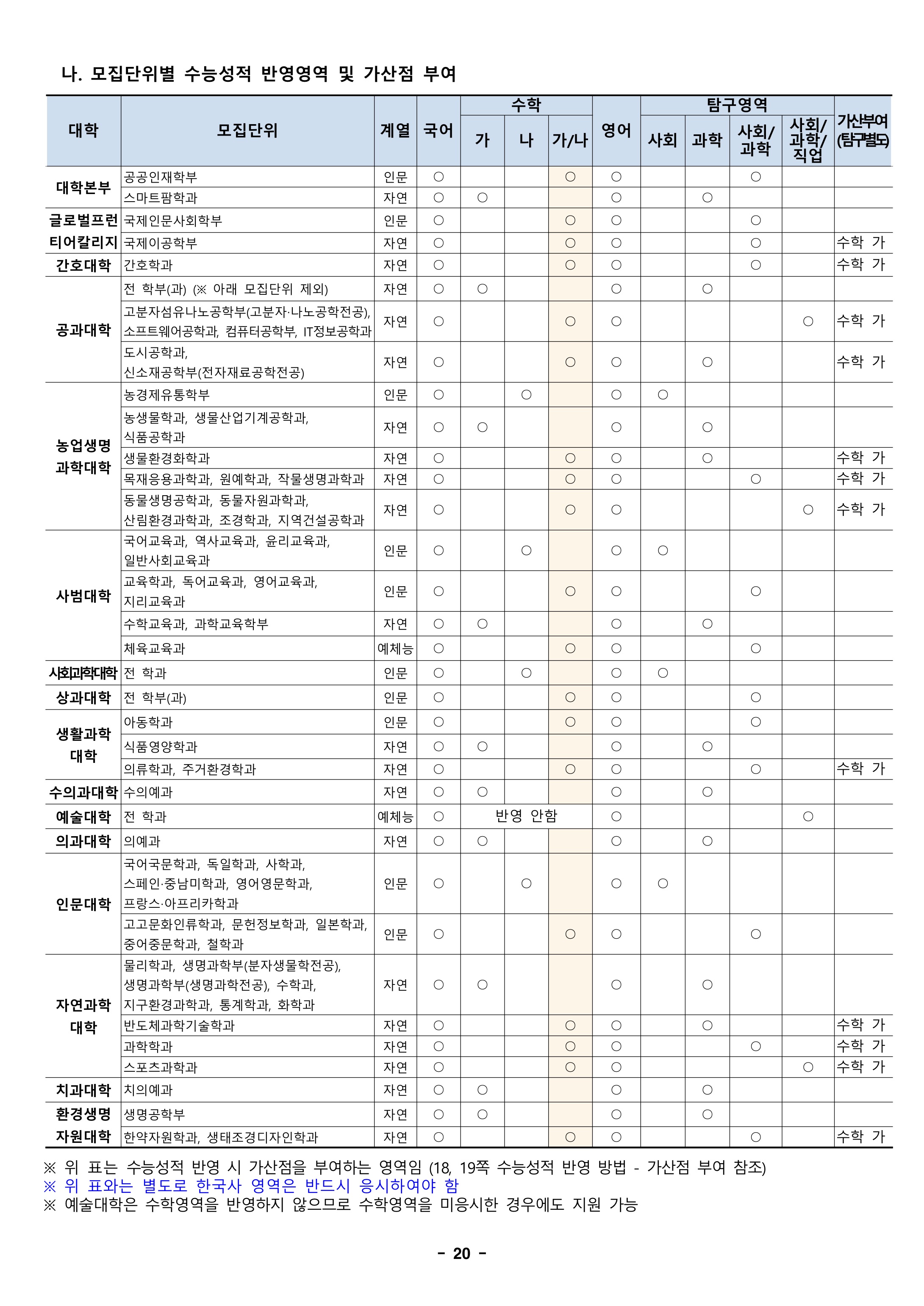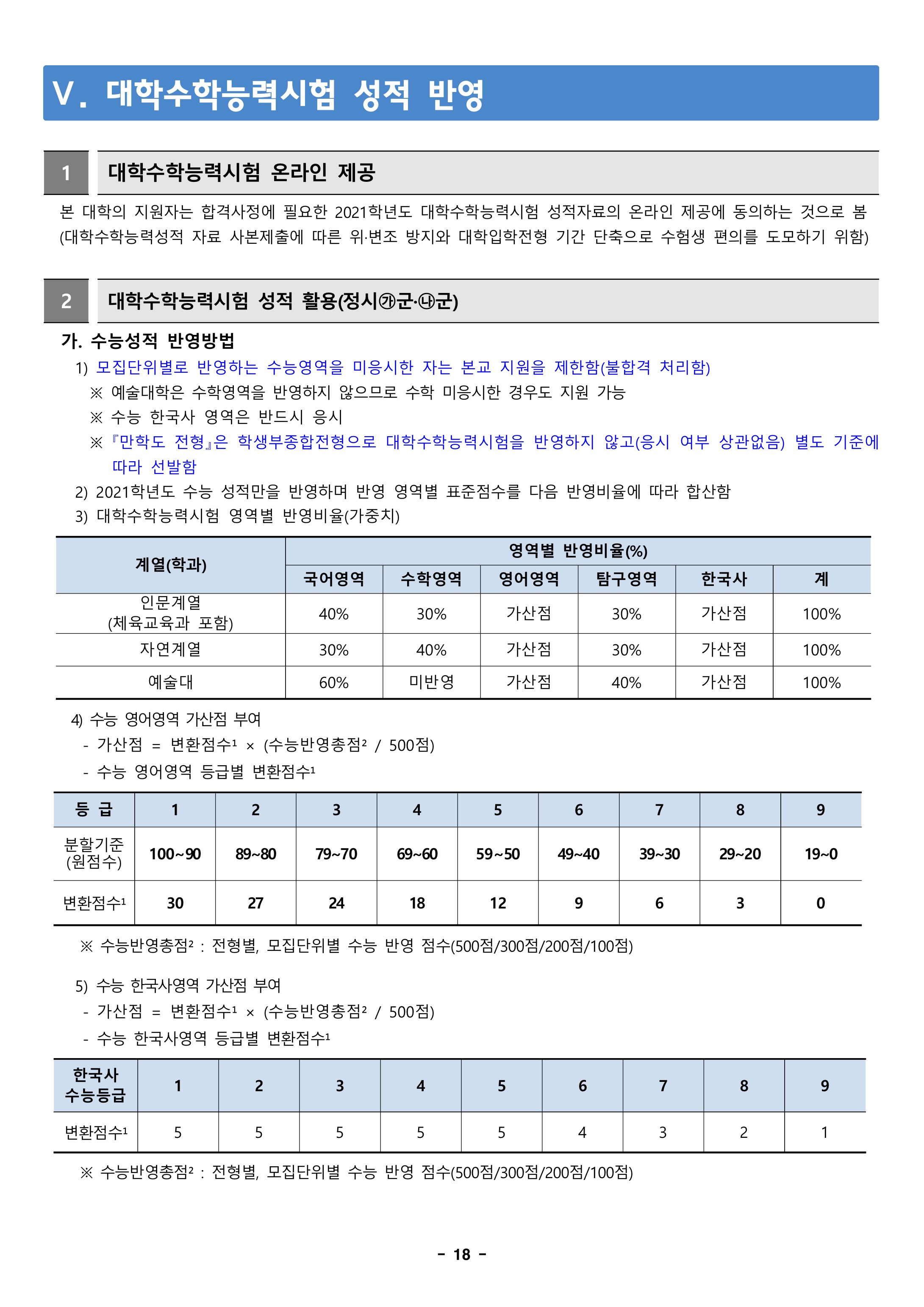 2021학년도 전북대학교 대학수학능력시험 반영방법 2021학년도 전북대학교 정시등급