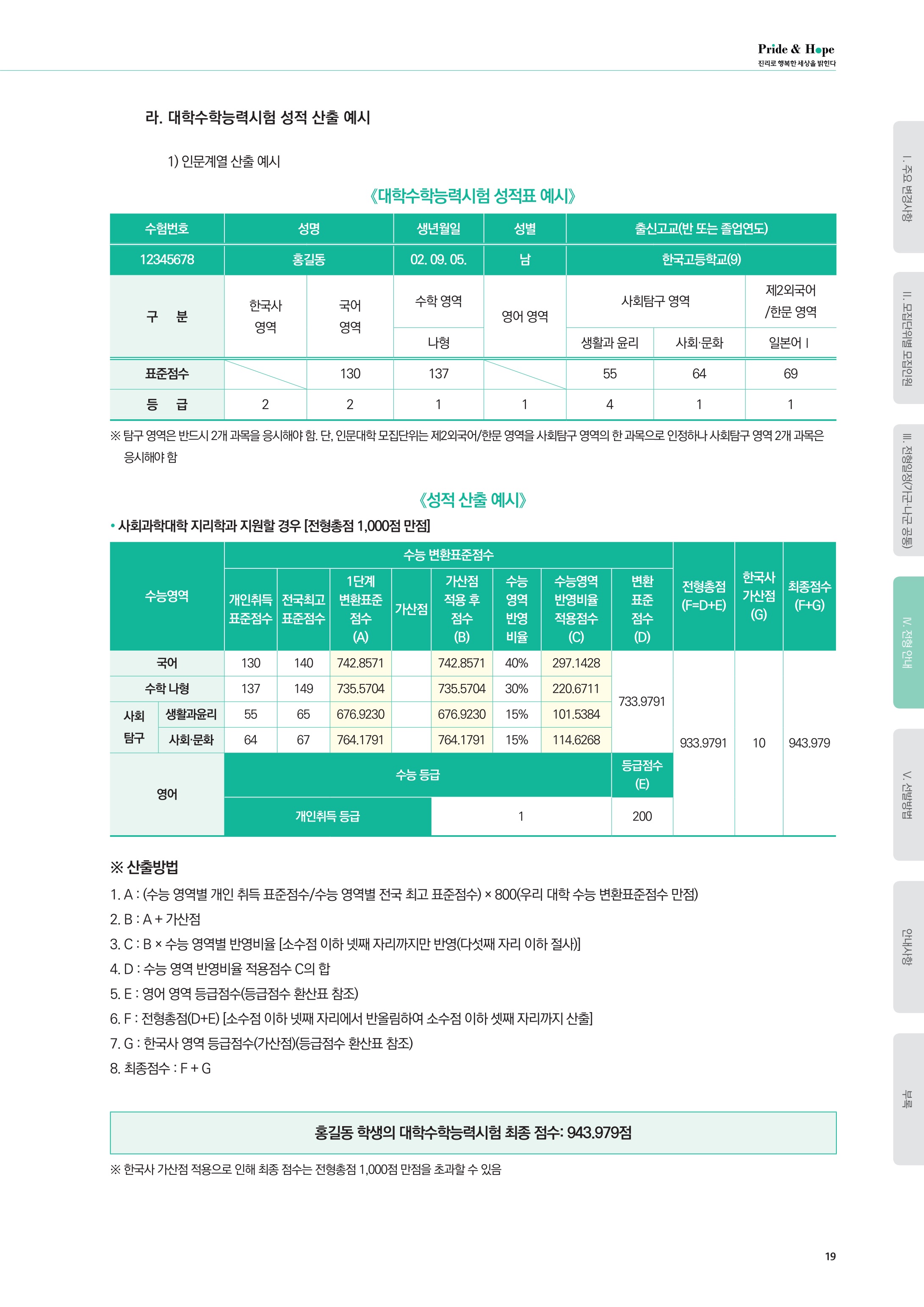 2) 환산점수 : 각 모집단위별 학생선발에 활용된 환산점수