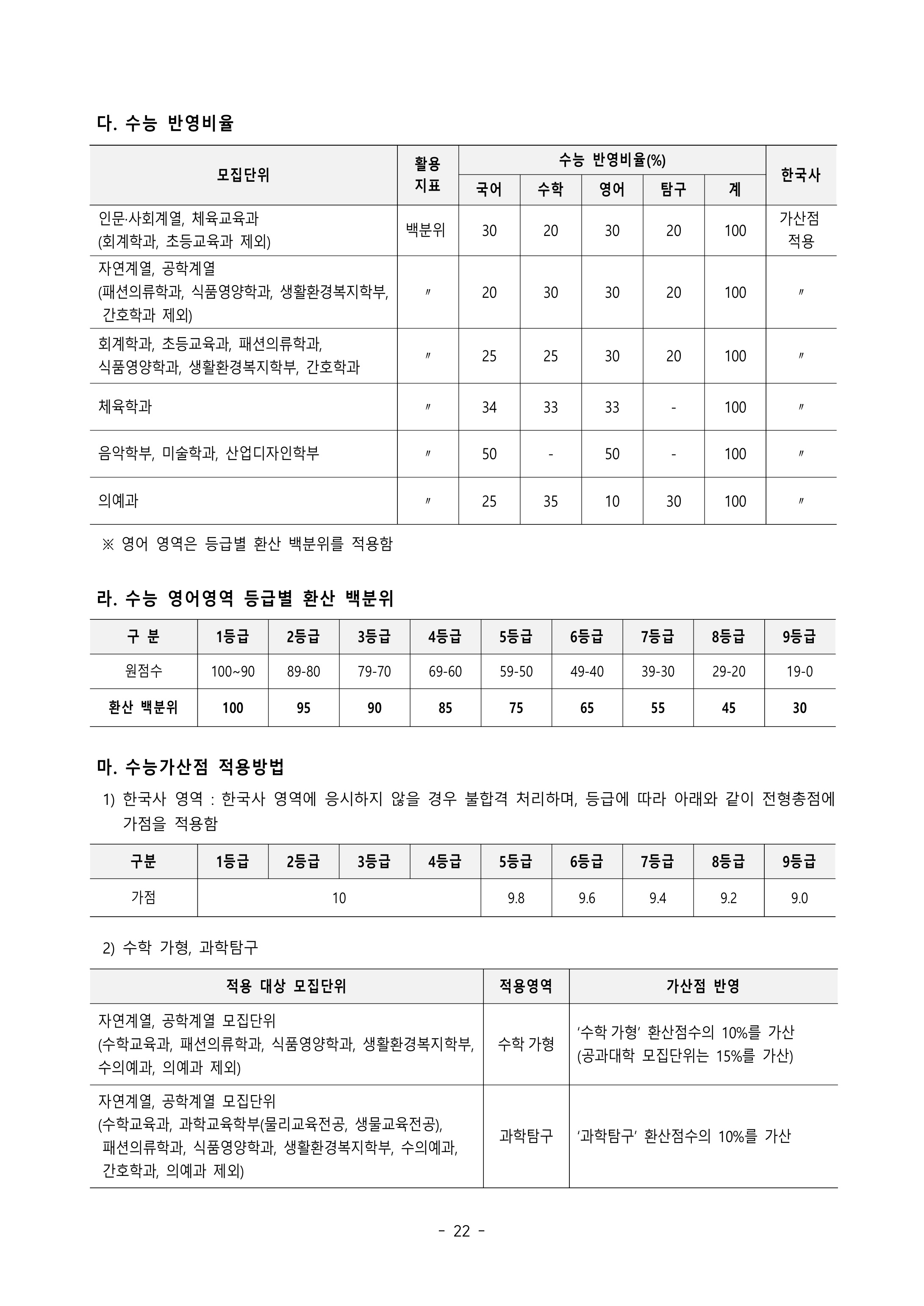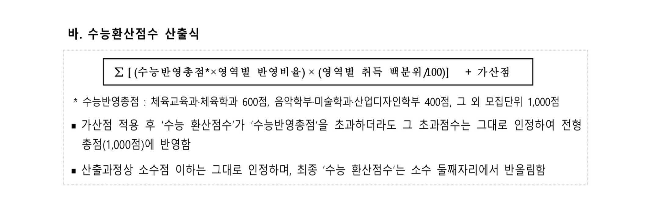 2) 환산점수 : 각 모집단위별 학생선발에 활용된 환산점수