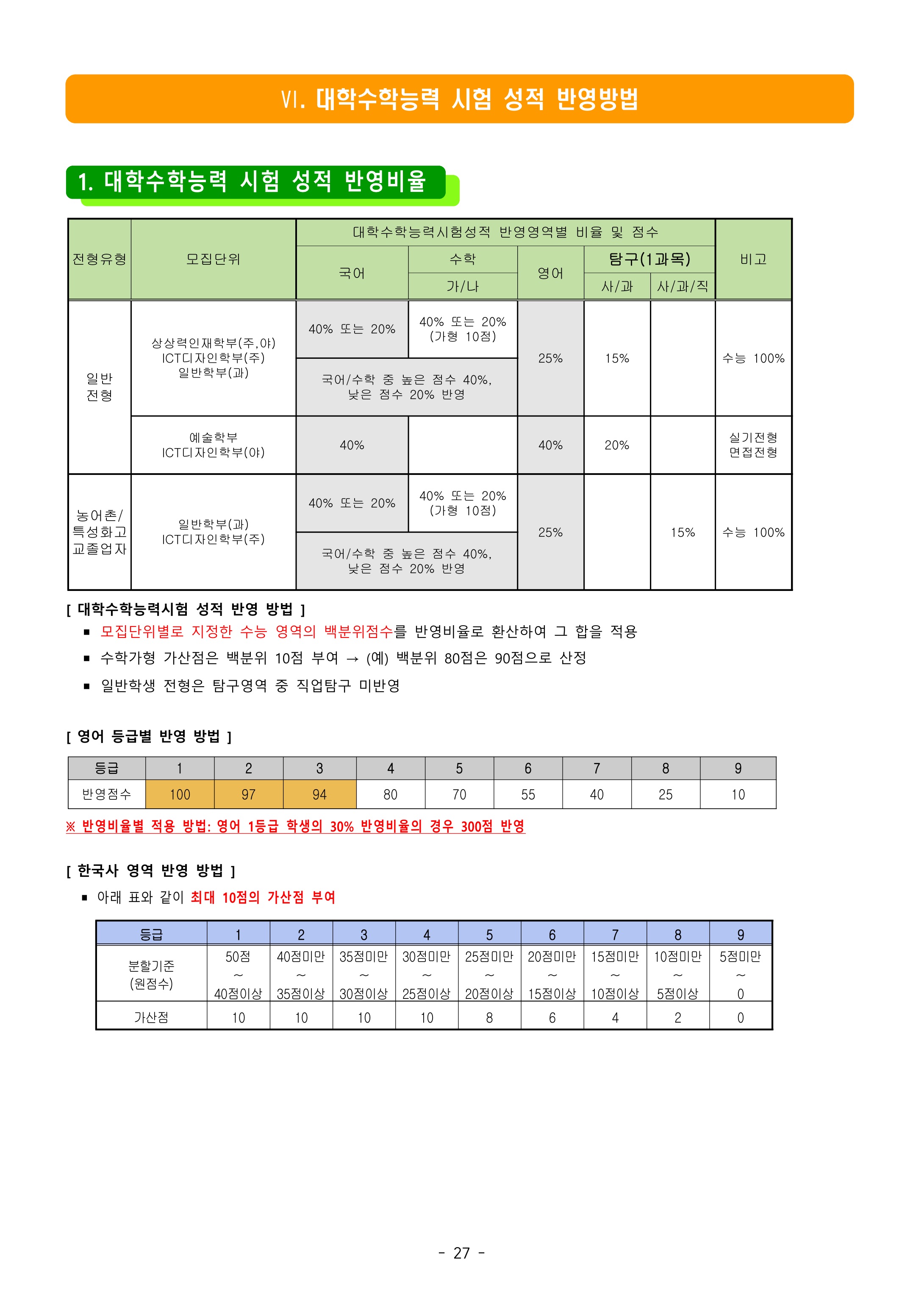 2021학년도 한성대학교 대학수학능력시험 성적 반영방법 2021학년도 한성대학교 정시등급