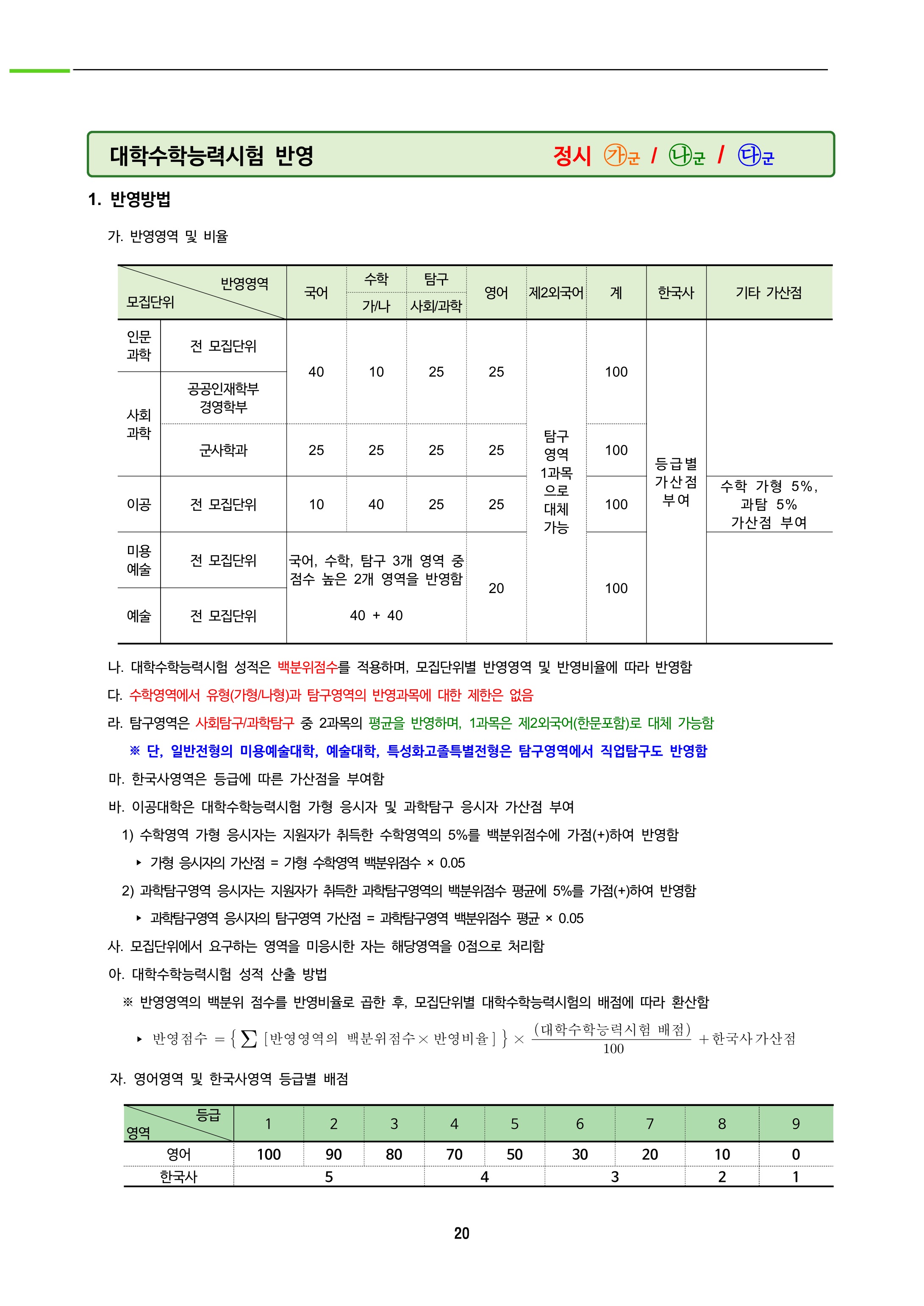 2021학년도 서경대학교 대학수학능력시험 반영 2021학년도 서경대학교 정시등급