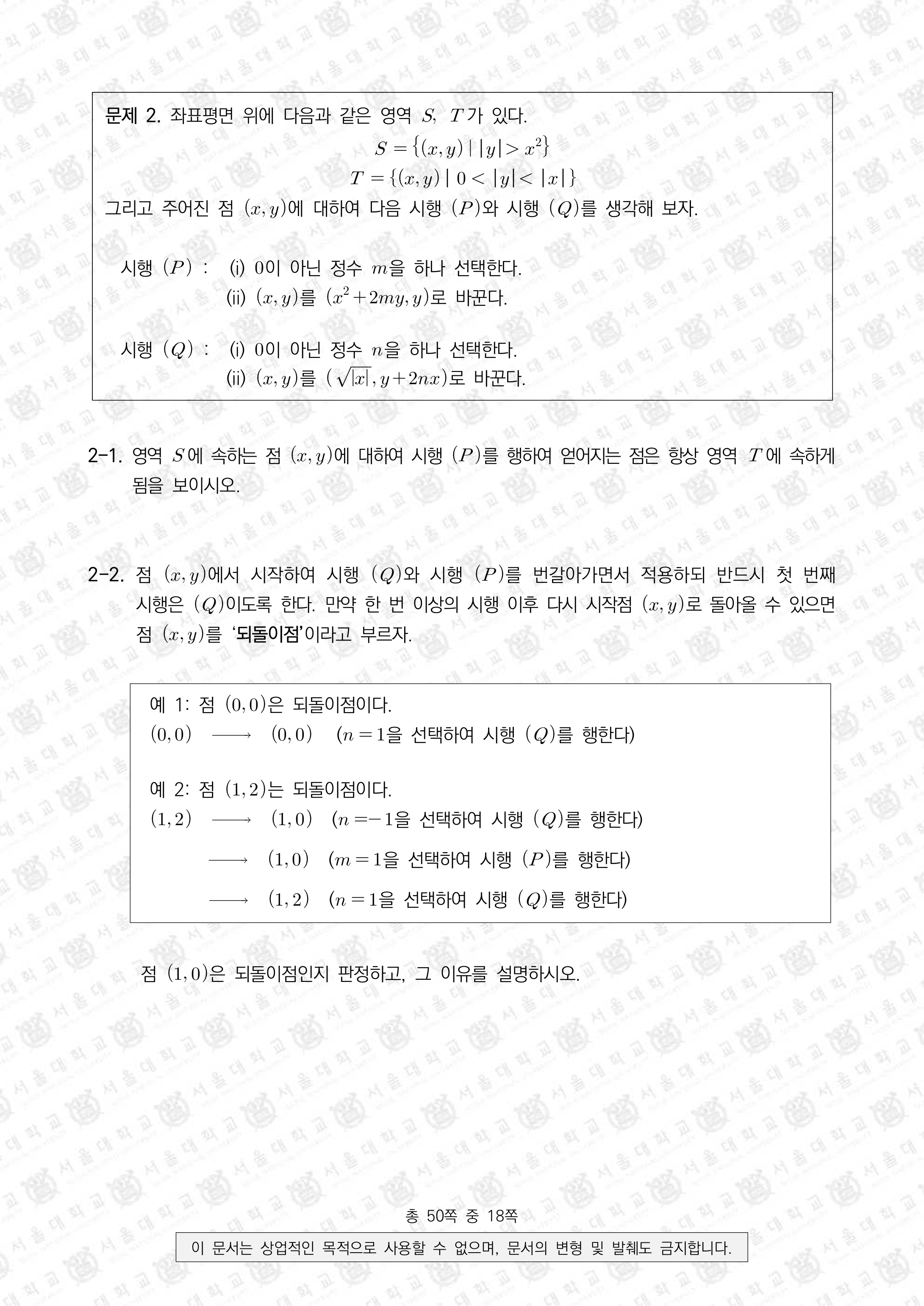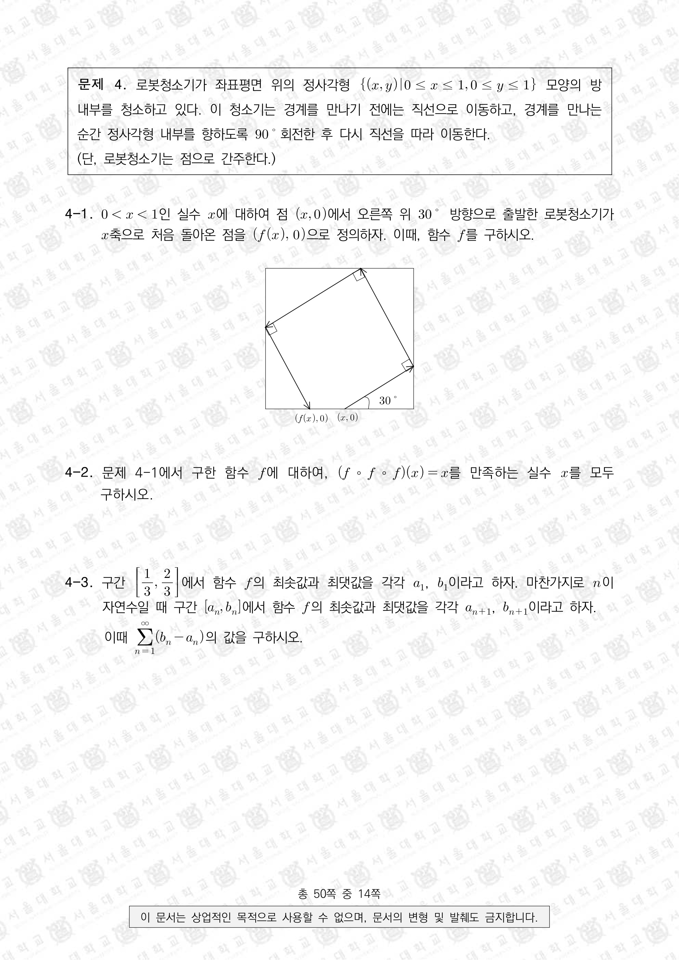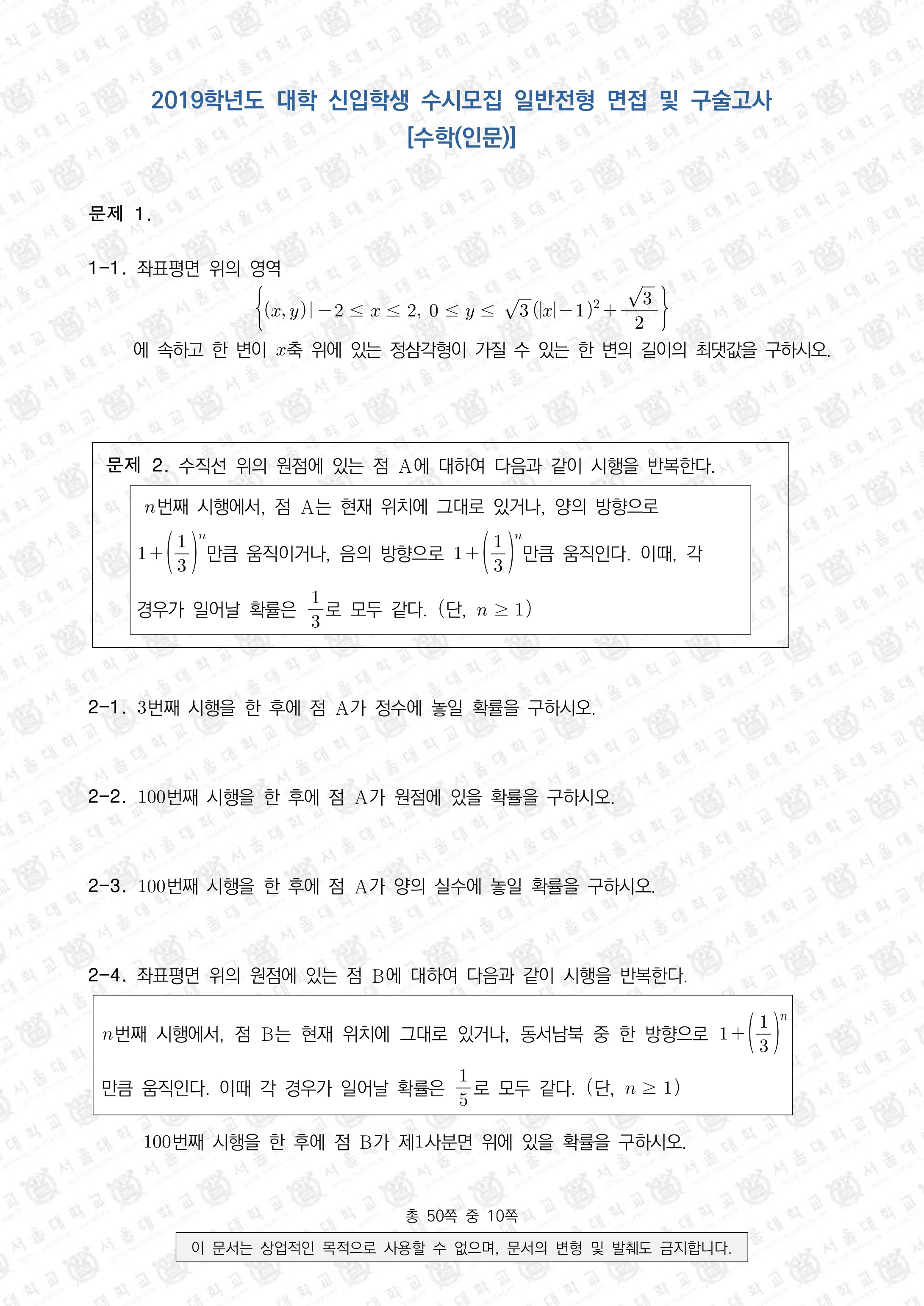 2019학년도 서울대학교 수시모집 일반전형 면접 및 구술고사 수학(인문)