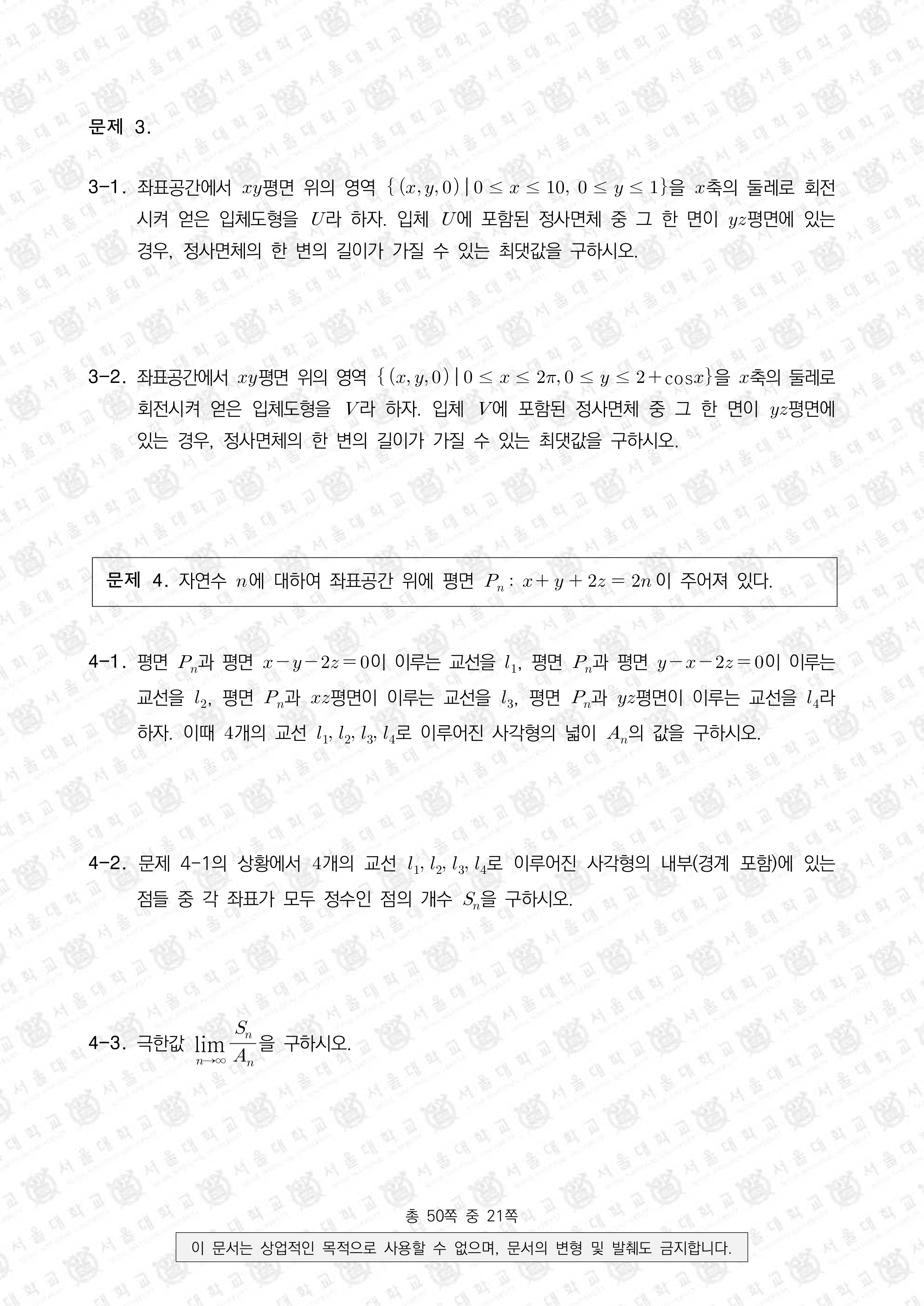 2019학년도 서울대학교 수시모집 일반전형 면접 및 구술고사 수학(자연) 활용모집단위: